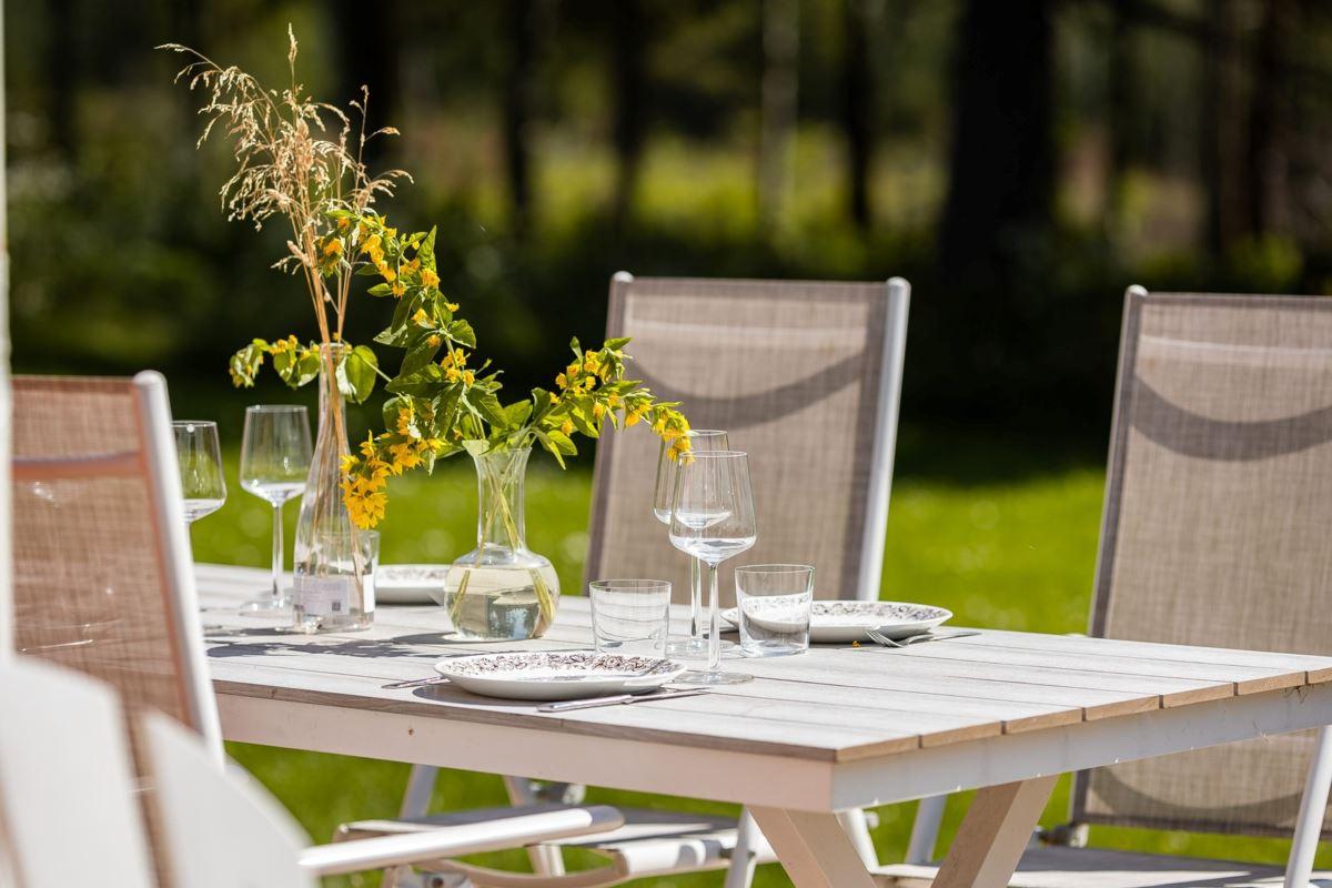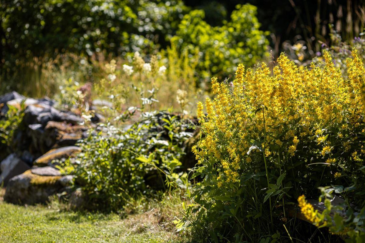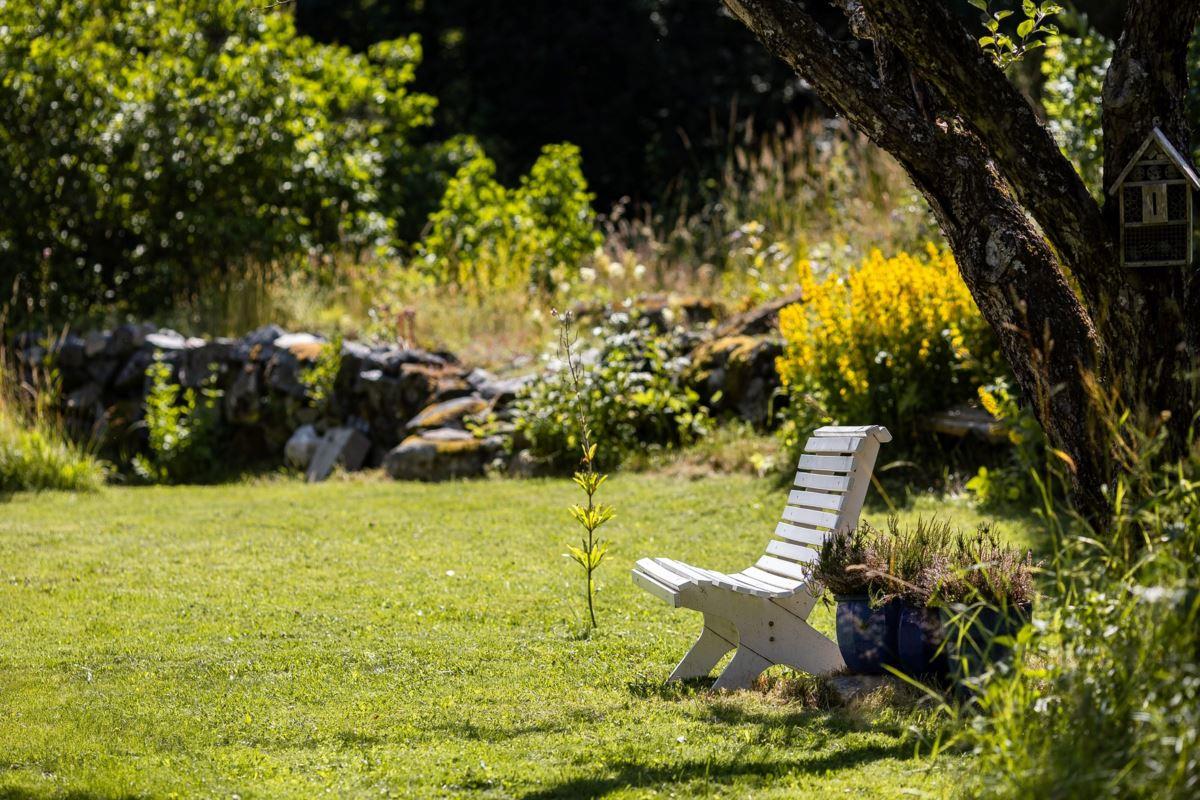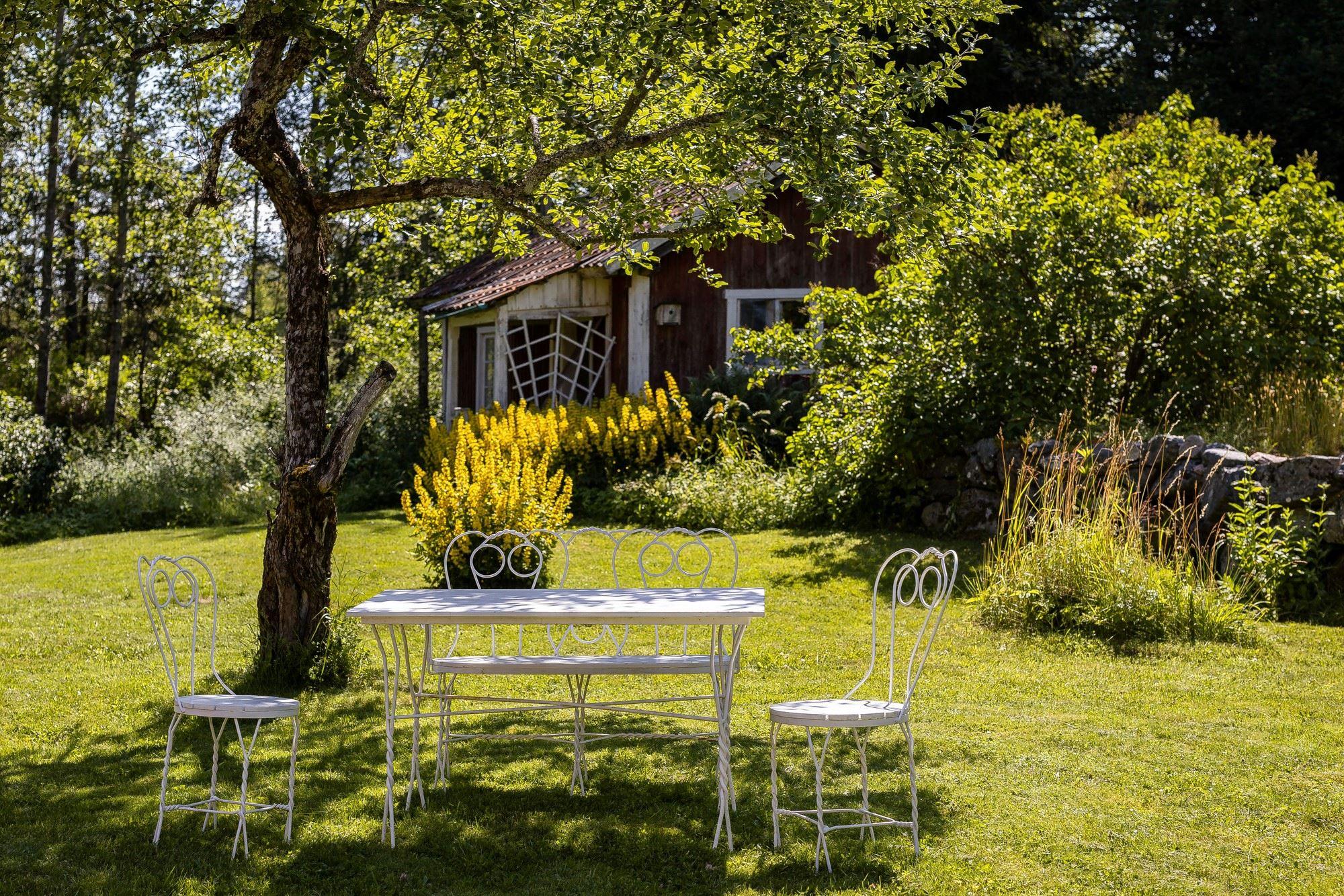 Den stora tomten består dels av uppvuxen, lummig trädgårdstomt med gräsytor, perenna växter, frukt-, löv- och barrträd, bär- och prydnadsbuskar, dels av lättskött naturtomt.