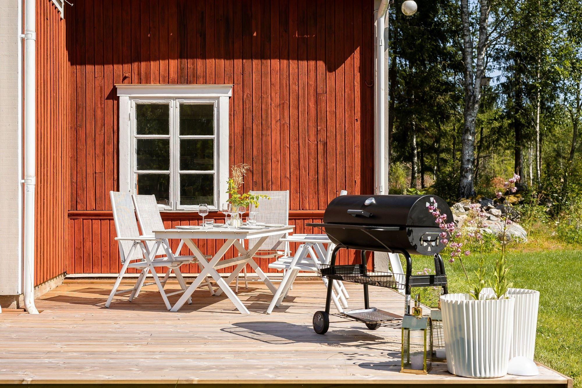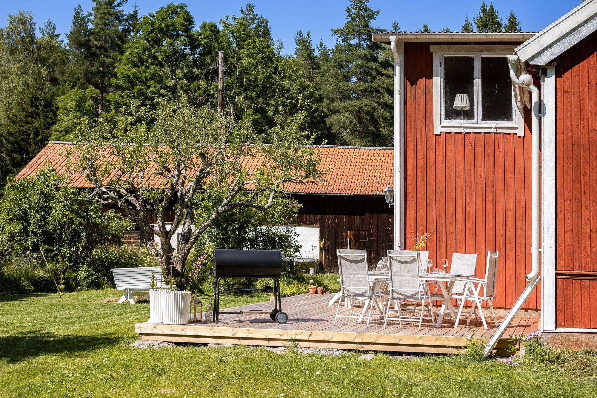 Till fastigheten hör också en äldre bagarstuga med renoveringsbehov och en ladugård/loge innehållandeverkstad, stall, hönshus och vedbod.