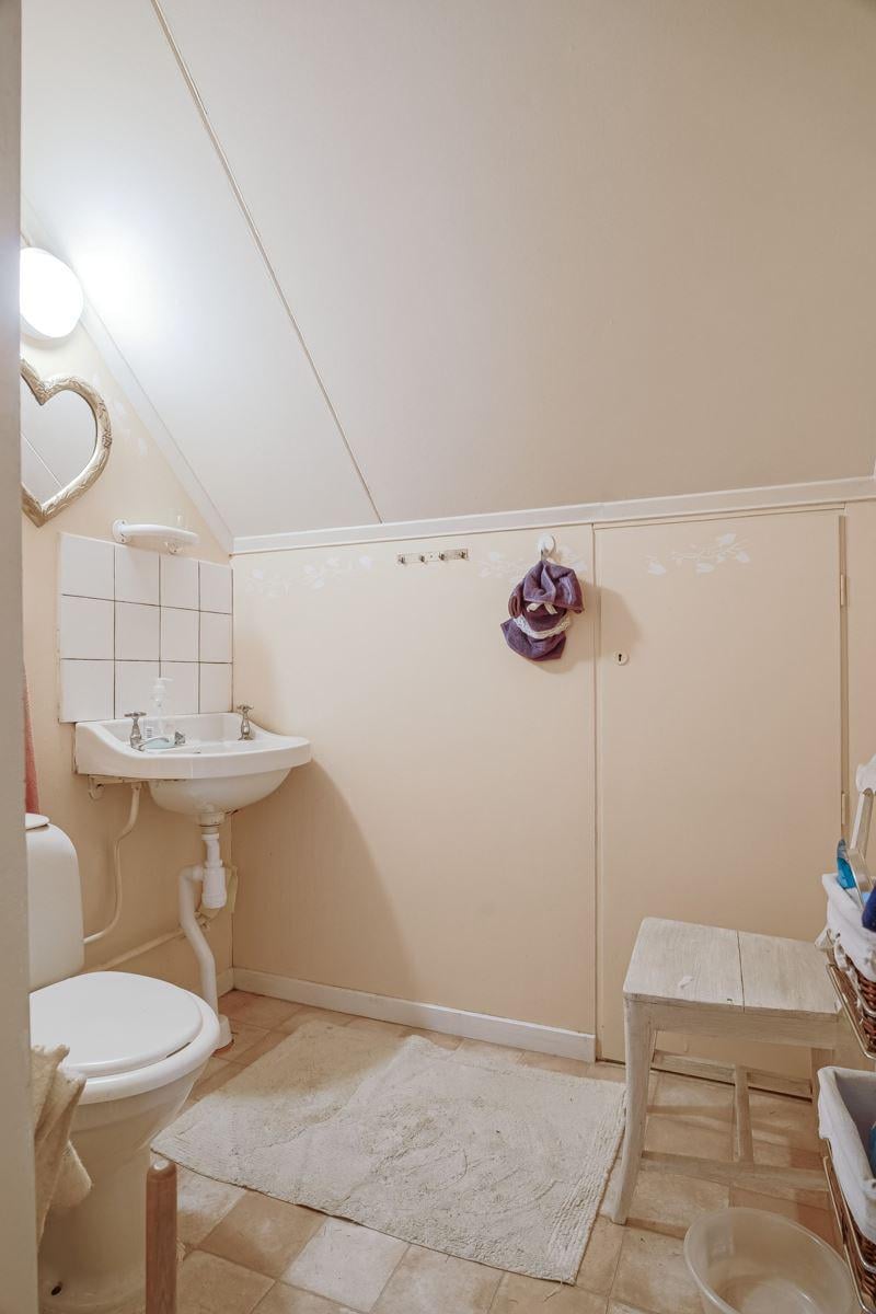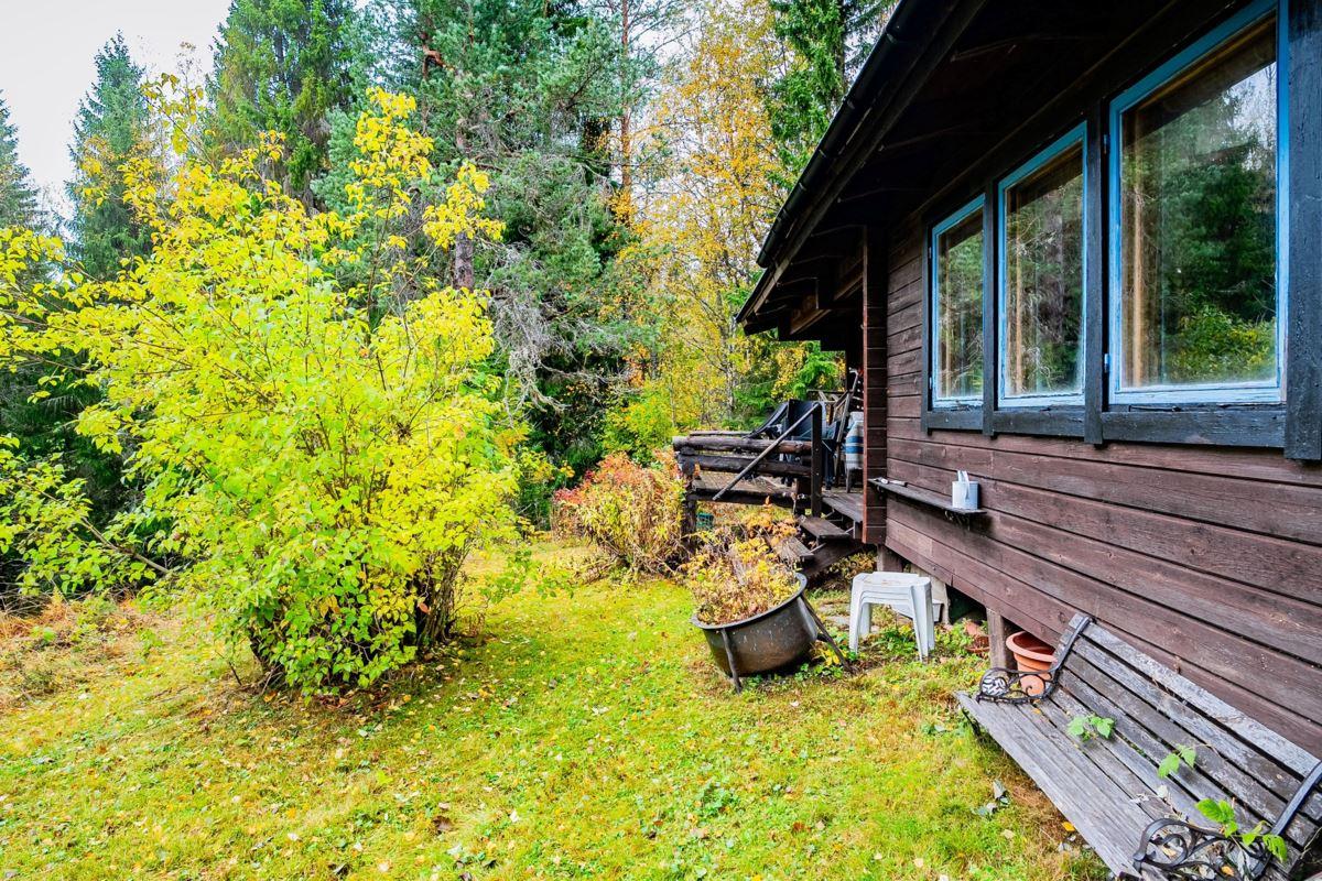 Längre in på fastigheten, längs vägen som passerar genom ägorna, hittar du en fristående sommarstuga med tre sovrum samt kombinerat kök och vardagsrum. Från altanen har du utsikt över en porlande bäck och stor gräsmatta som inbjuder till lek.