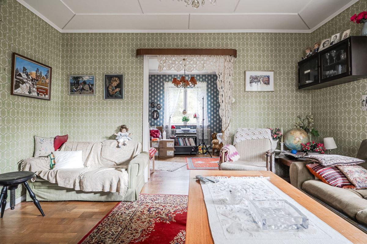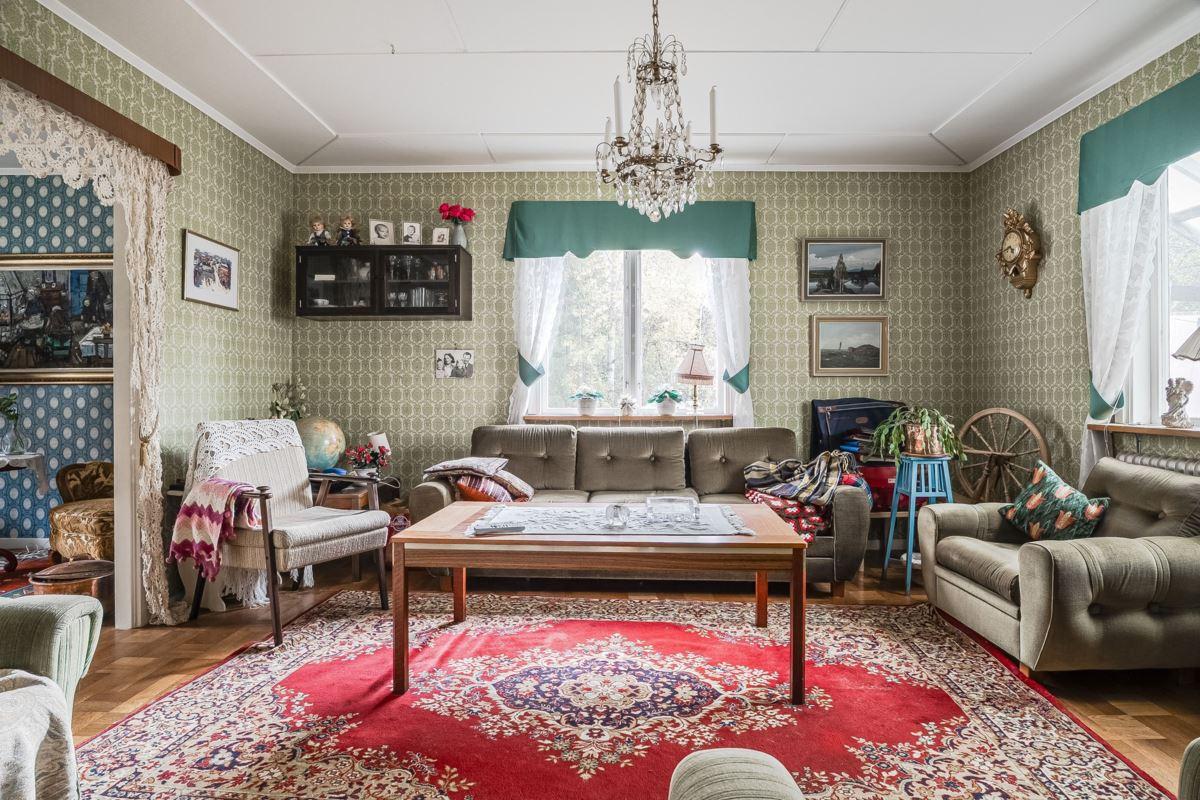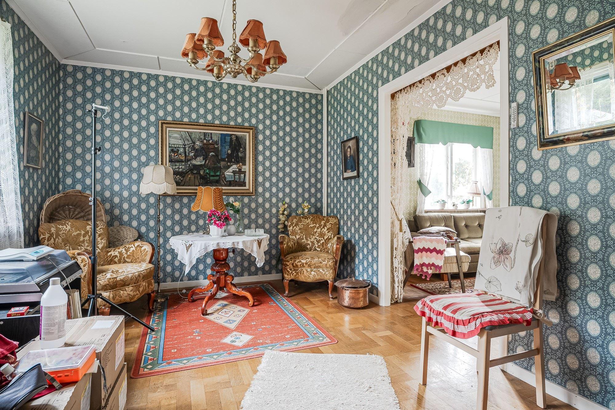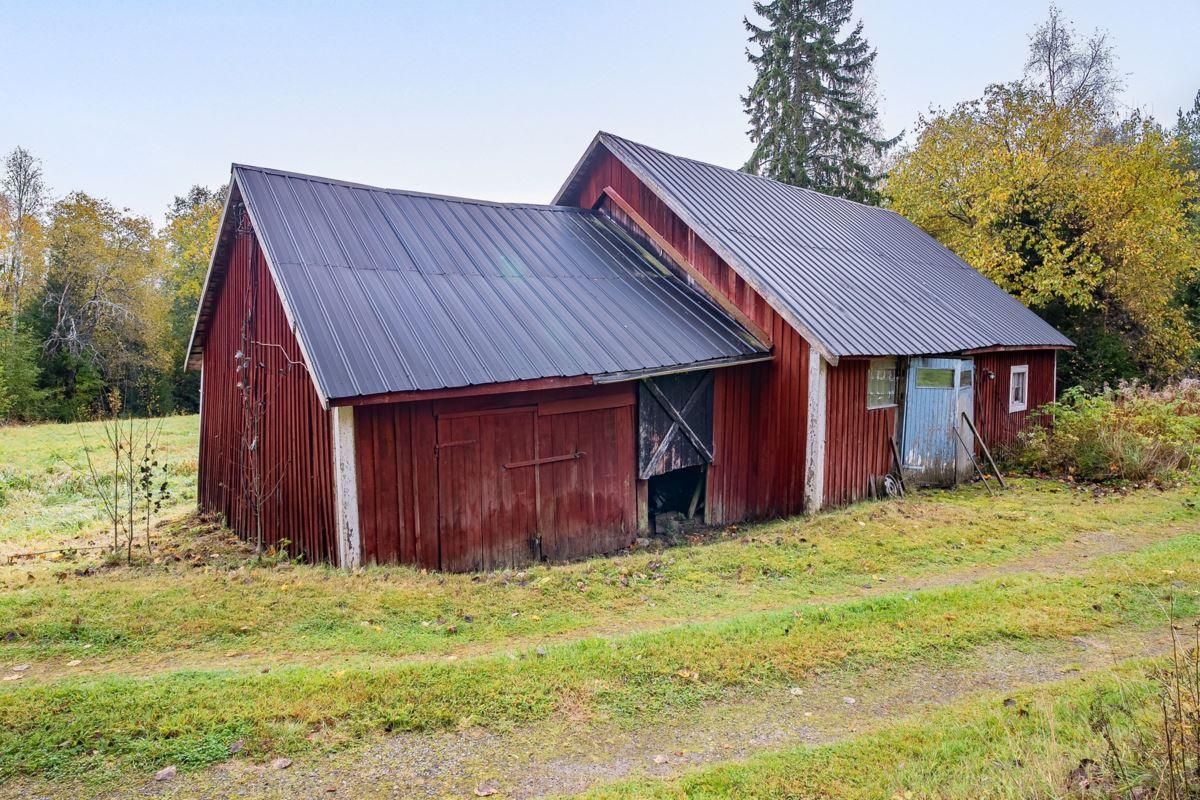 Gårdscentrum rymmer ett bostadshus med fyra rum och kök, där altanen vetter mot de egna öppna markerna – perfekt för morgonkaffet eller långa sommarkvällar. På tomten finns även äldre ladugård, traktorgarage, härbre och jordkällare – byggnader som rymmer både charm och möjligheter.