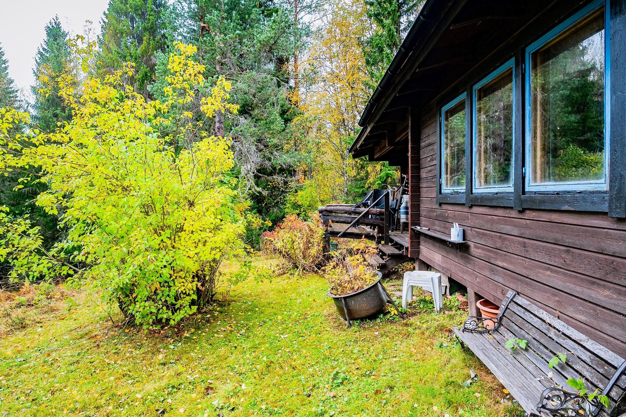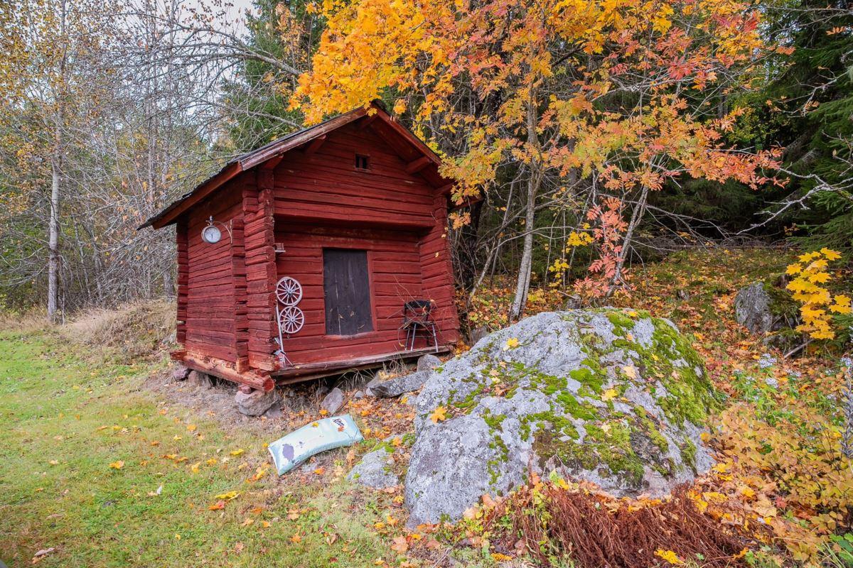 Härbre uppfört i timmer med plåttak.