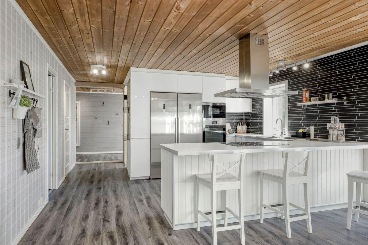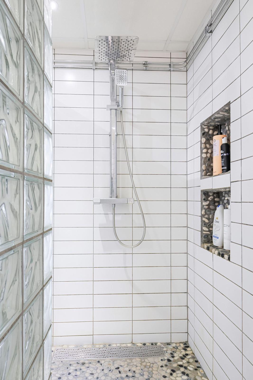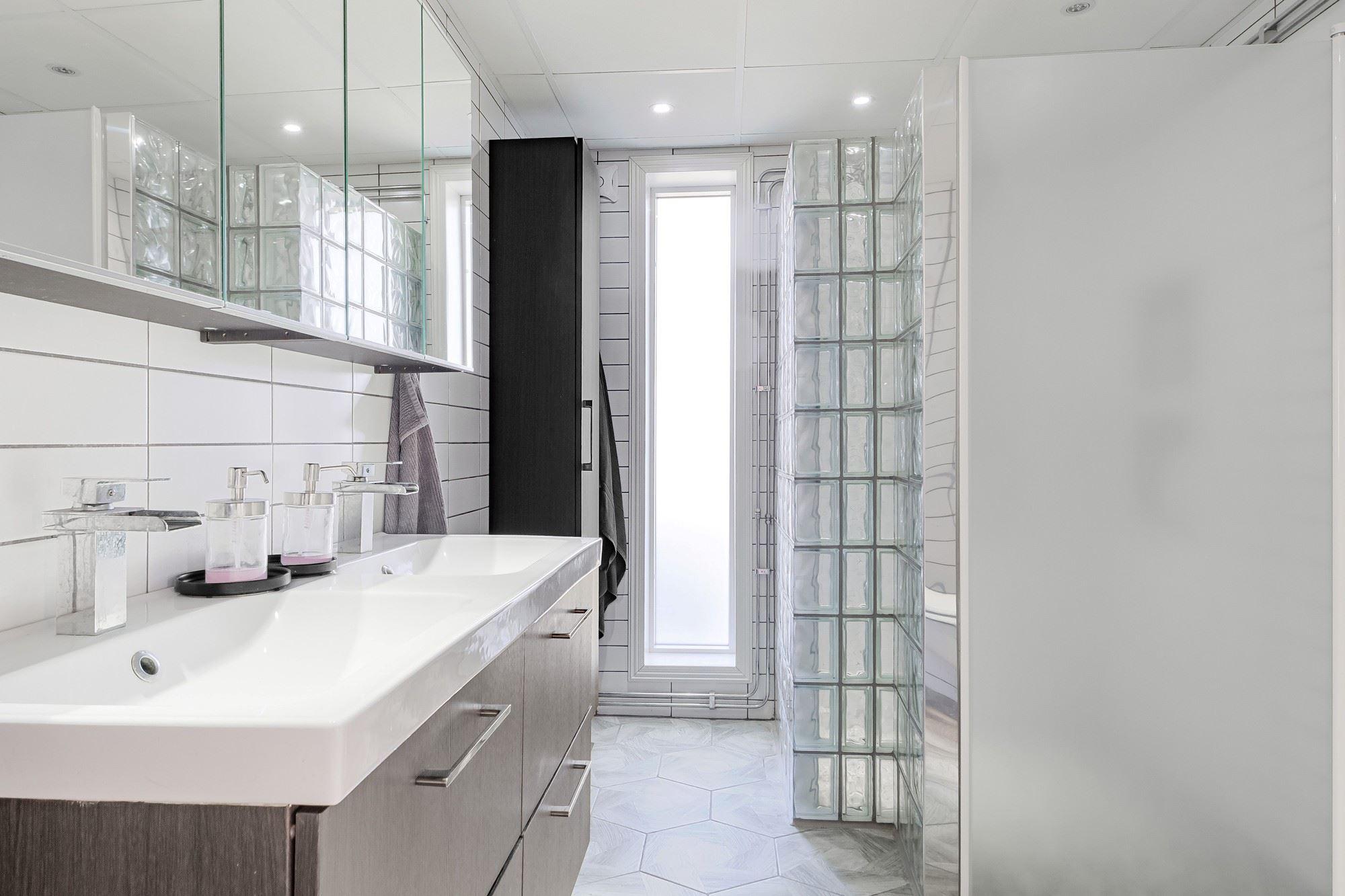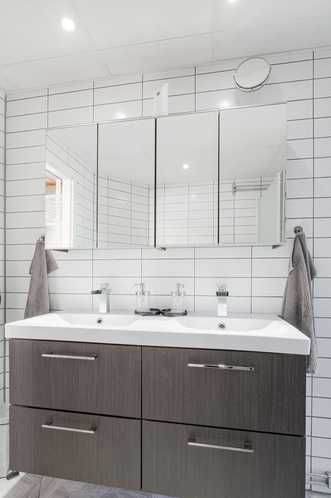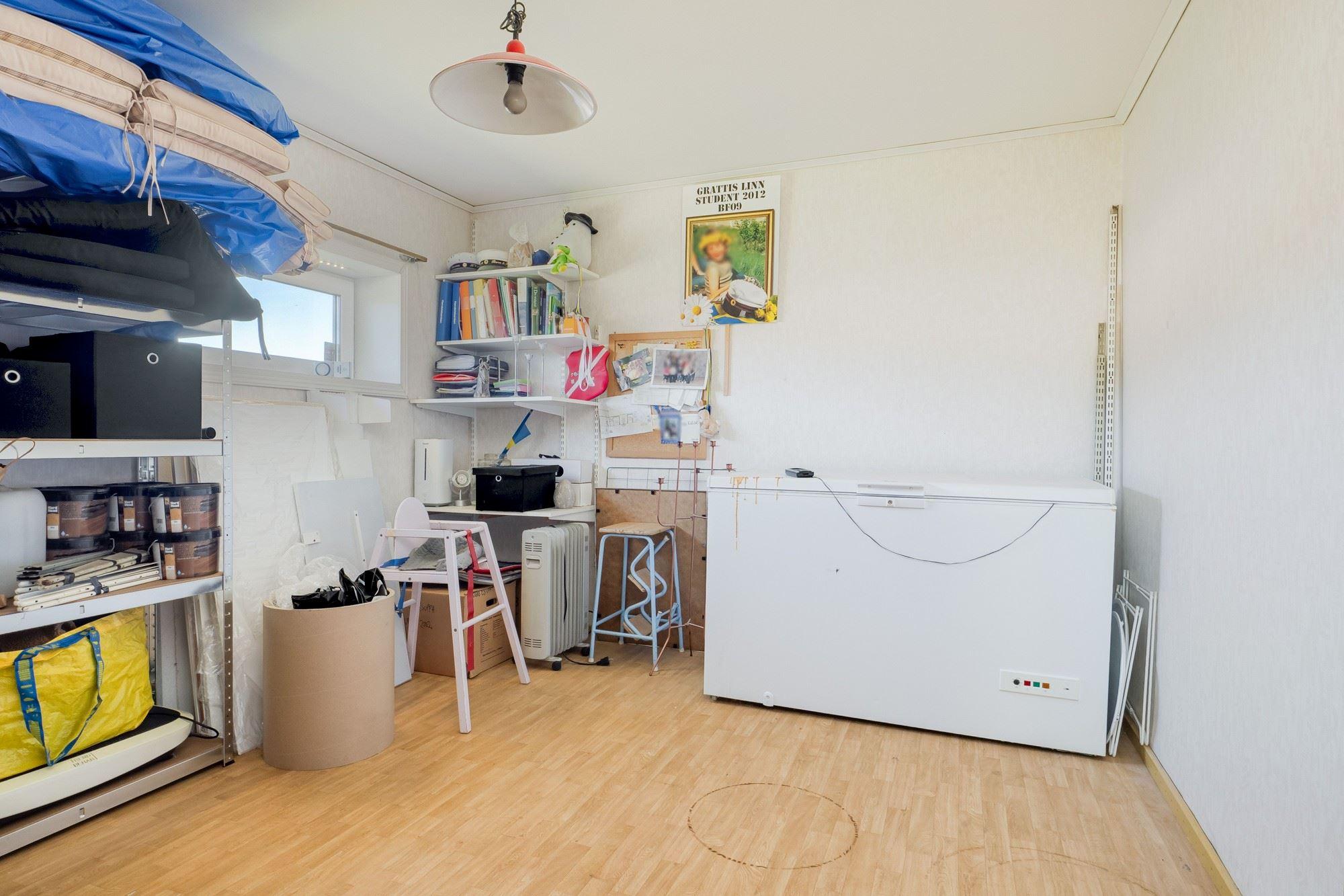 Entré med klinkergolv leder vidare till groventré med access till sovrum, garage och trädgård med altan på baksidan. Fin tvättstuga renoverad 2017. Helkaklat duschrum som har renoverats 2017 med golvvärme. Stort, ljust kök i öppen planlösning med matrum – renoverat 2015 och fullt utrustat. Här finns även pelletskamin och utgång till rymlig altan med pergola. Vardagsrum samt två sovrum, varav ett med garderobssystem/walk-in-closet. Ett trivsamt och välskött boende med bra standard – redo att flytta in i.