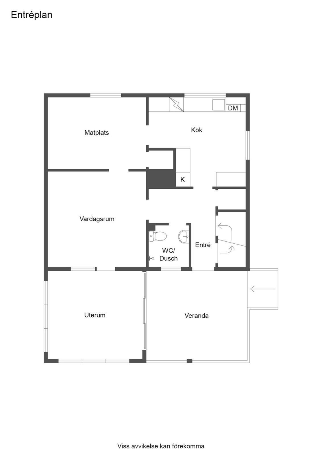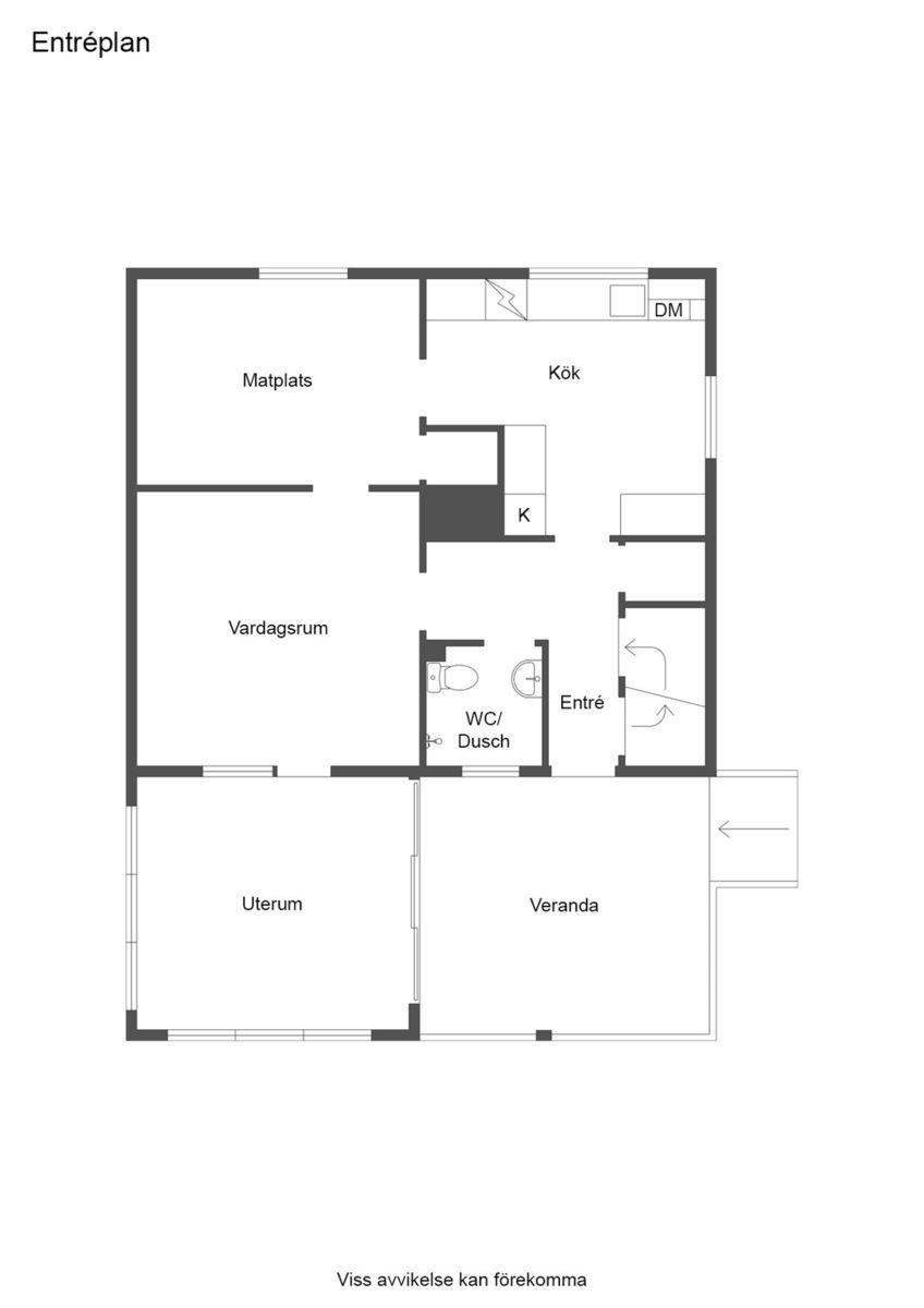 På entréplanet finns duschrum, fint kök, matrum samt vardagsrum med utgång till inglasad altan. På det övre planet finns ett stort sovrum och en hall med möjlighet att inreda till ett extra sovrum eller arbetsrum. I källaren finns en extra toalett, tvättstuga samt utrymmen som hobbyrum, gillestuga och pannrum.