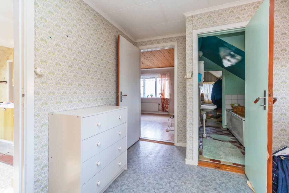 Entréplanet rymmer vardagsrum, matrum, kök samt ett badrum. På övre plan finns två sovrum, en praktisk sovalkov och ytterligare ett badrum. Kommunalt vatten och avlopp samt vattenburet värmesystem.