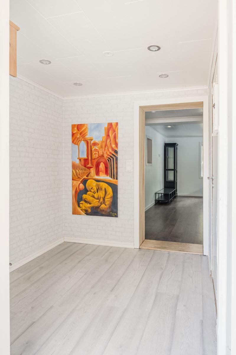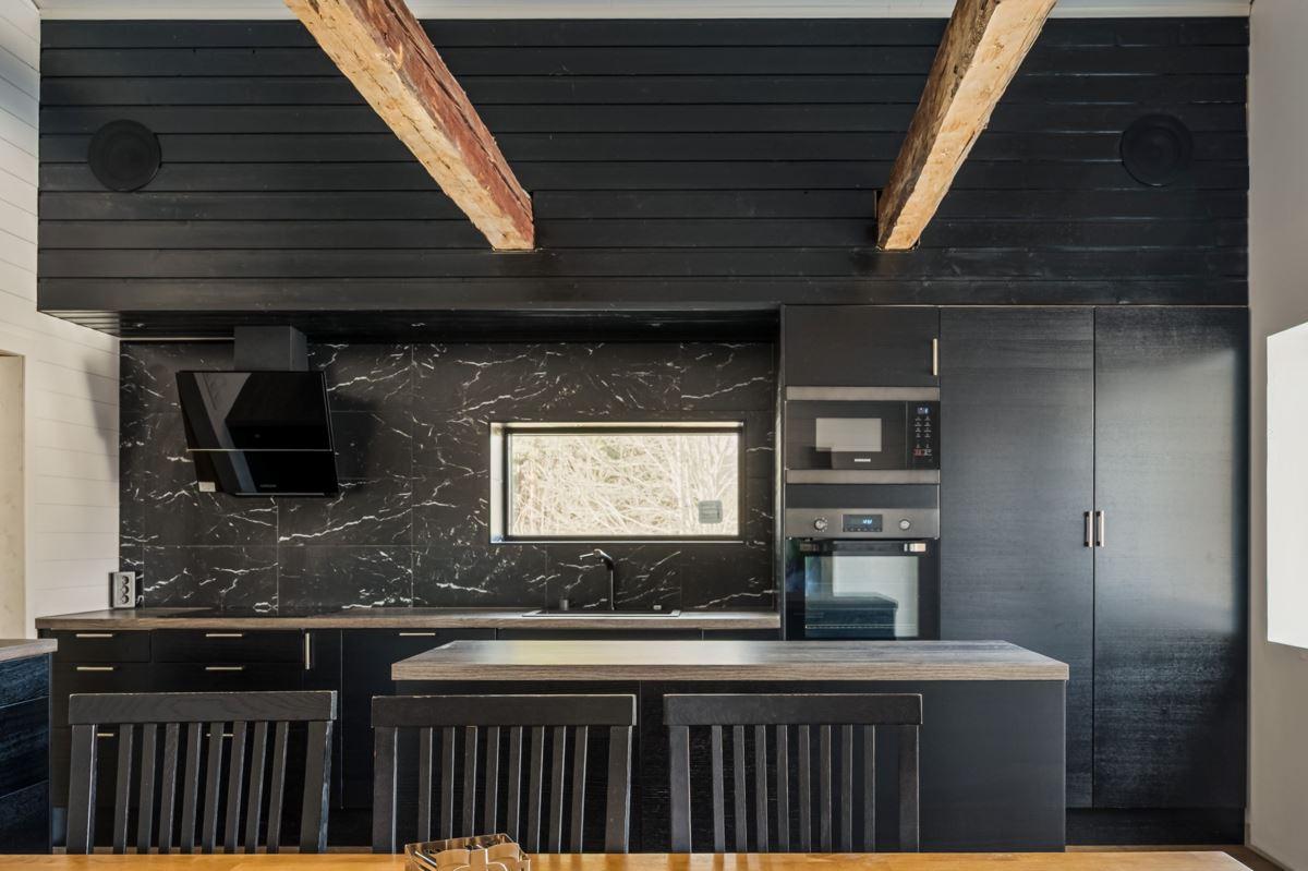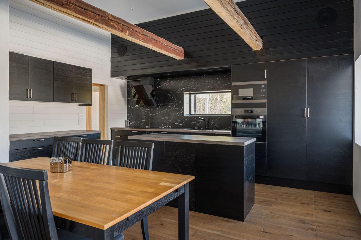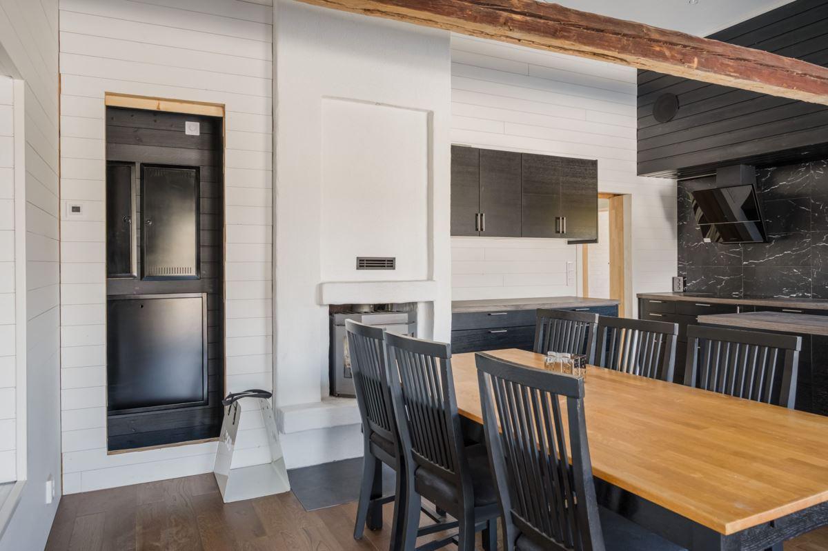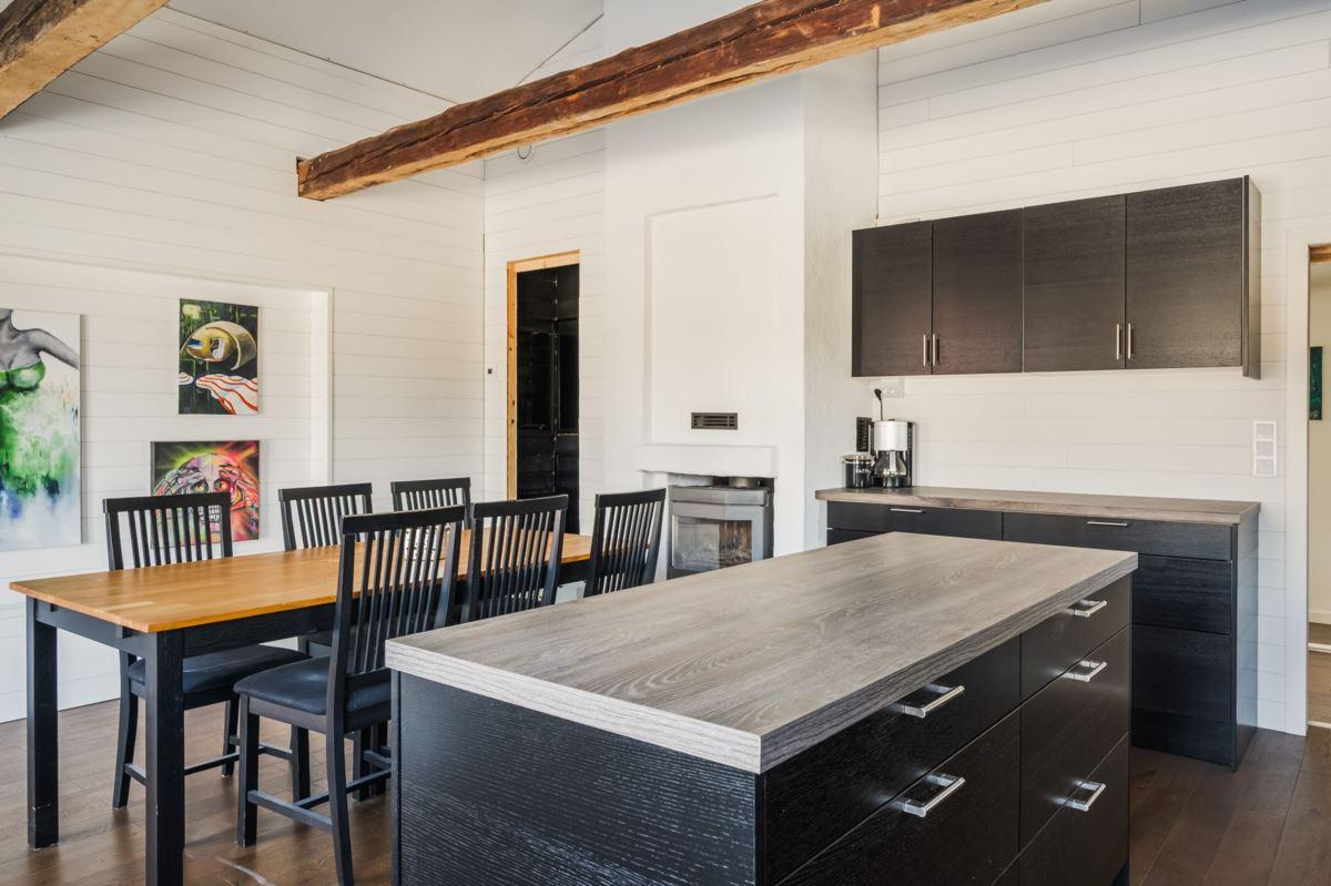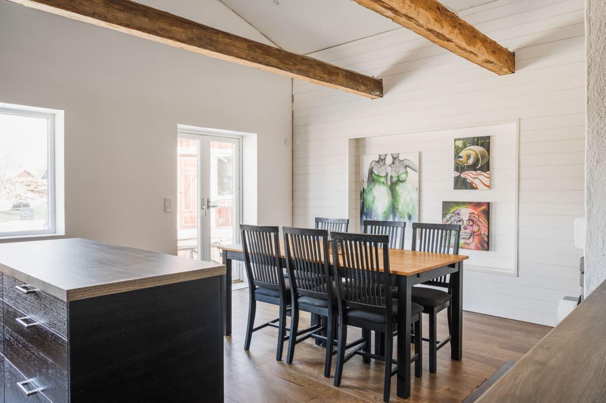 Bostadshuset har ett nyligen renoverat kök som med den generösa takhöjden upp till nock, i kombination med stora fönsterpartier, skapar en härlig rymd och ett fantastiskt ljusinsläpp, här finns också en värmande kamin samt exponerade bjälkar i taket, vardagsrum och sovrum är även dessa smakfullt renoverade.