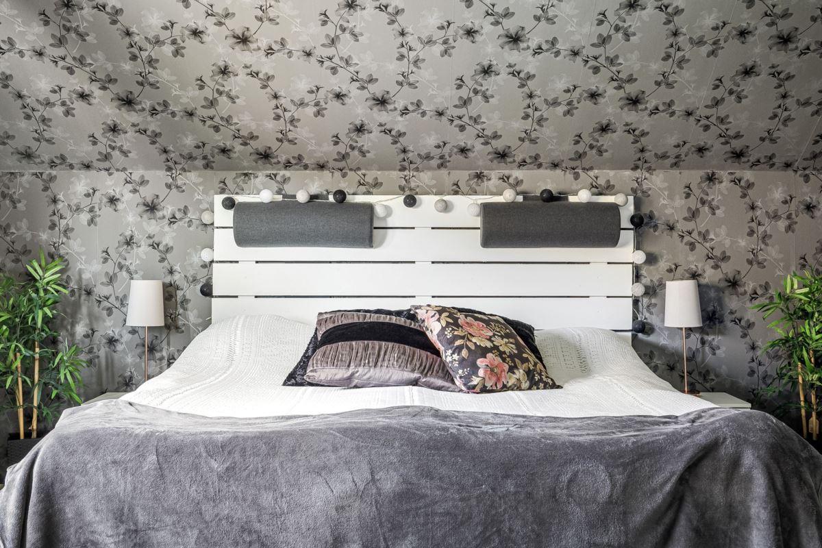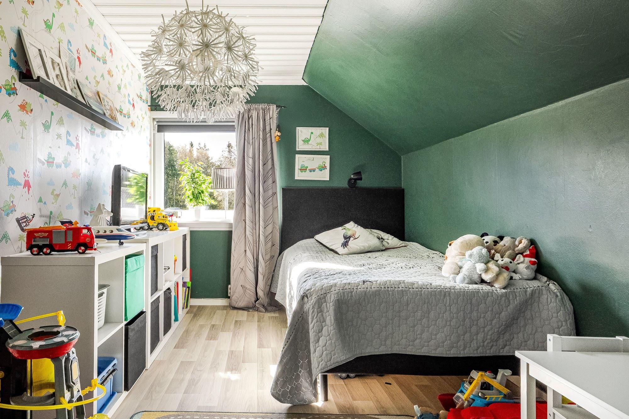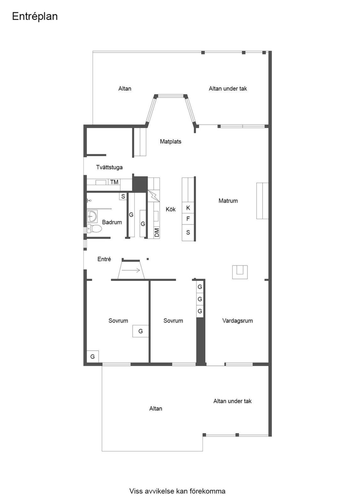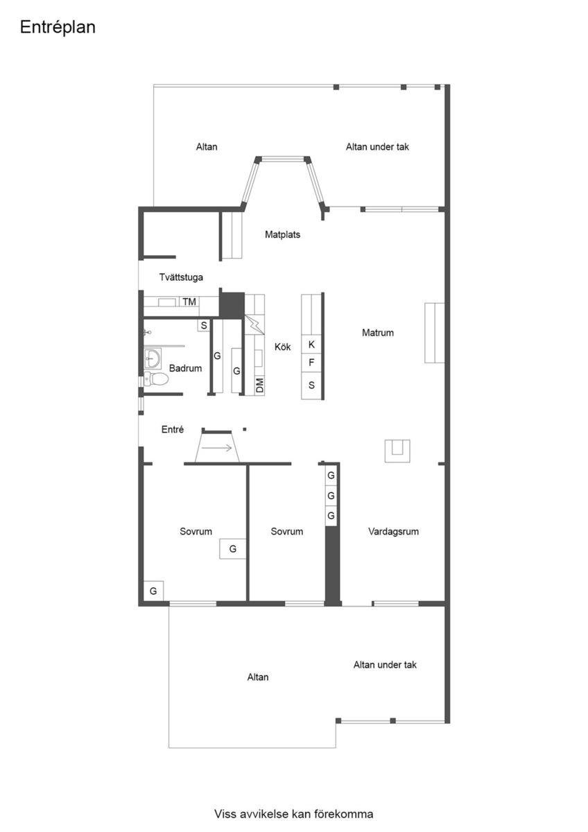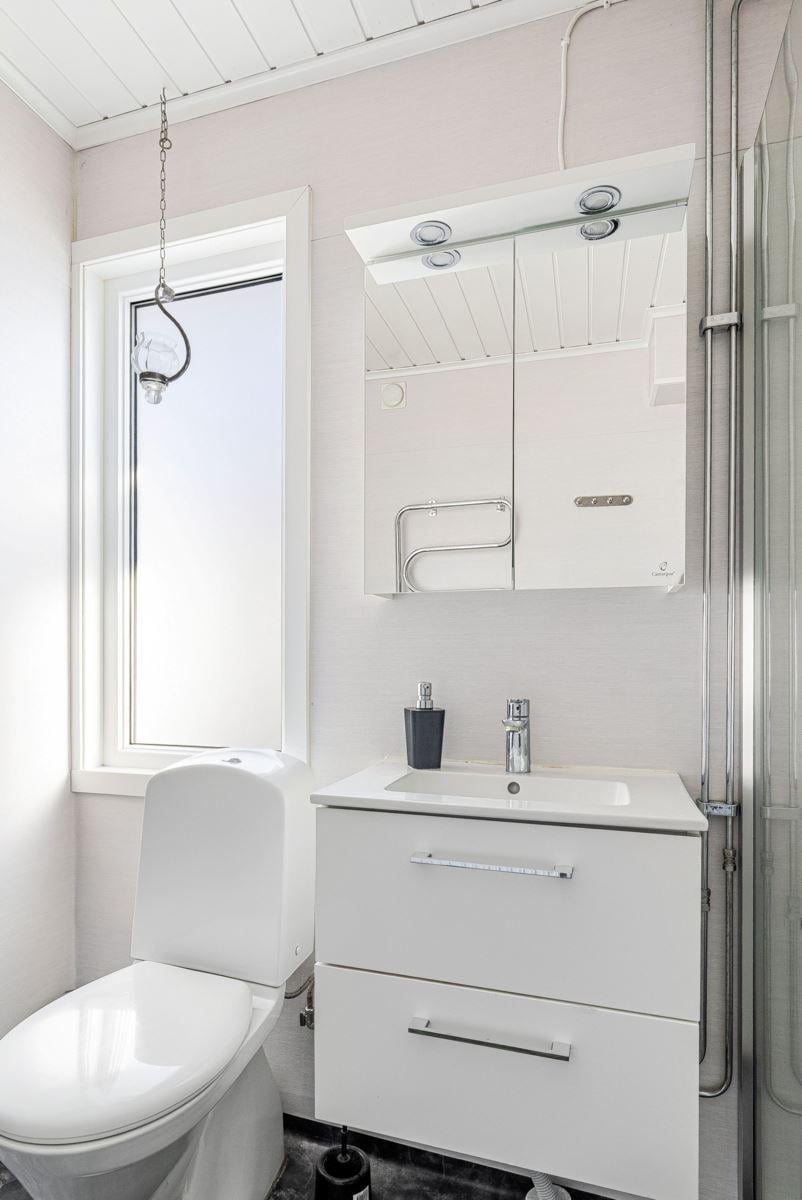 Entréplanet rymmer kök, två sovrum, duschrum och tvättstuga. Vidare finns matrum och vardagsrum i öppen planlösning. På det övre planet finns tre sovrum och ett duschrum. Fiber finns installerat i bostaden.