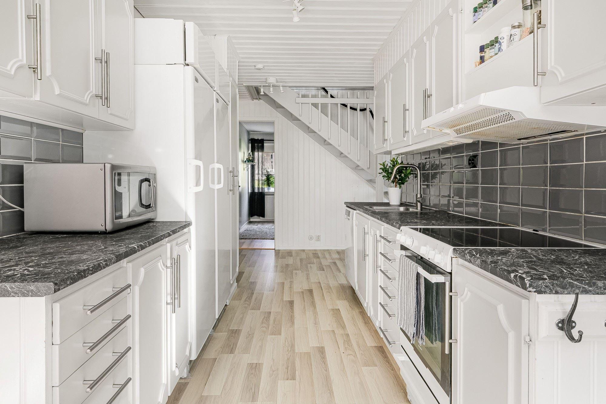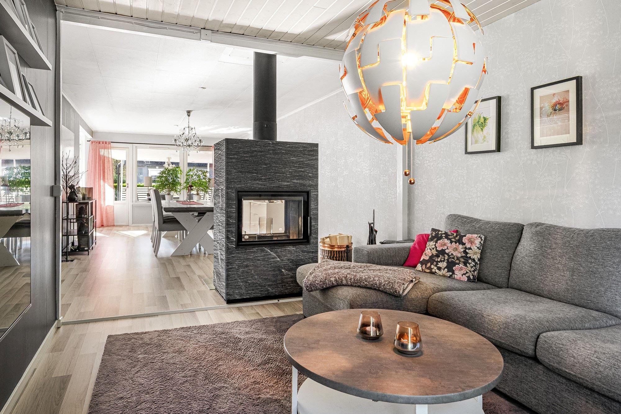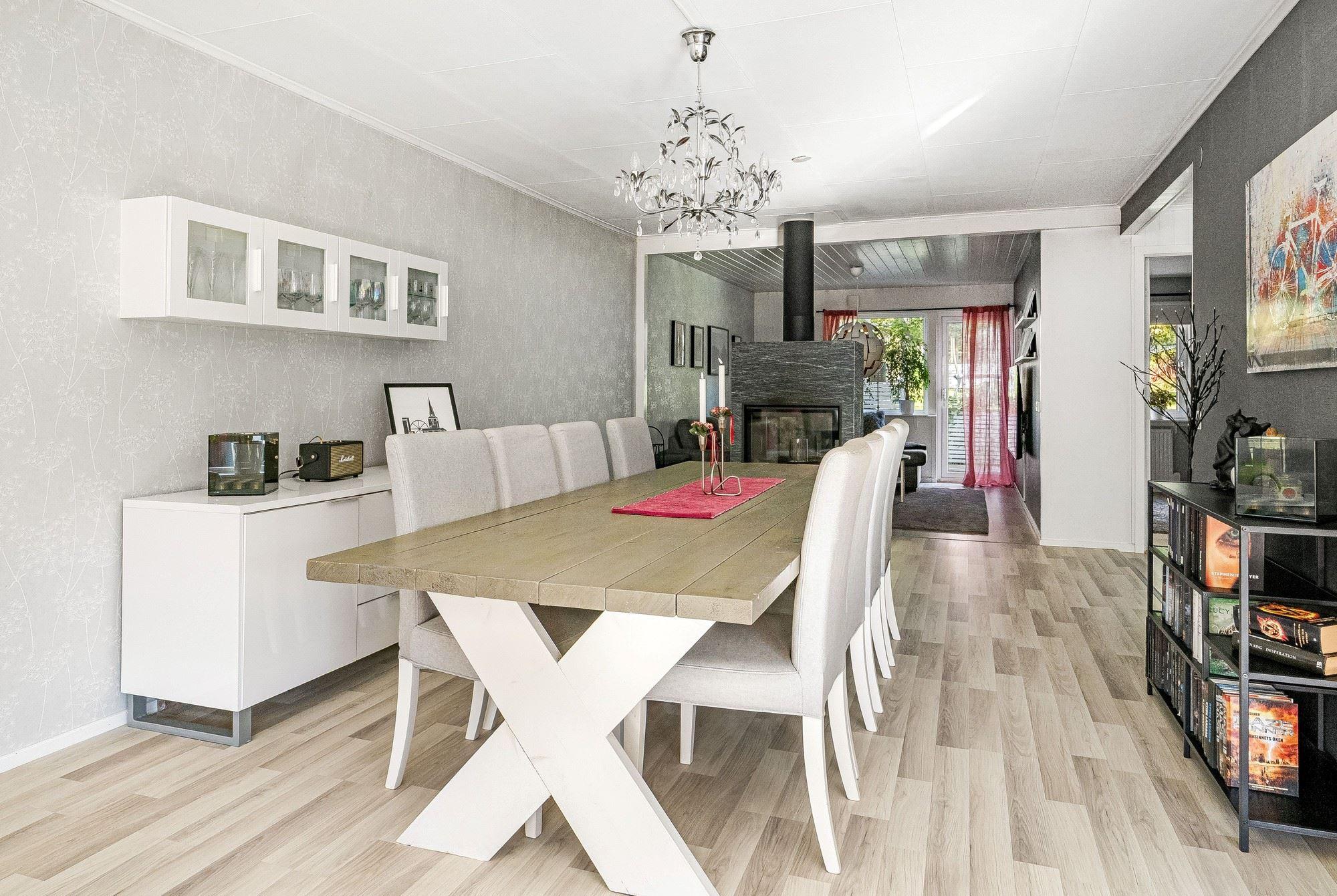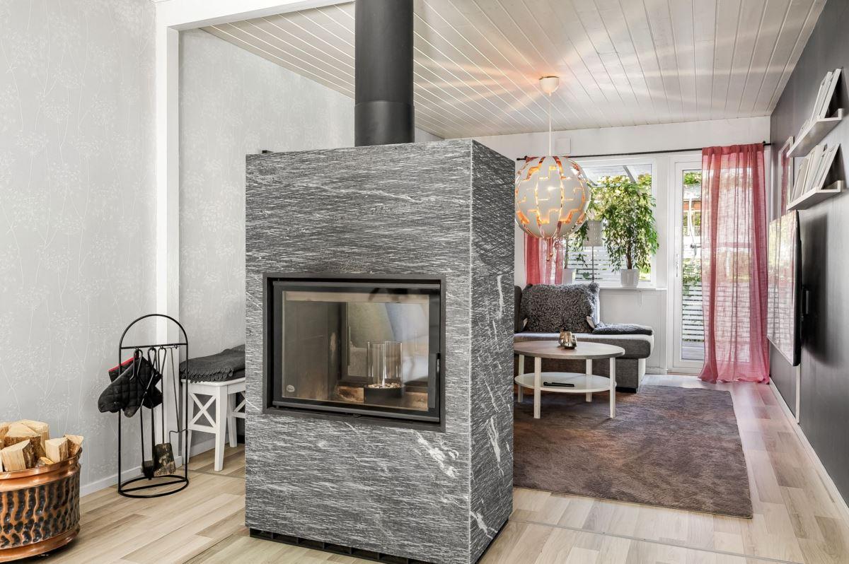 På lugna och barnvänliga området Davidsbo saluförs nu detta trevliga och bekväma kedjehus. Ett ypperligt tillfälle att landa i ett rymligt och välskött boende som genomgått större renoveringar såsom fönsterbyte, renoverat duschrum både på entréplan och på det övre planet, renoverad tvättstuga samt altaner på både fram- och baksidan. År 2022 installerades en ny täljstenskamin med glasluckor på båda sidorna, vilket innebär att man ser elden från två håll.