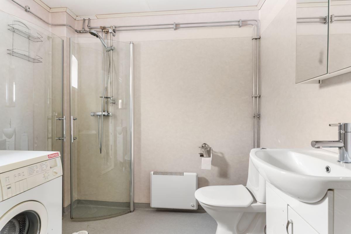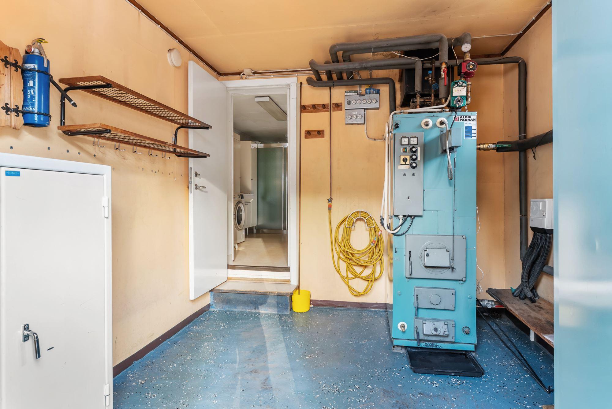 Uppvärmning sker via direktverkande el och vatten och avlopp är kopplad till samma system som bostadshuset.