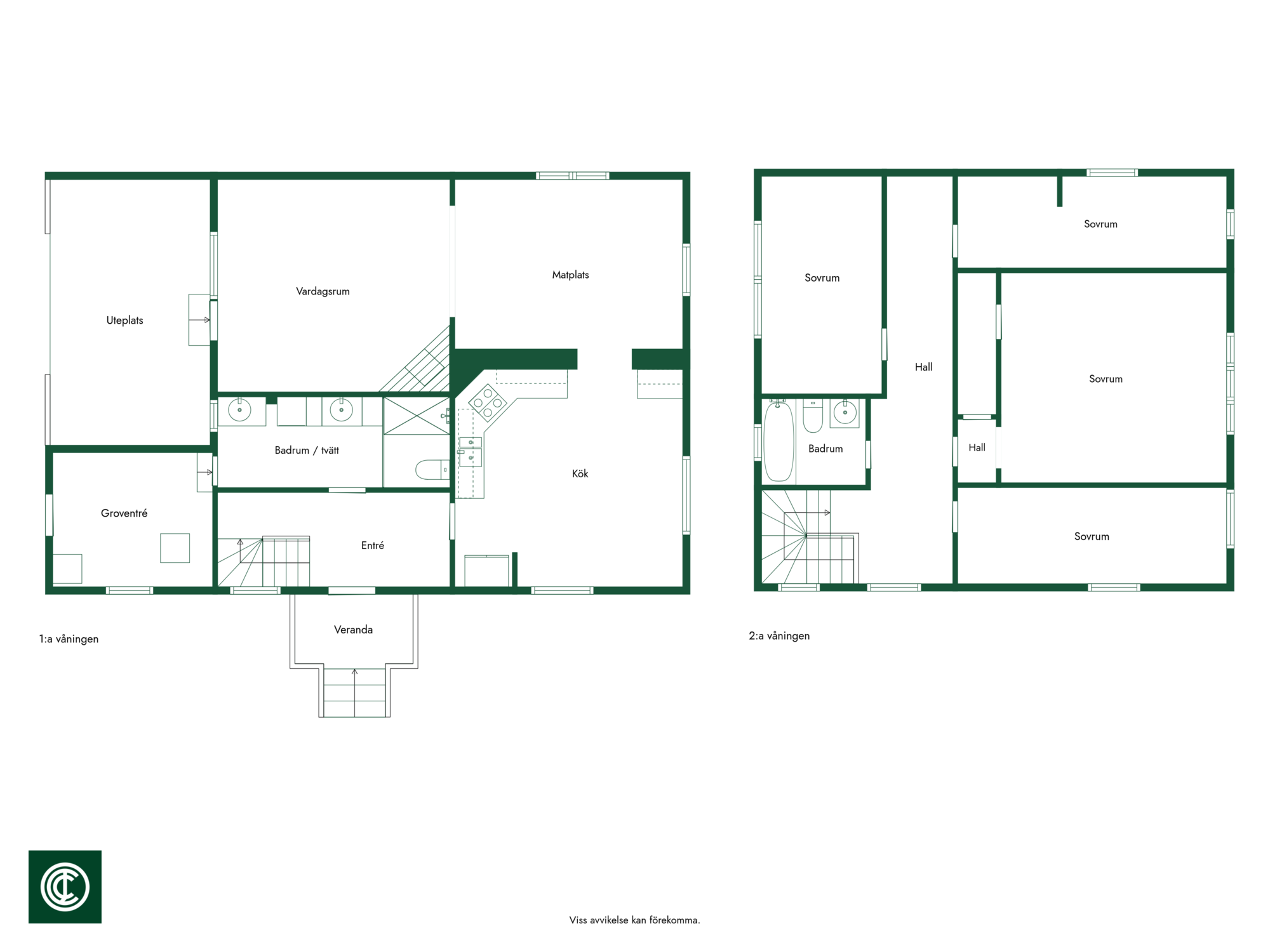 Det större bostadshuset rymmer på entréplan kök, vardagsrum med kombinerat matrum, duschrum samt pannrum. På övre plan finns fyra sovrum och badrum, vilket ger gott om plats för den större familjen.