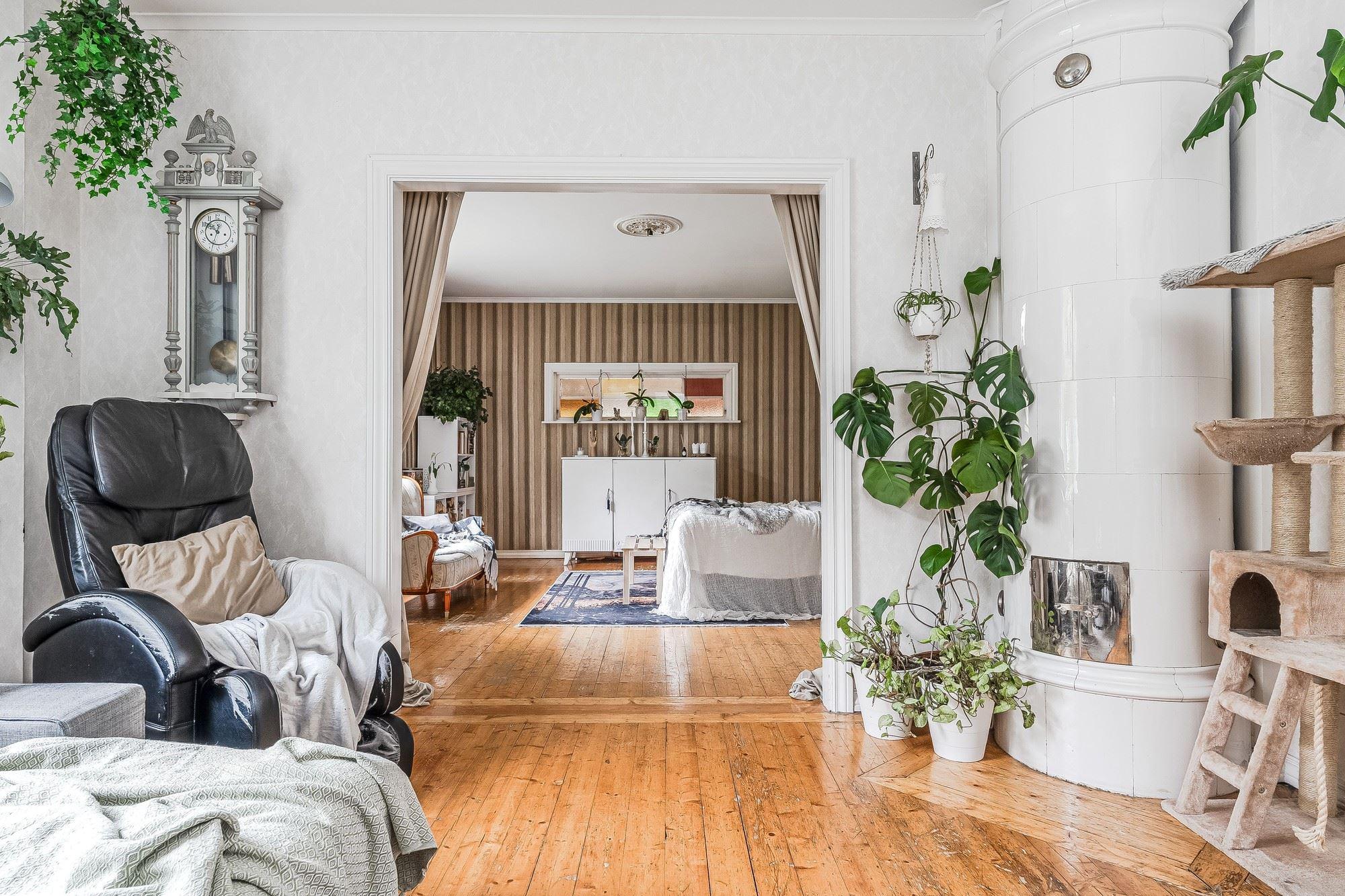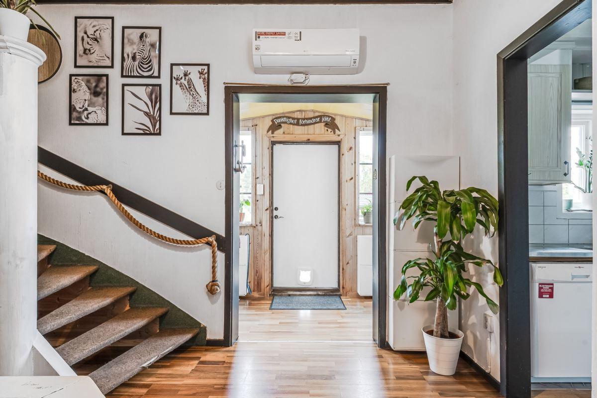 Fastigheten erbjuder ett trivsamt bostadshus om 5 rum och kök, där charm möter funktion. Här finns bland annat två kakelugnar som skapar både värme och atmosfär, samt en avkopplande bastu i källaren och ett delvis inglasat uterum med utsikt över den egna tomten samt sjön. Uppvärmning via energieffektiv bergvärme och bekvämligheten av bredbandfiber samt kommunalt vatten och avlopp ger ett tryggt och modernt boende.