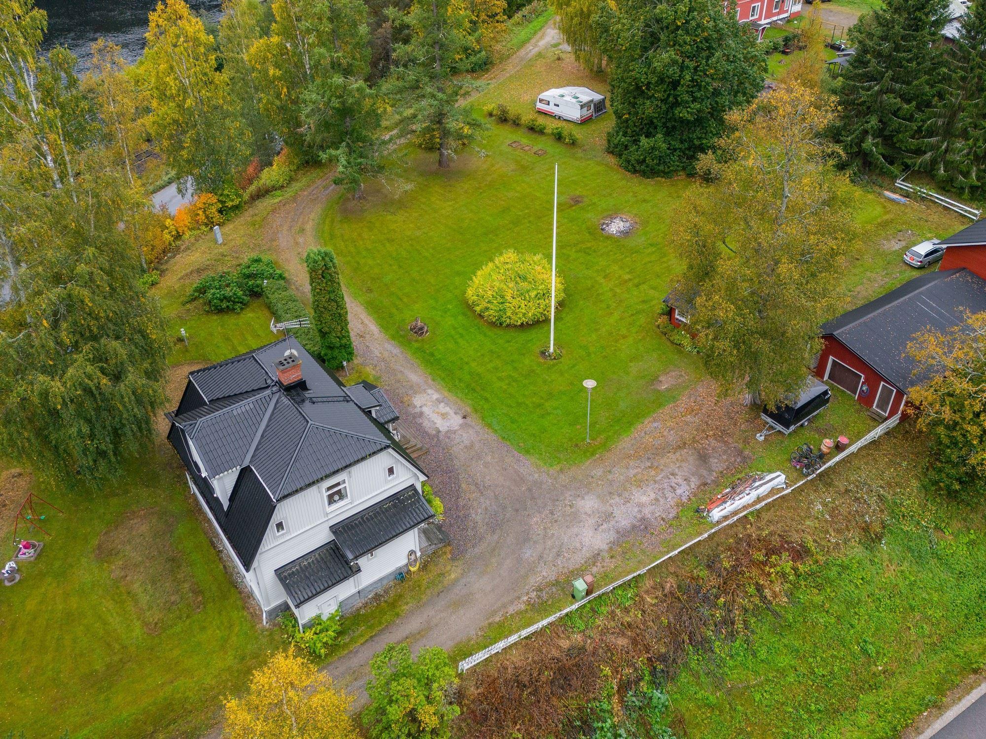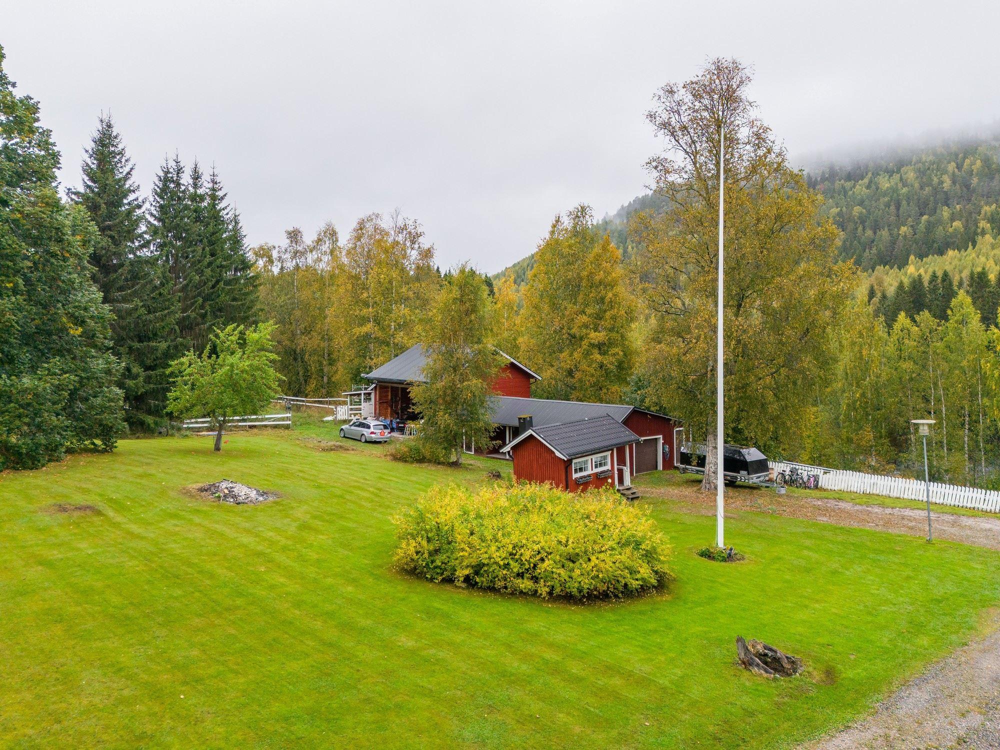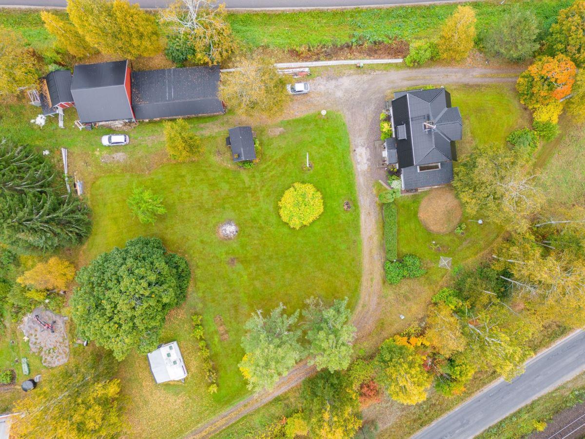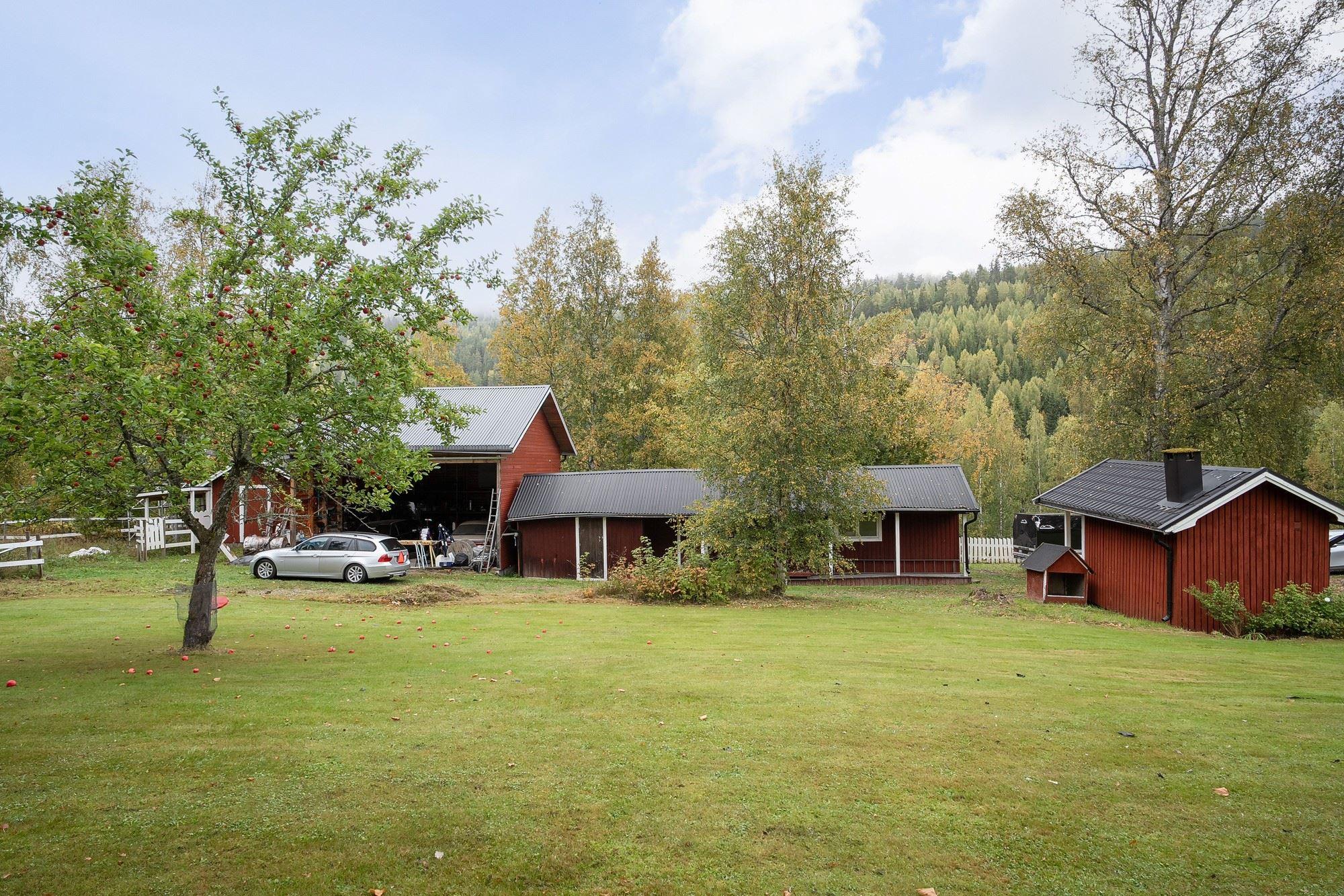 Den stora tomten bjuder på öppna gräsytor, bärbuskar och fruktträd – en plats att njuta av under alla årstider. Här finns även gott om förvaringsmöjligheter i både garage, traktorgarage och förvaringsbyggnad.