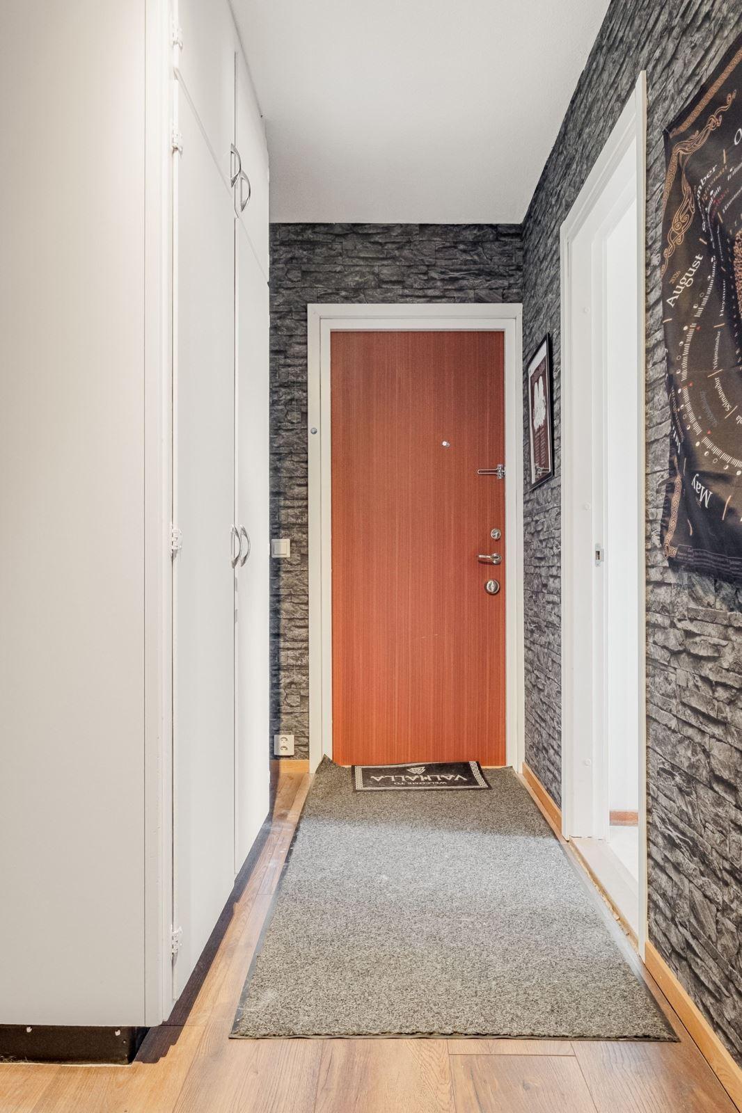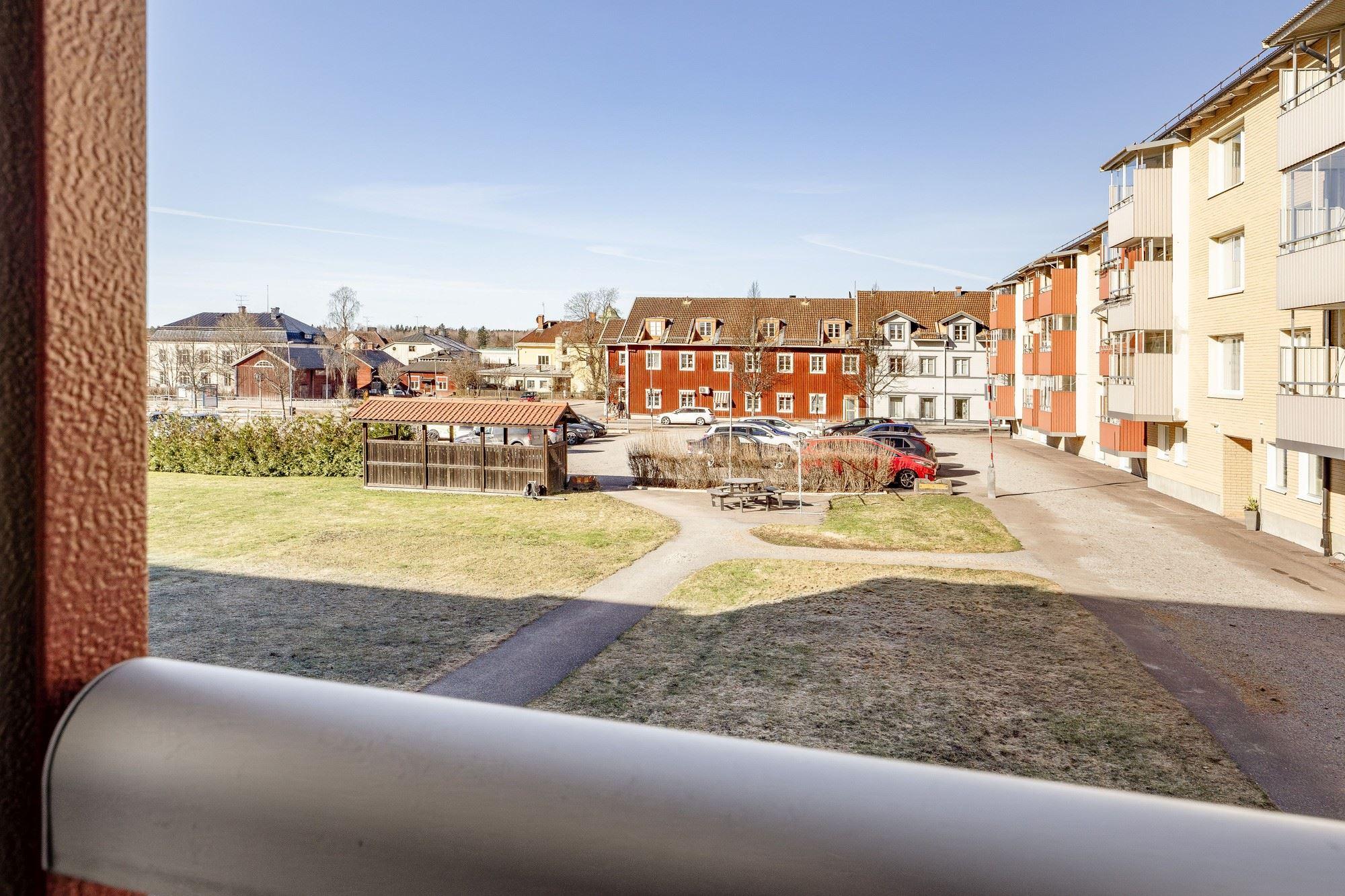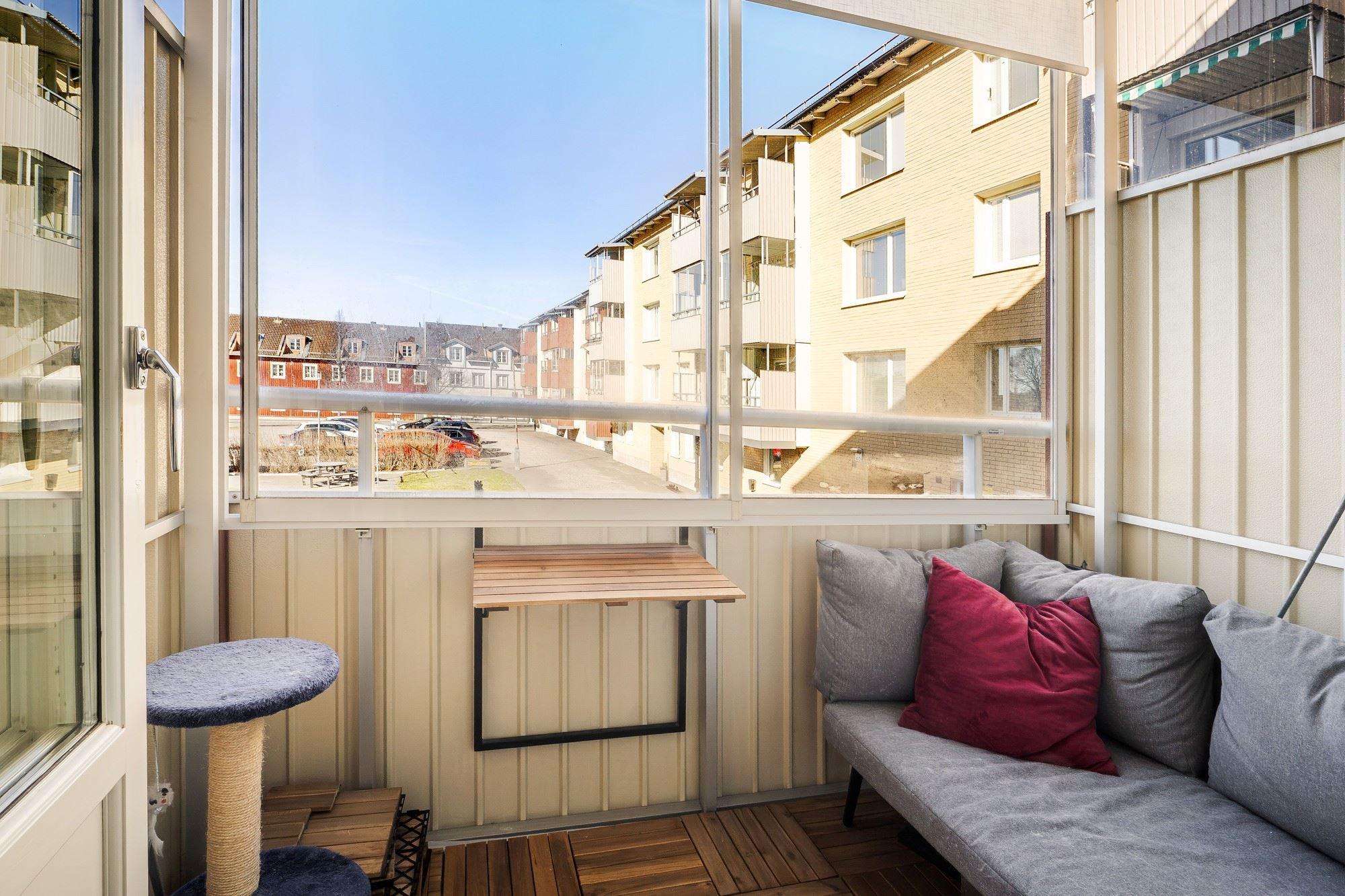 Trivsam lägenhet om 2 rok på första våningen. Hall med plats för avhängning av ytterkläder. Ljust kök med matplats vid fönster. Från vardagsrummet nås en möblerbar inglasad balkong med eftermiddags- och kvällssol. Sovrum med flera garderober. Helkaklat duschrum med tvättmaskin. Internet ingår i månadsavgiften.