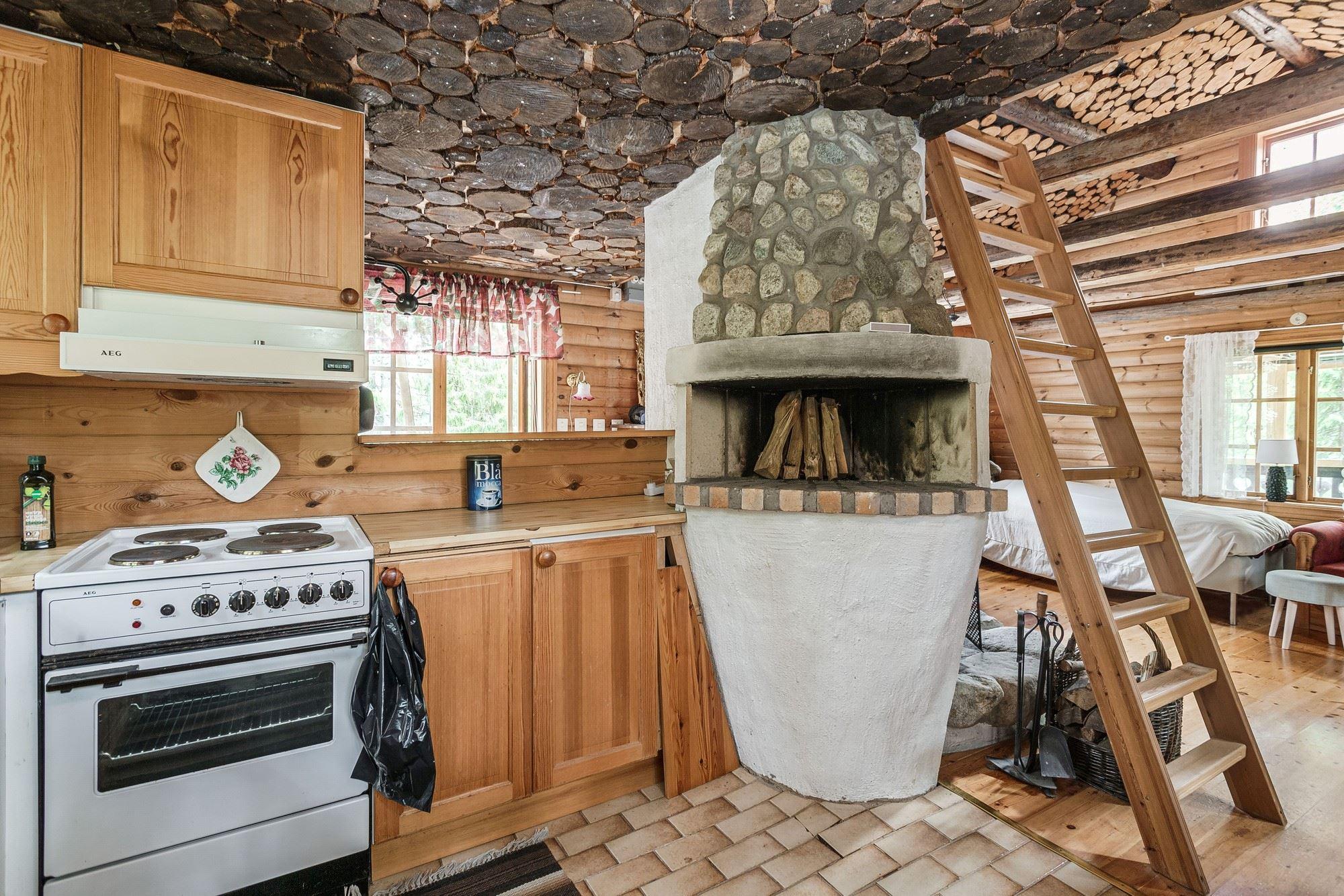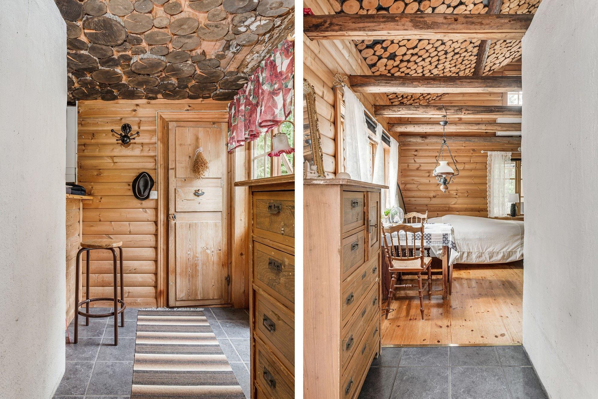 Storstugan bjuder på sällskapsytor med vackra träinslag och härlig karaktär. I vardagsrumsdelen finns en vackert murad öppen spis i natursten och köksdelen har en öppen spis i ståhöjd. Sovloft ger extra sovplatser och förstärker den genuina stugkänslan.