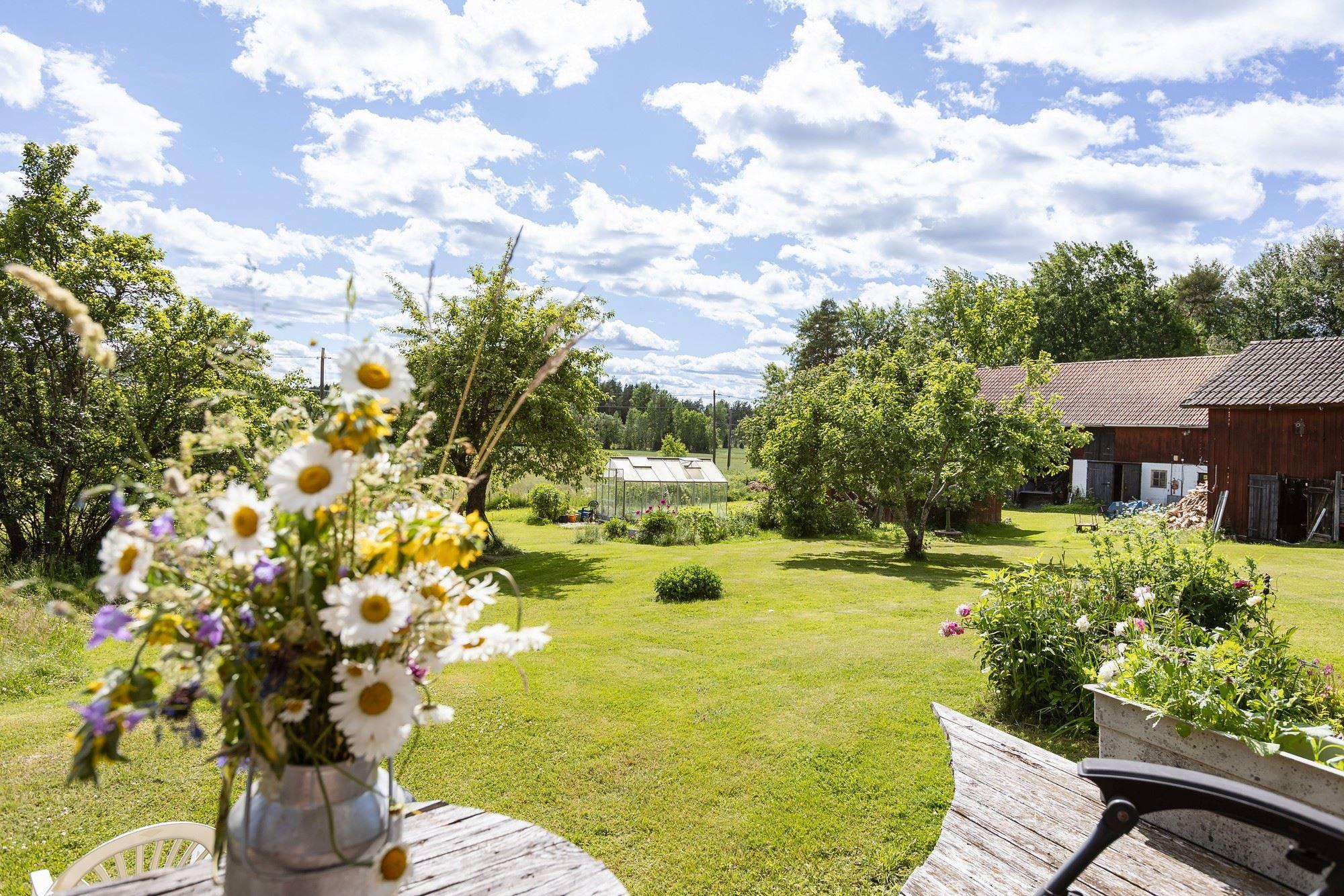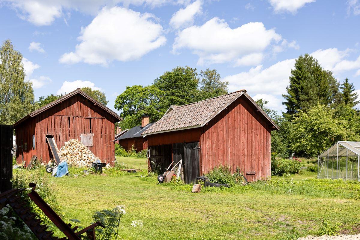 Ca 160 kvm stor mangårdsbyggnad fr. 1882, timrad lillstuga samt flera ekonomihus. Fiber finns indraget både till mangårdsbyggnaden och lillstugan.