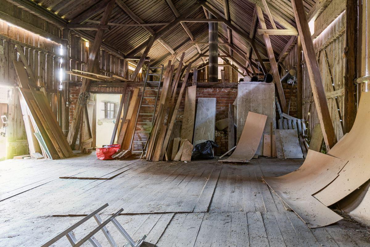Fd. ladugård/stall/loge, byggnadsarea ca 412 kvm. Byggnaden inrymmer bl.a. stalldel med 4 boxar och sadelkammare, loge, hönshus och gårdsverkstad. Vidbyggt finns också ett torrdass.