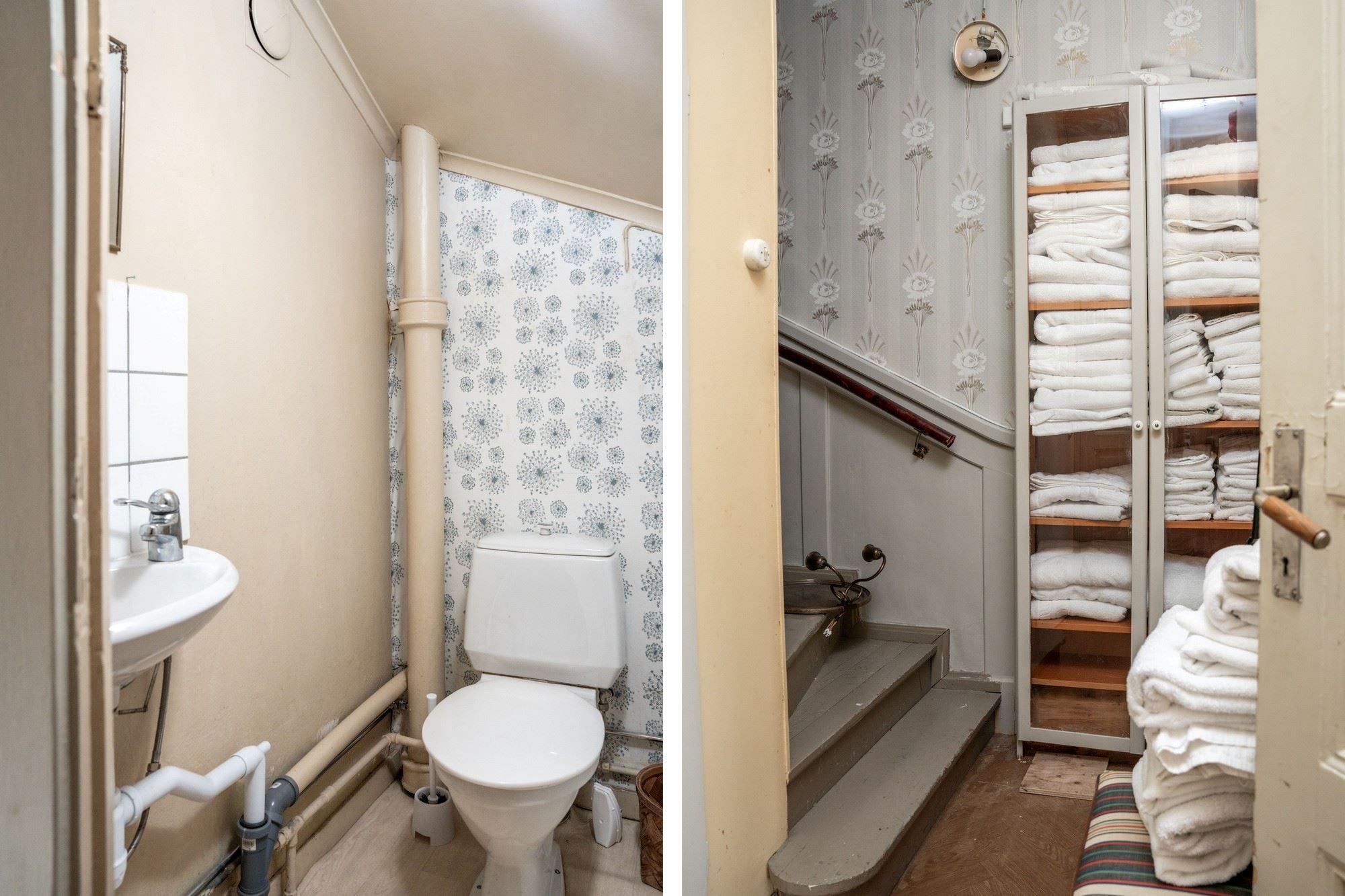 Tredje plan: På det översta planet finns en lägenhet med fyra rum och badrum i ena delen av huset – idealisk som privatbostad eller personaldel. I den andra delen finns två ytterligare rum samt vindsutrymmen som kan nyttjas som förråd eller utvecklas vidare.