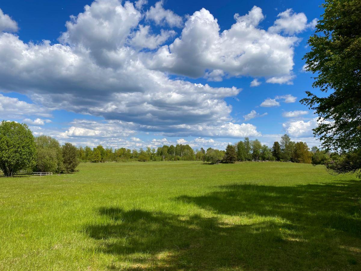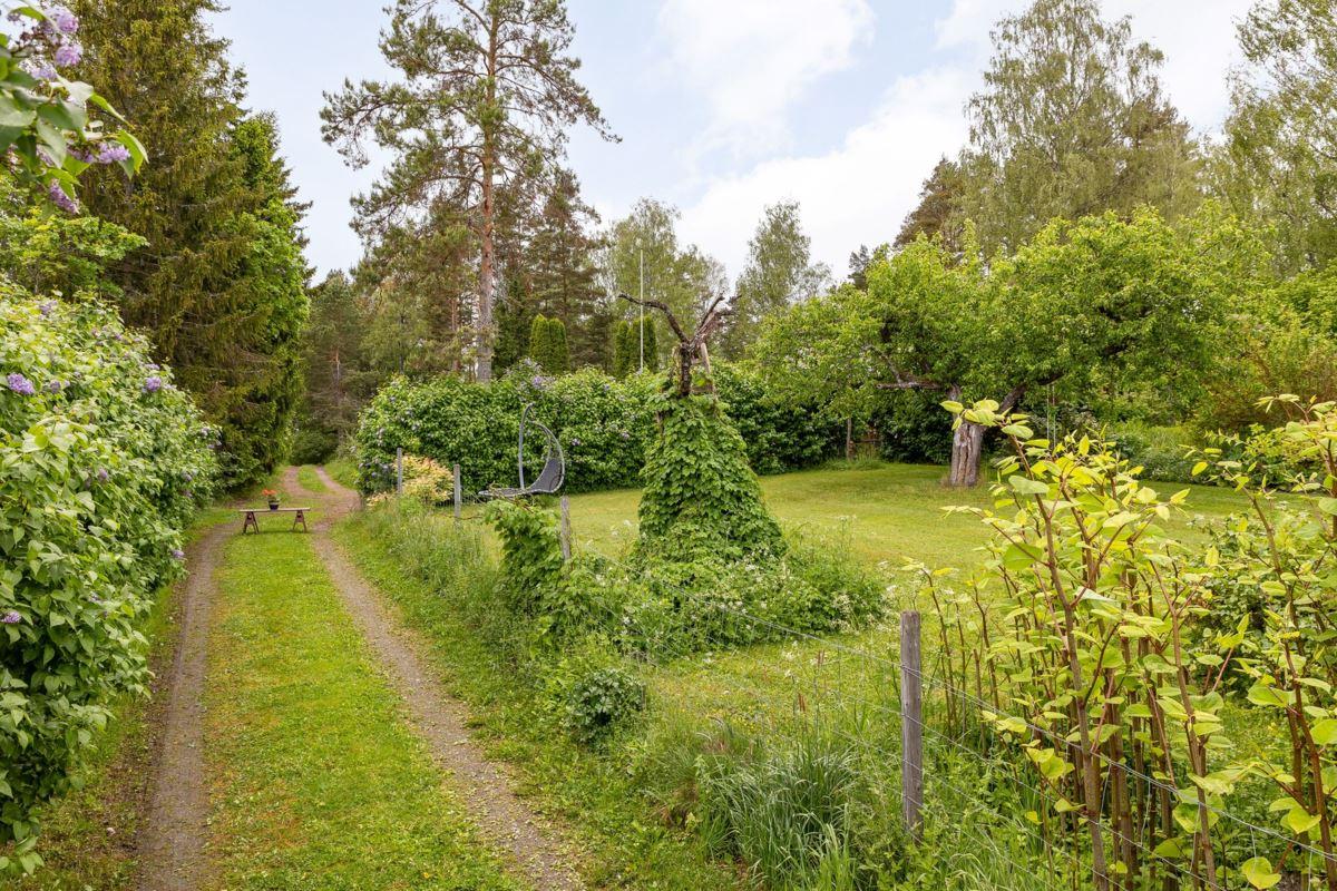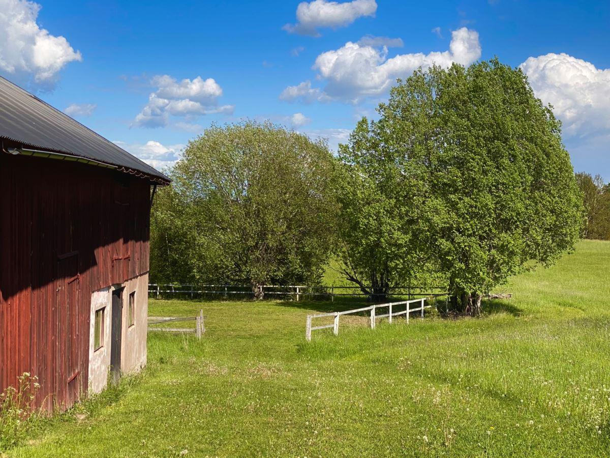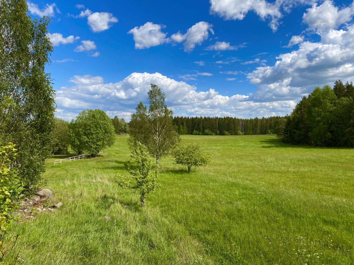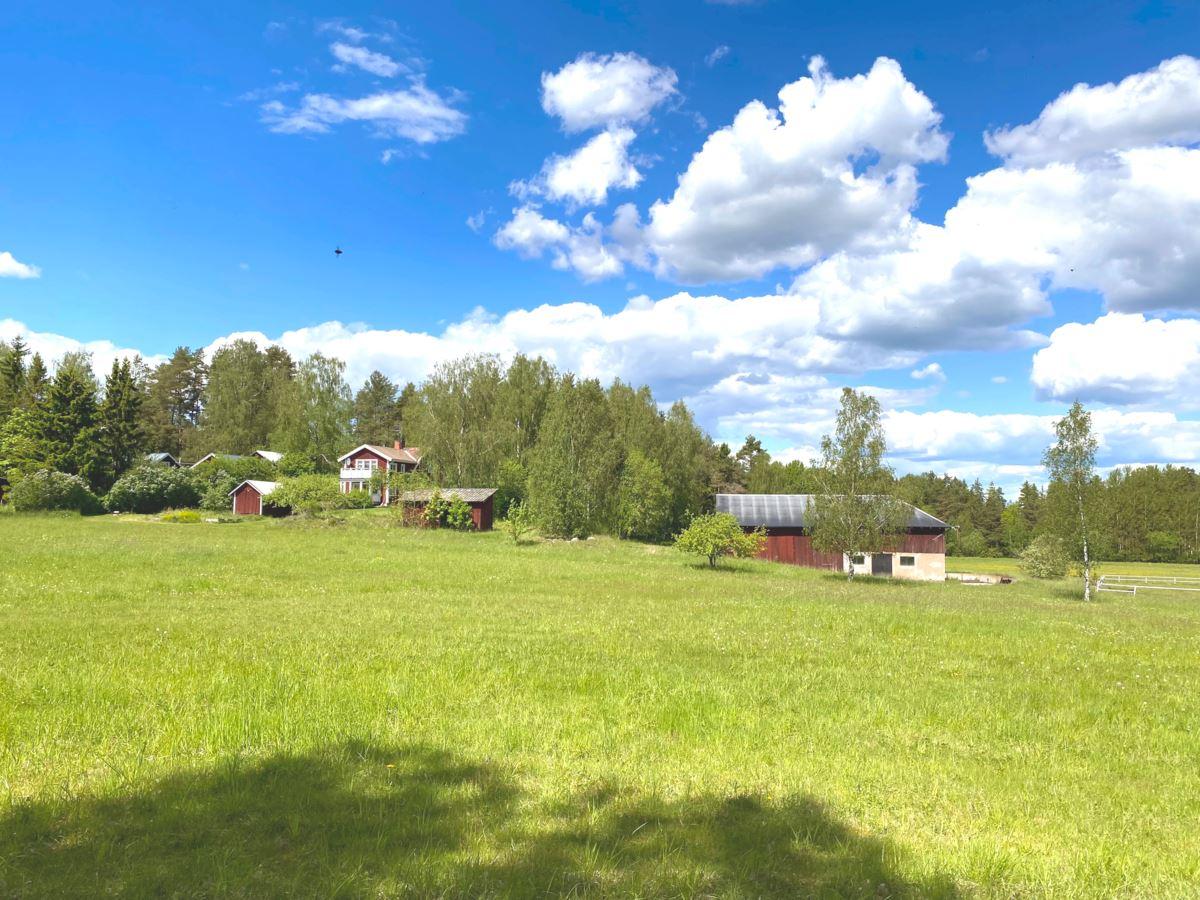 Den totala arealen uppgår till lite knappt 16 hektar, varav ca 11 hektar åker- och betesmark samt 3 ha skogsmark. Vid huset finns en uppväxt trädgårdstomt med bl.a. fruktträd, bär- och prydnadsbuskar, perennrabatter samt en liten stensatt damm. Nedanför stallet finns en ridbana. På fastigheten finns också ett viltvatten, för vilket årligt miljöstöd erhålls. Knappt 10 ha av åkermarken är brukad och insådd med vall.