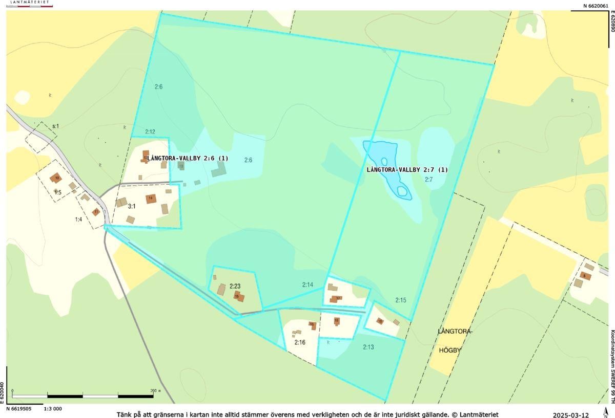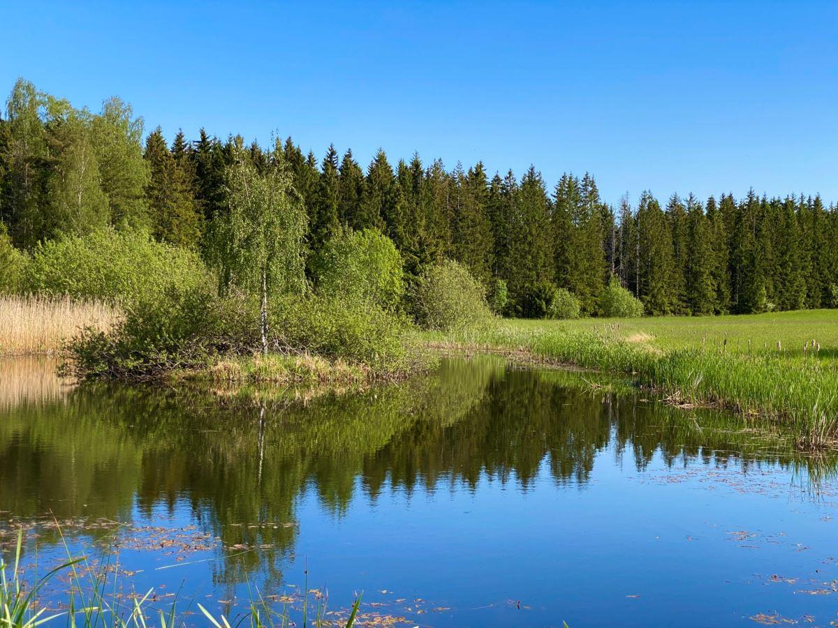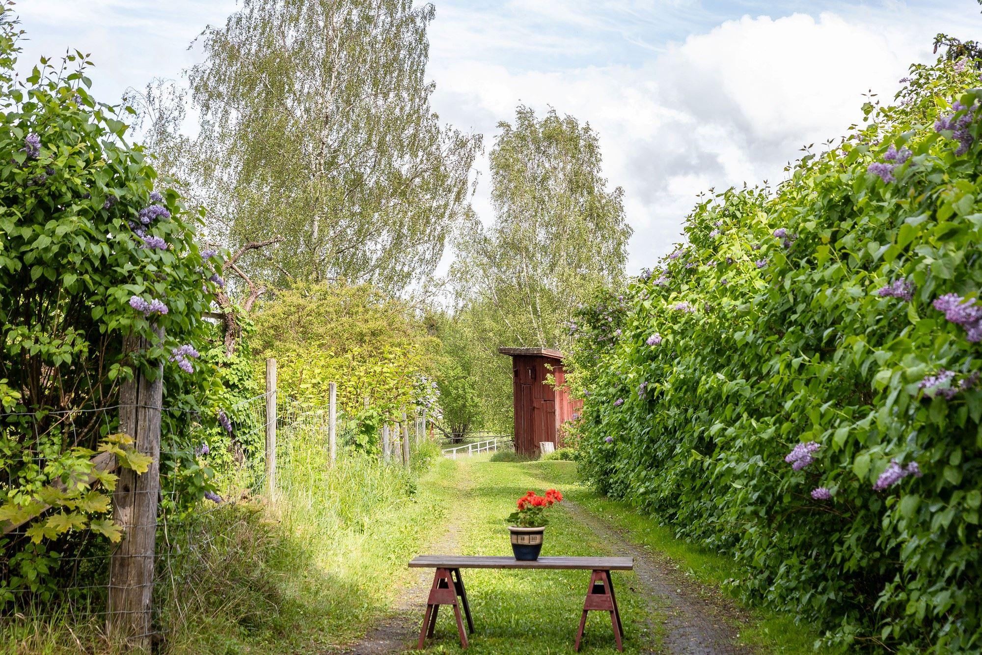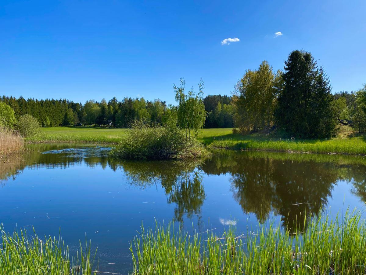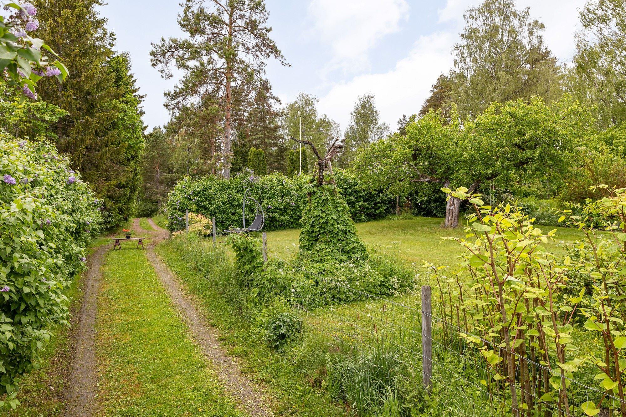 Den totala arealen uppgår till lite knappt 16 hektar, varav ca 11 hektar åker- och betesmark samt 3 ha skogsmark. Vid huset finns en uppväxt trädgårdstomt med bl.a. fruktträd, bär- och prydnadsbuskar, perennrabatter samt en liten stensatt damm. Nedanför stallet finns en ridbana. På fastigheten finns också ett viltvatten, för vilket årligt miljöstöd erhålls. Knappt 10 ha av åkermarken är brukad och insådd med vall.