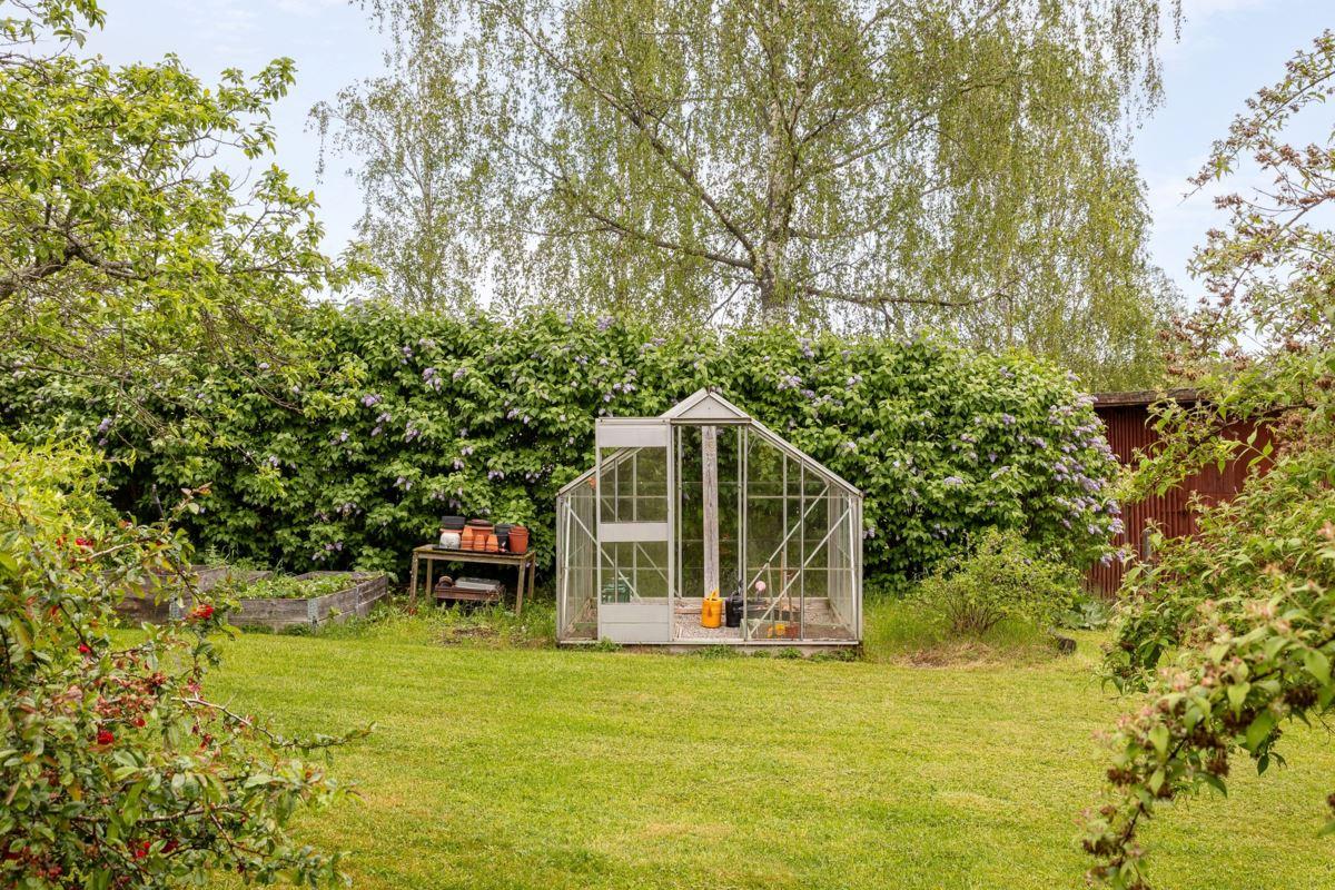 Växthus: Uppfört på 1980-talet med aluminiumstomme. Byggnadsarea ca 6 kvm.