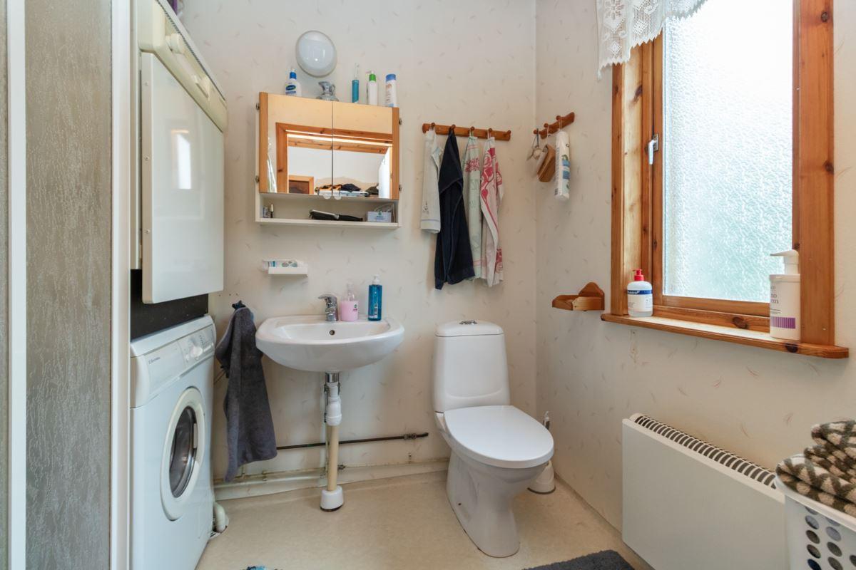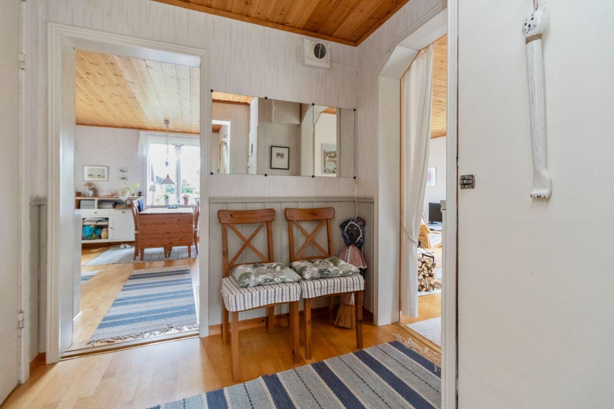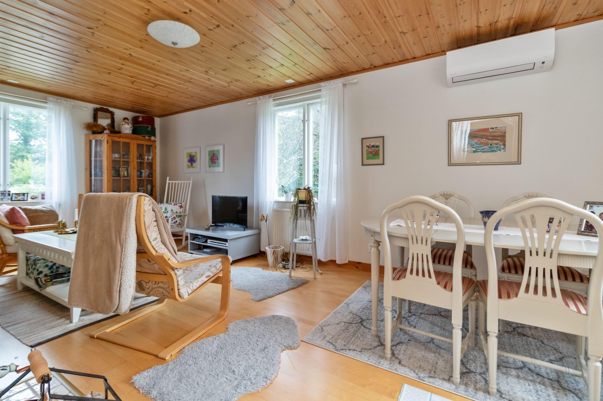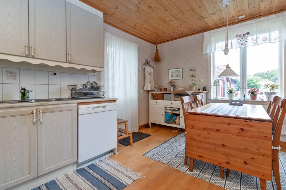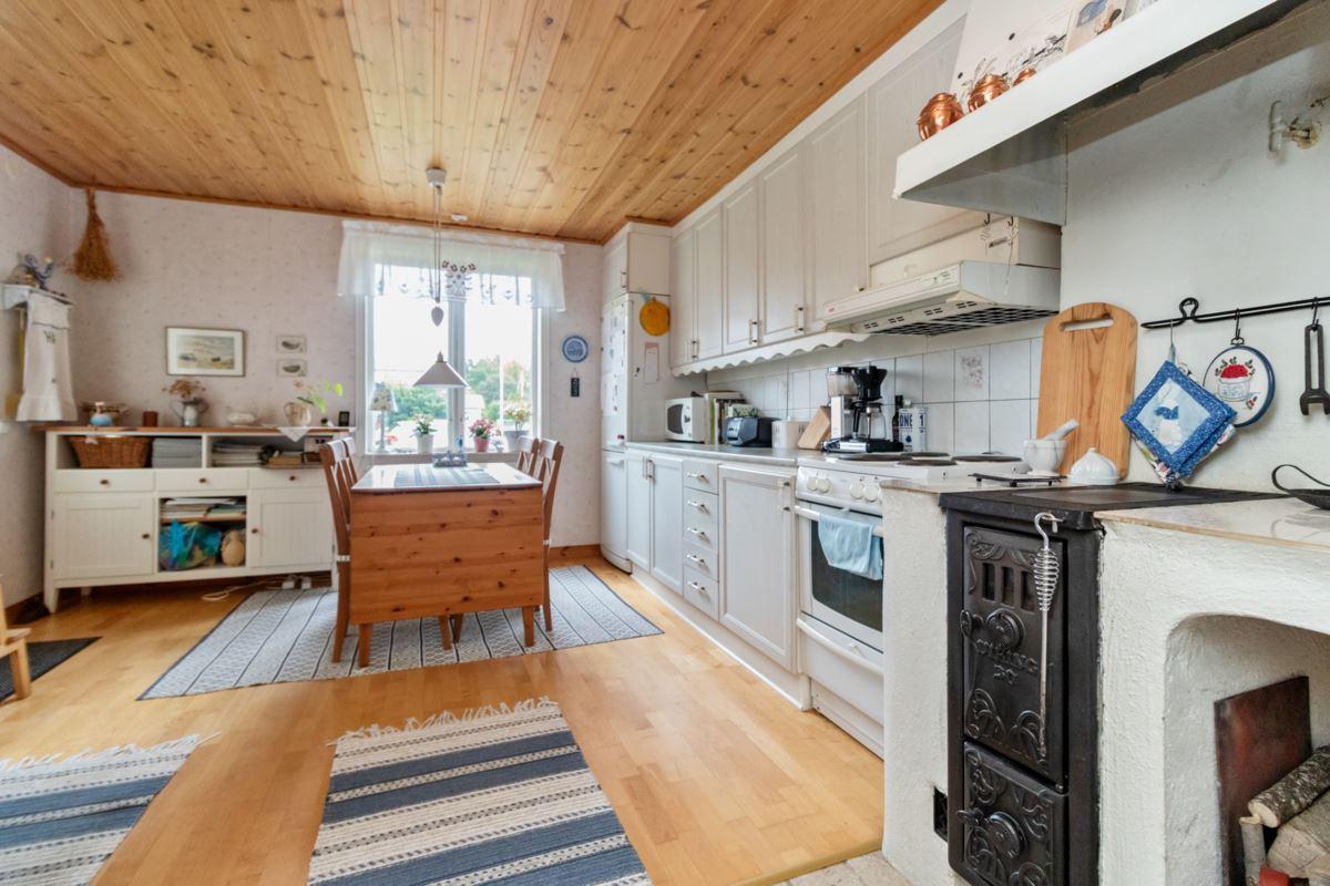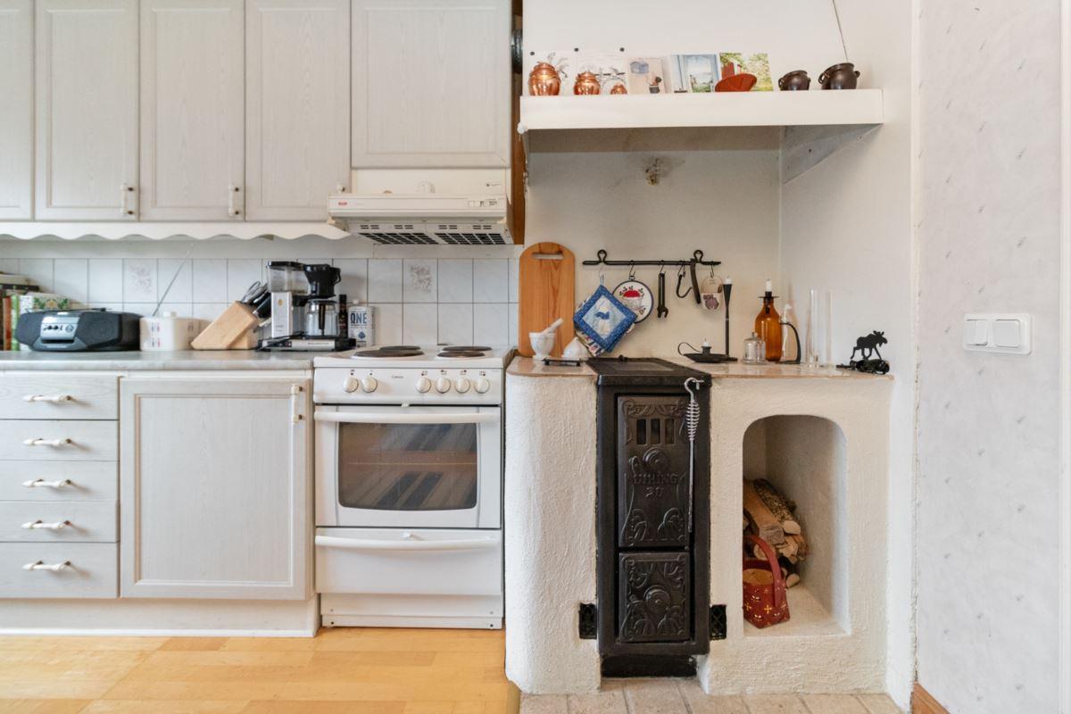 Huvudbyggnaden erbjuder ett välplanerat boende med vardagsrum, kök och två sovrum. Vardagsrummet pryds av en vacker kakelugn som skänker både värme och charm, medan köket har en vedspis. Från köket nås den stora altanen, där du med både vänner och familj kan njuta av långa sommarkvällar. Bostaden kommer även att säljas delvis möblerad.