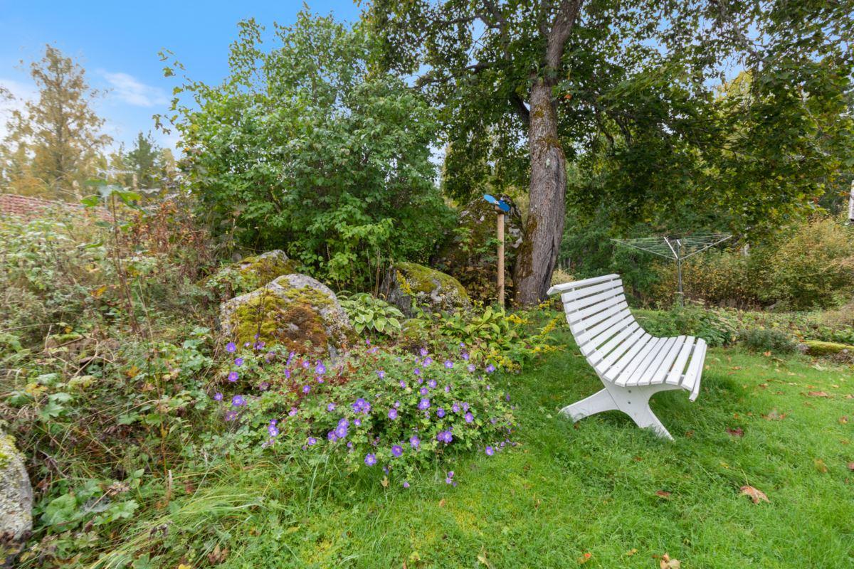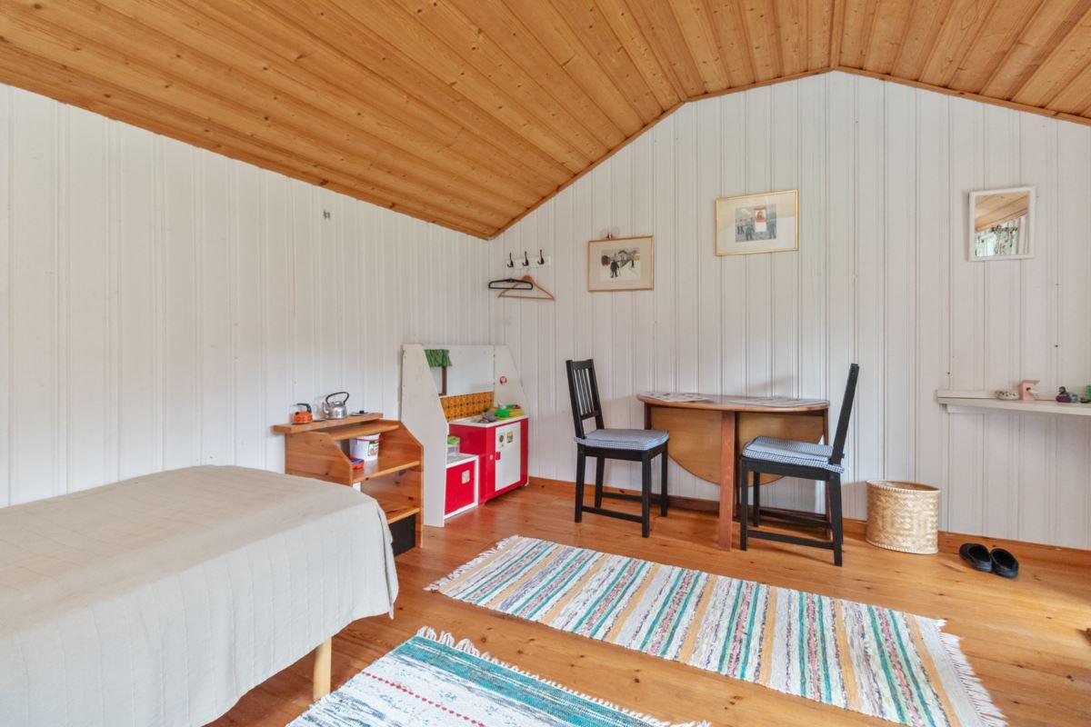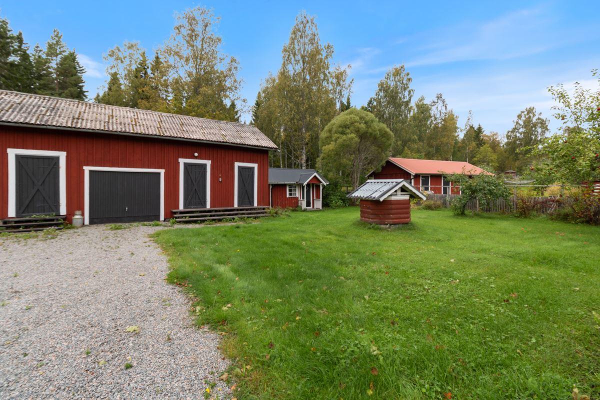 På tomten finns även en gäststuga med extra sovplatser – perfekt för besökare eller tonårsbarn – samt en stor förvaringsbyggnad med garage samt gott om utrymme för redskap, ved, hobby eller förvaring, och dessutom ett inrett gästrum.
