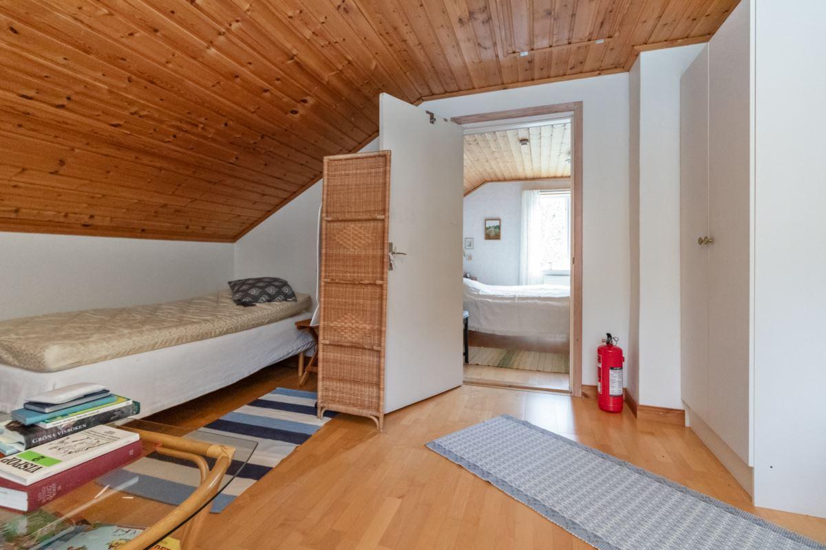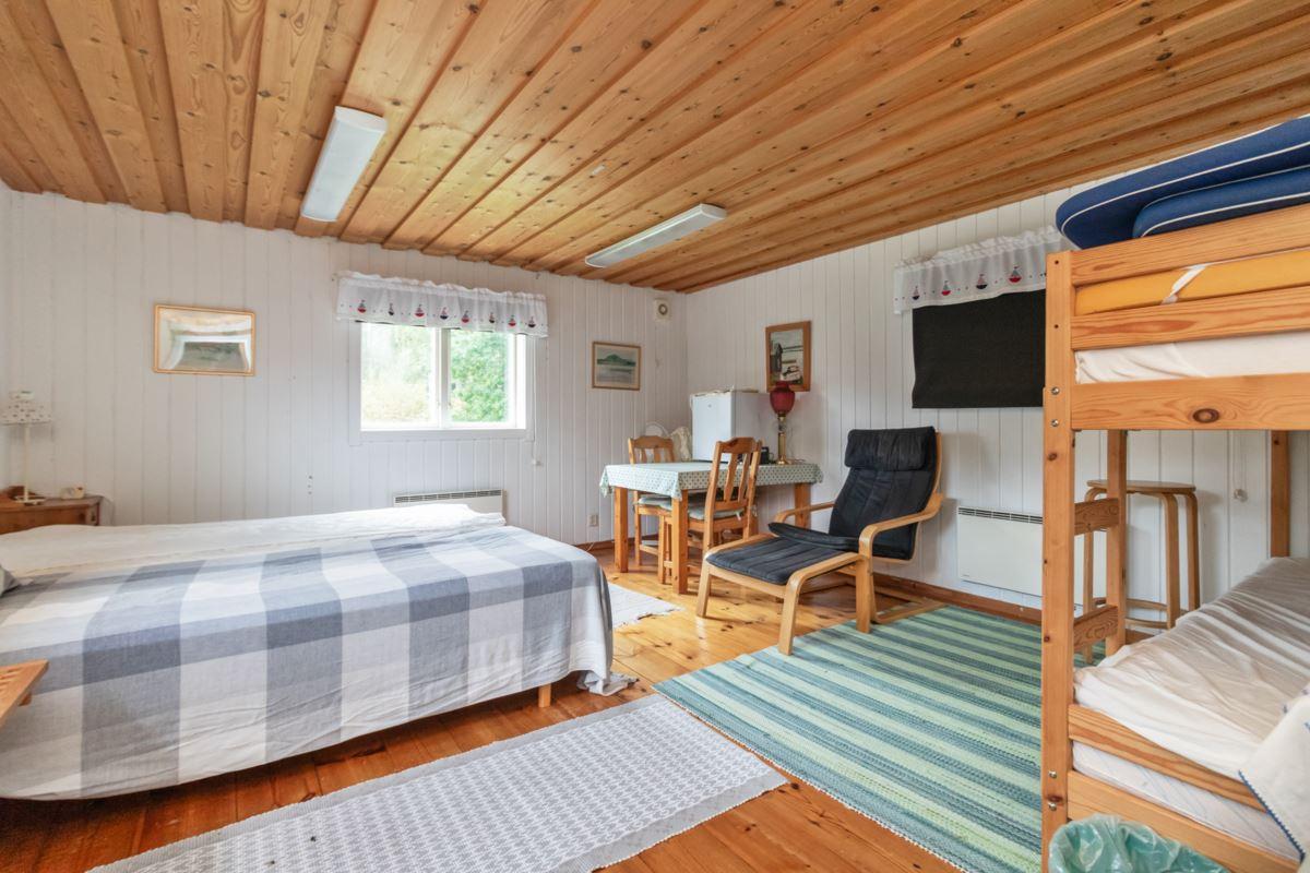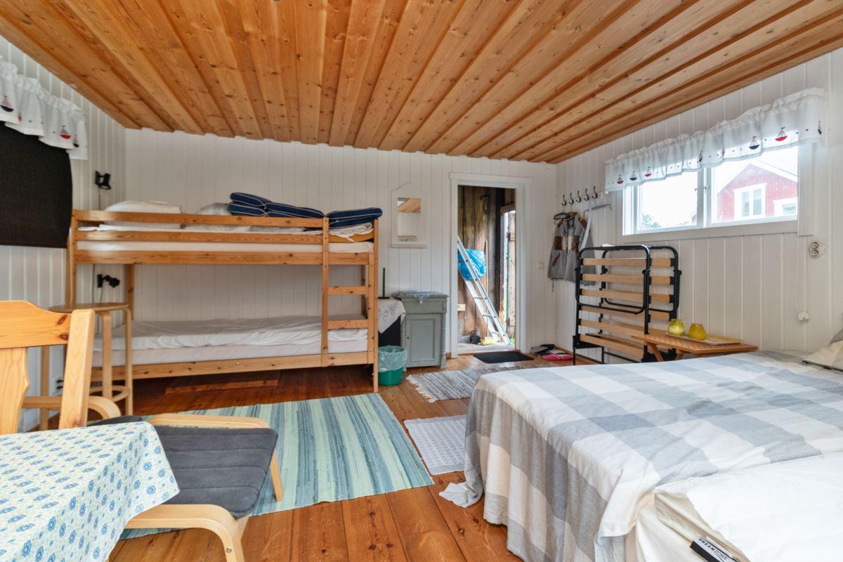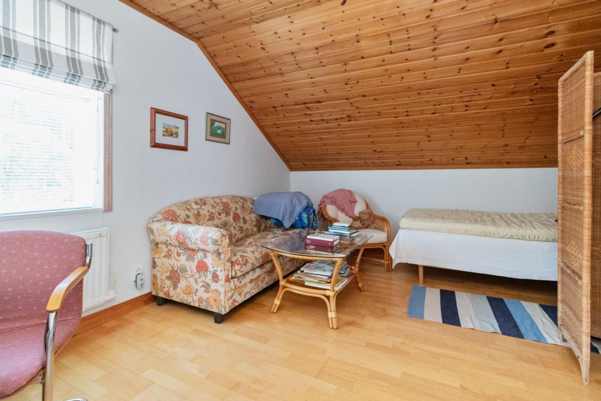 På tomten finns även en gäststuga med extra sovplatser – perfekt för besökare eller tonårsbarn – samt en stor förvaringsbyggnad med garage samt gott om utrymme för redskap, ved, hobby eller förvaring, och dessutom ett inrett gästrum.