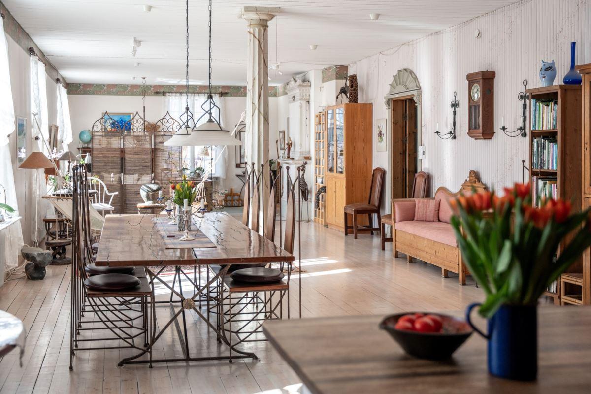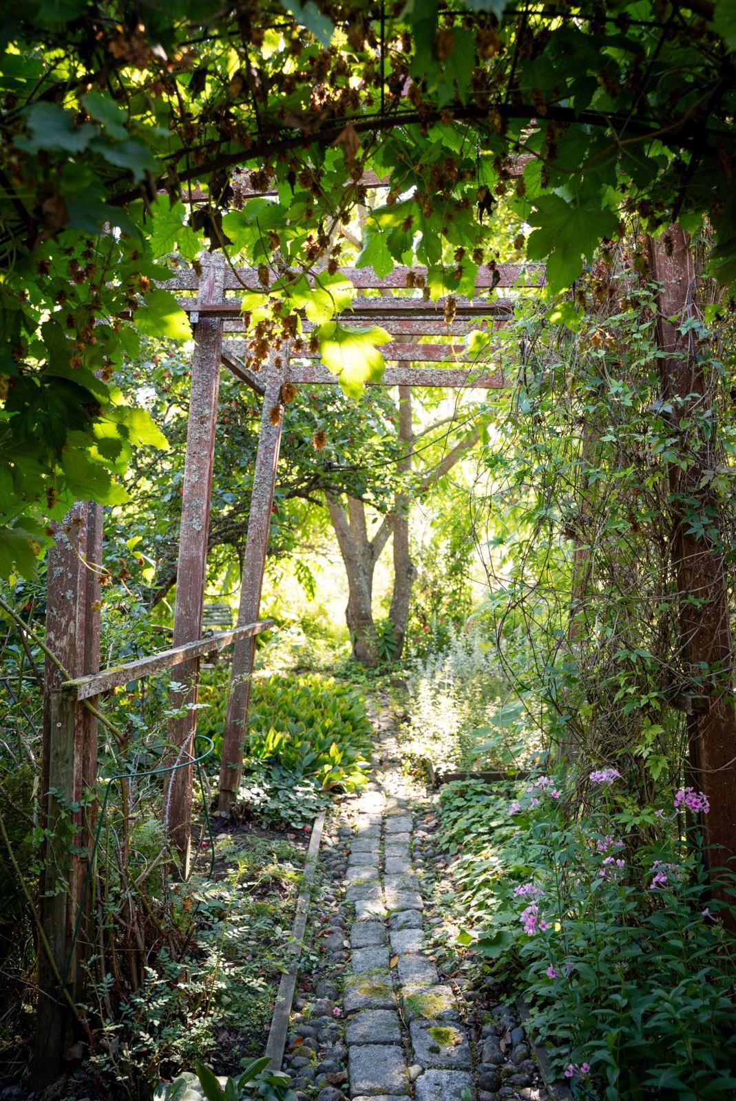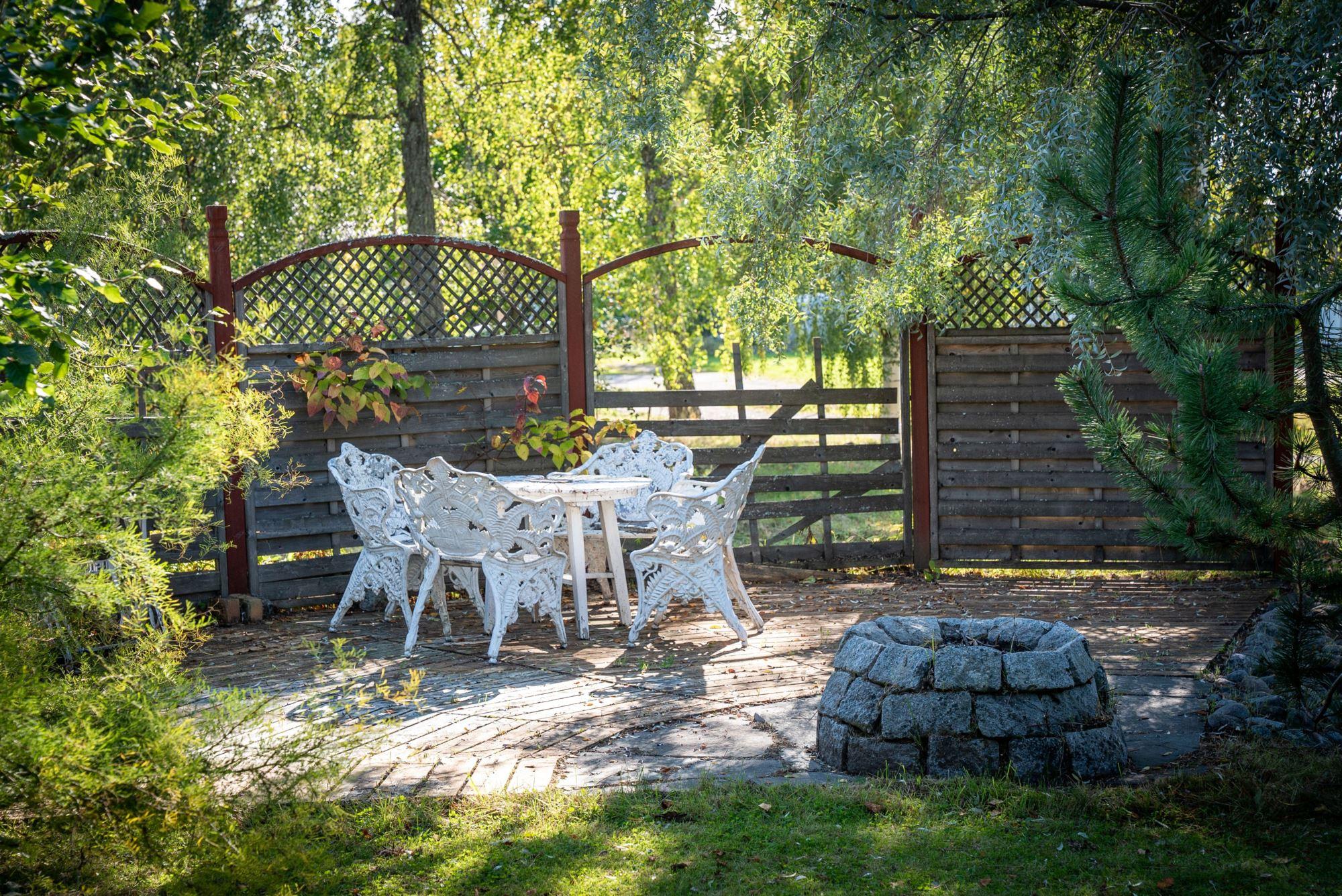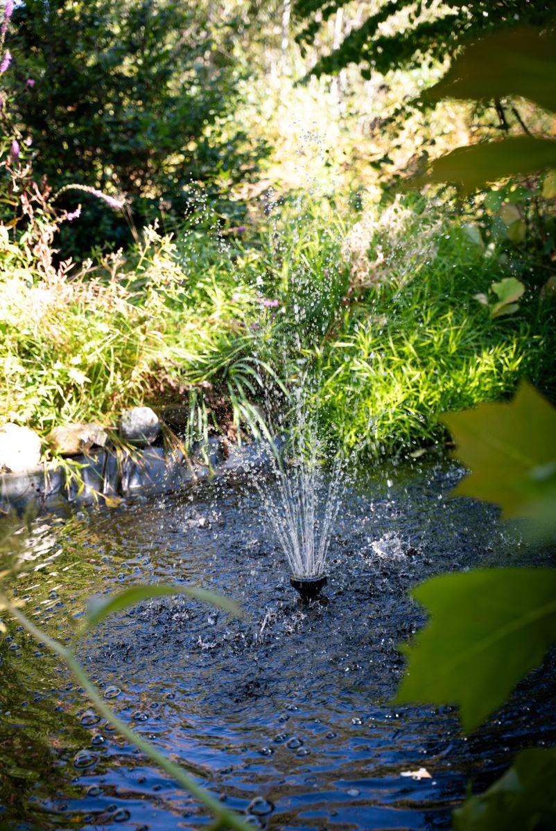 Den generösa tomten är en oas i sig – en lummig och rogivande miljö med flera uteplatser där du kan följa solens gång. Här finns dessutom en charmig damm med fontän och bro som ytterligare förstärker den sagolika känslan.