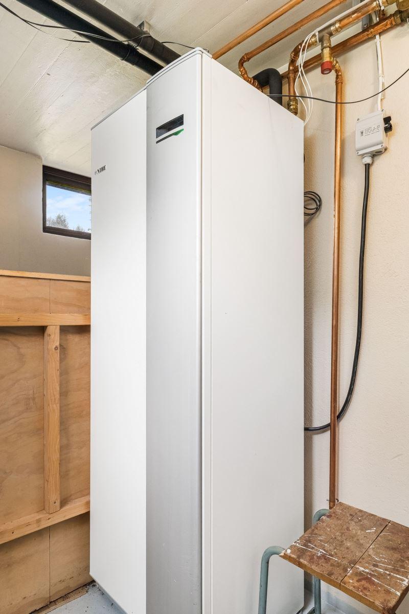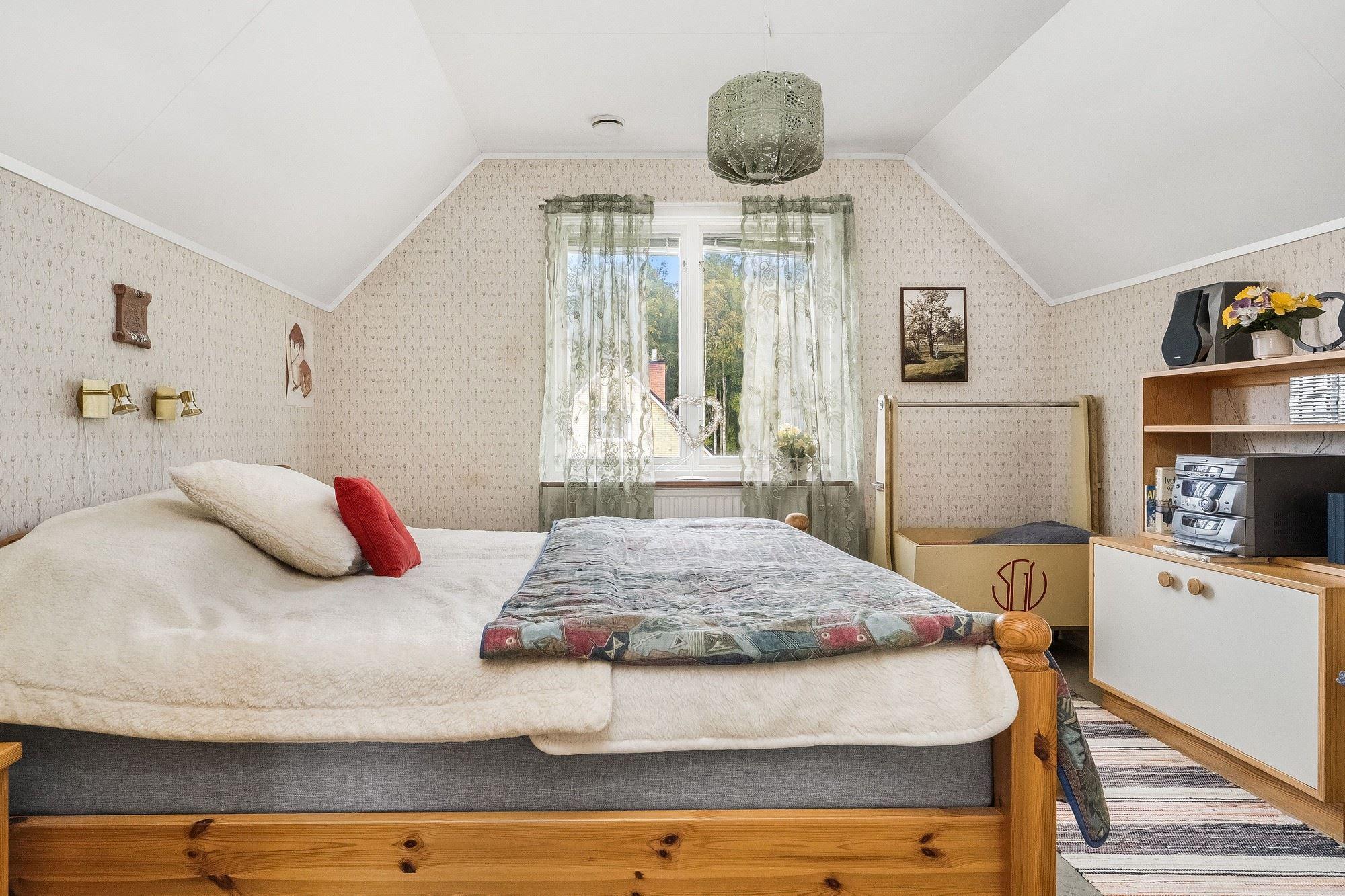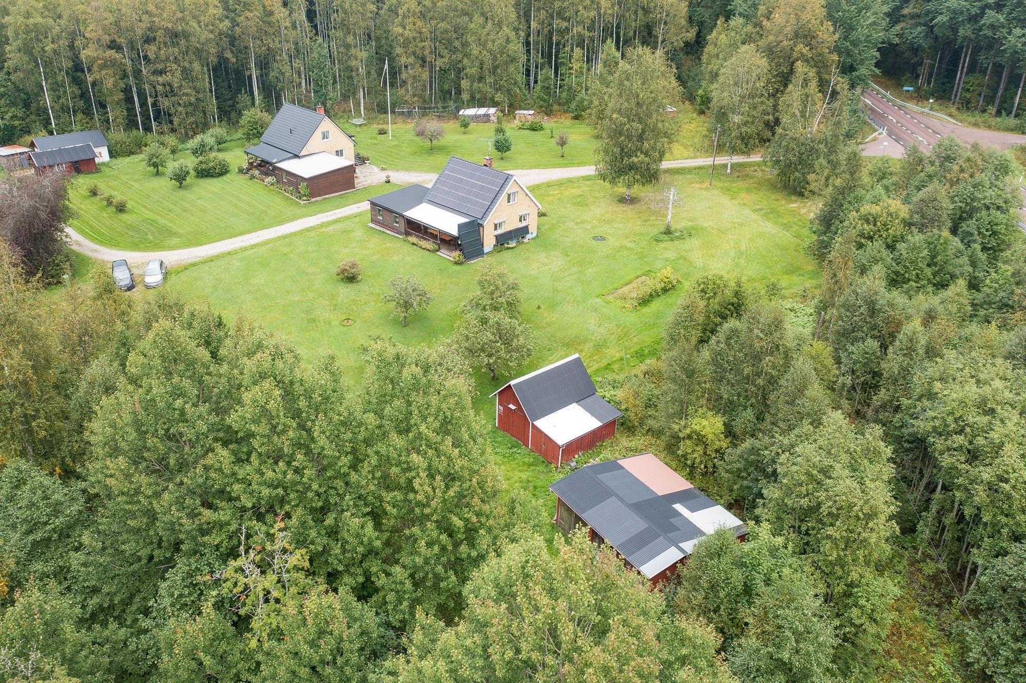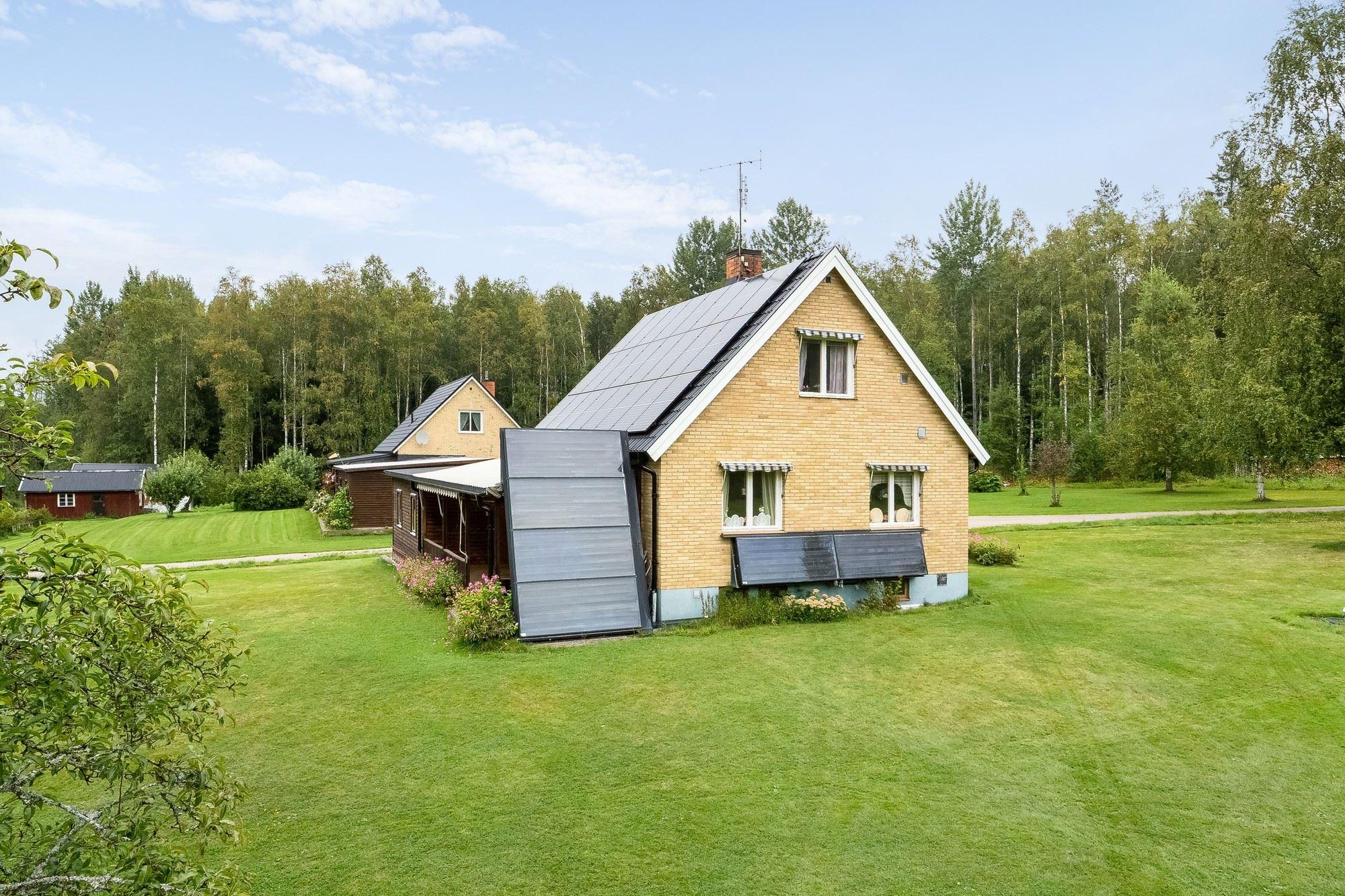 I bostadshuset finns på entréplan ett kök, badrum, vardagsrum med utgång till takbelagd altan samt ett sovrum. Övre plan rymmer två sovrum och i källaren finns förråd, gillestuga, duschrum och pannrum. Omlagt tak med betongpannor samt bergvärmeanläggning och solpaneler. På tomten finns ett uthus samt ett enklare traktorgarage. Trekammarbrunn med efterföljande markbädd samt vatten från djupborrad brunn.
