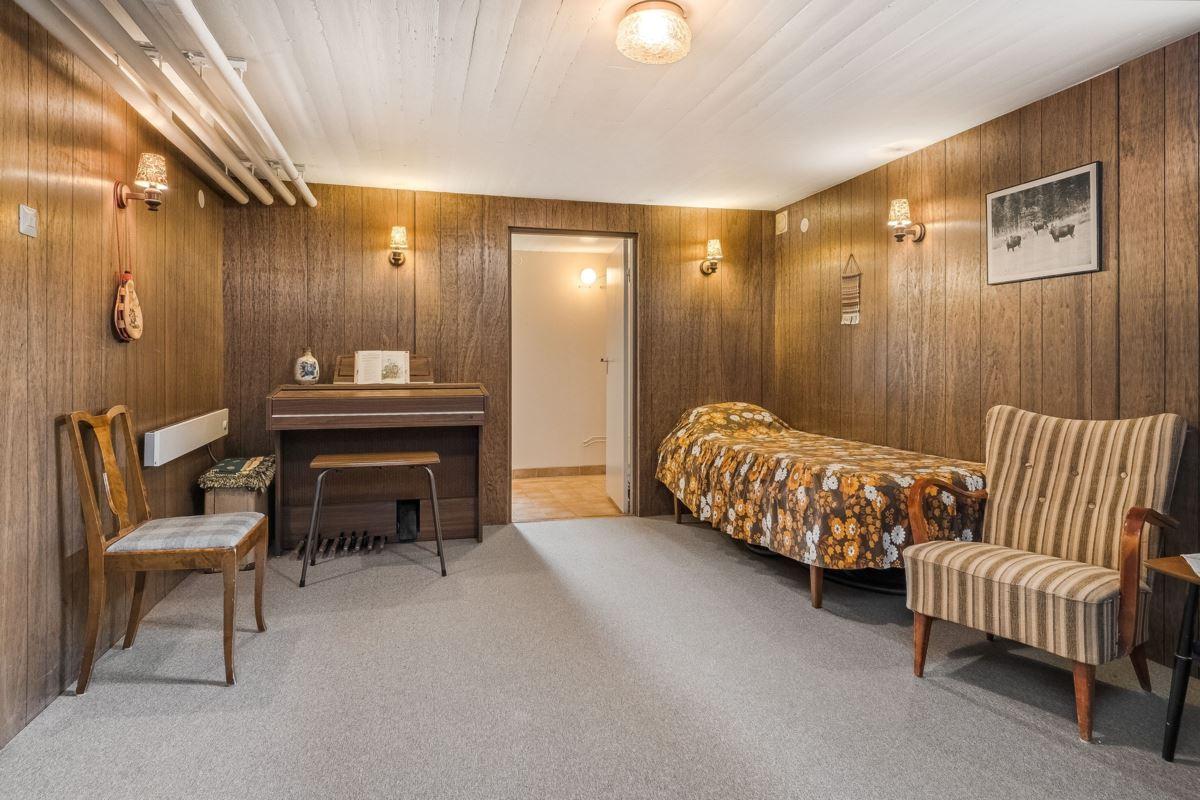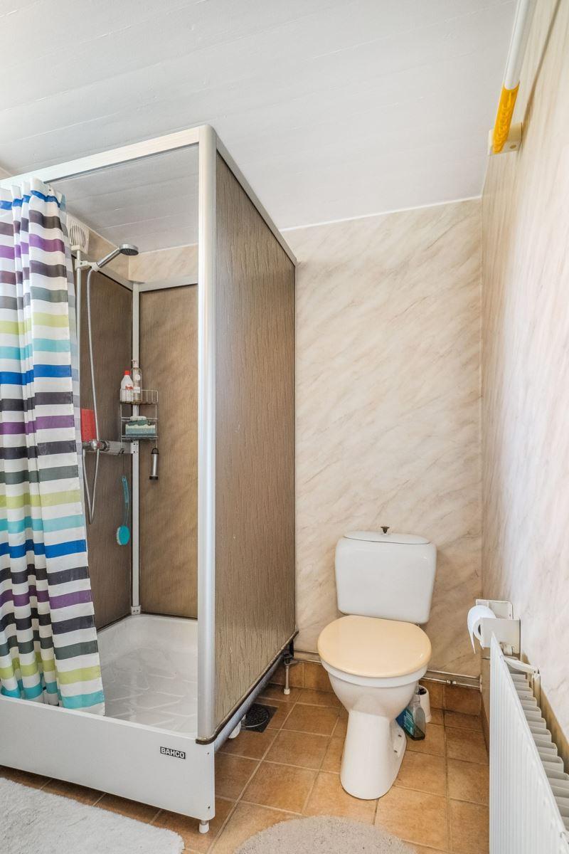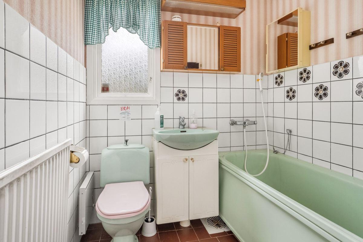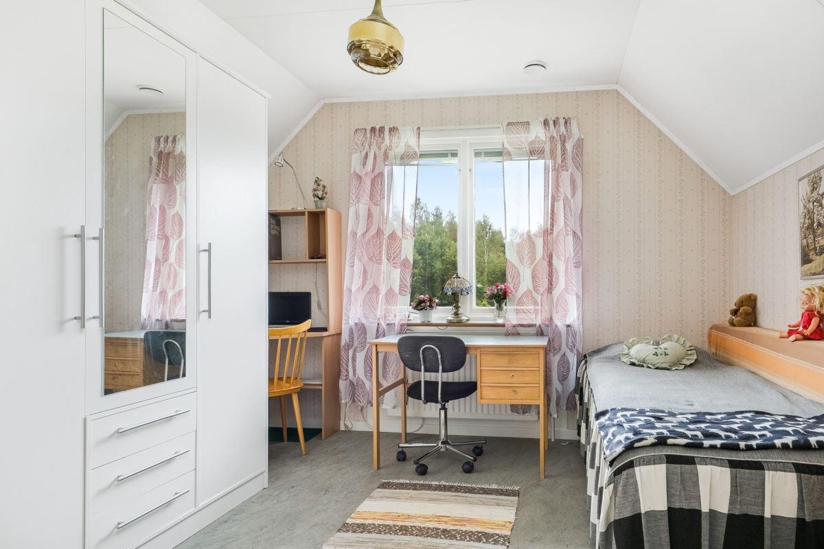 I bostadshuset finns på entréplan ett kök, badrum, vardagsrum med utgång till takbelagd altan samt ett sovrum. Övre plan rymmer två sovrum och i källaren finns förråd, gillestuga, duschrum och pannrum. Omlagt tak med betongpannor samt bergvärmeanläggning och solpaneler. På tomten finns ett uthus samt ett enklare traktorgarage. Trekammarbrunn med efterföljande markbädd samt vatten från djupborrad brunn.