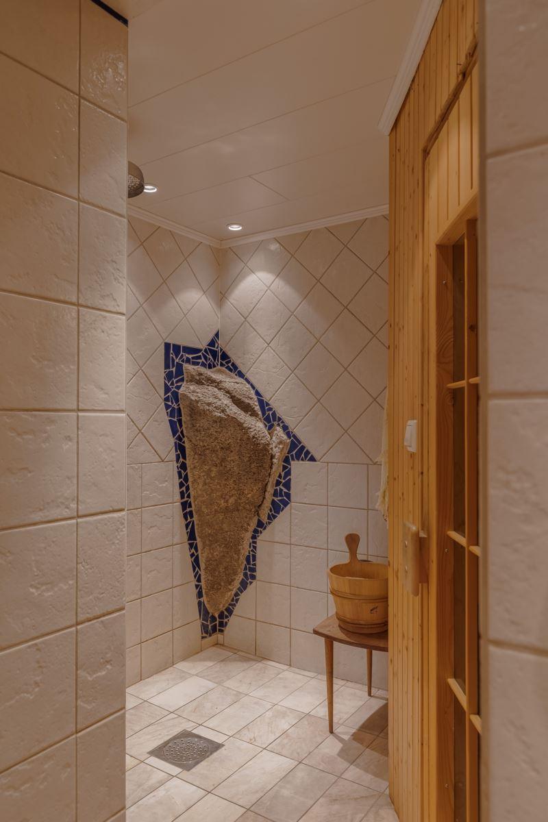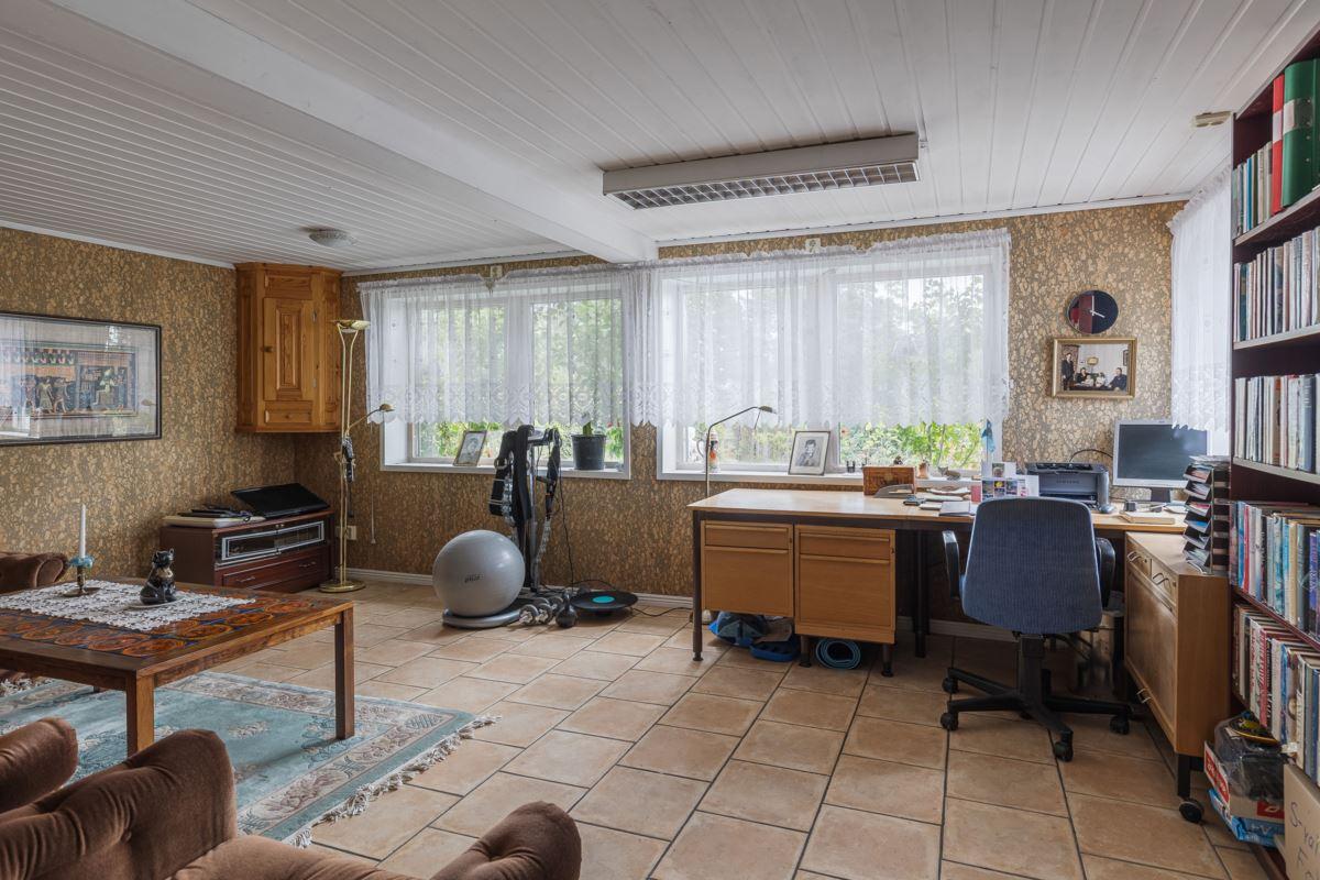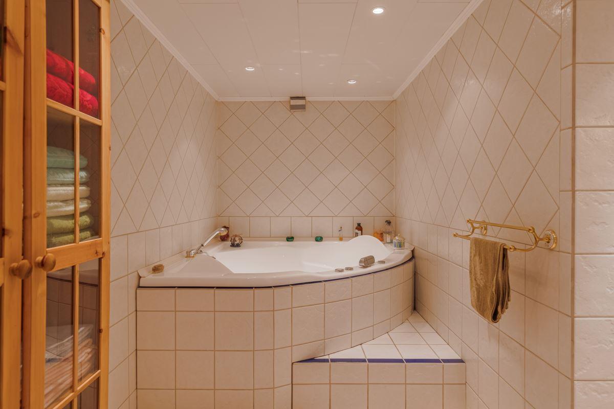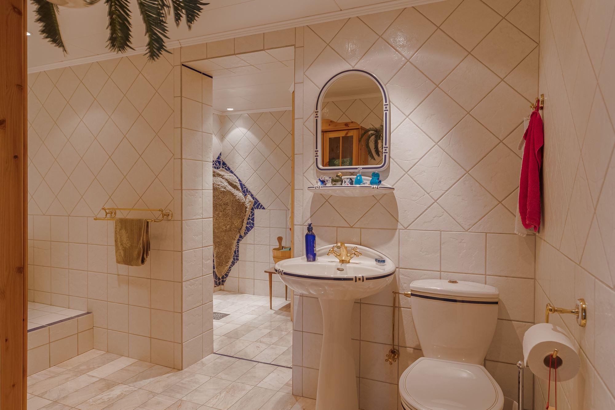 • SouterrängplanEntréhall med klinkergolv, plats för avhängning och trapp till övre plan. Stort sovrum med plats för dubbelsäng. Kontorsrum/allrum med klinkergolv. Helkaklat badrum med hörnbubbelbadkar, duschrum, bastu samt wc och tvättställ. Vidare finns pannrum och förrådsrum med egen groventré.