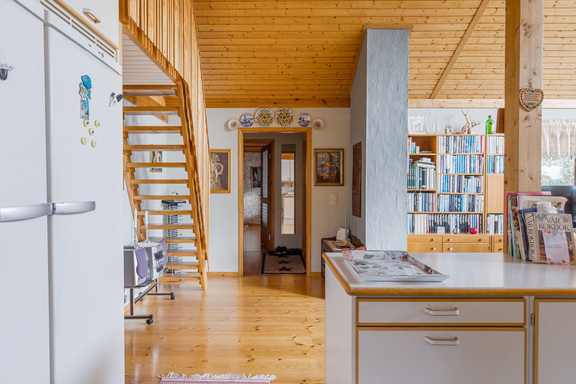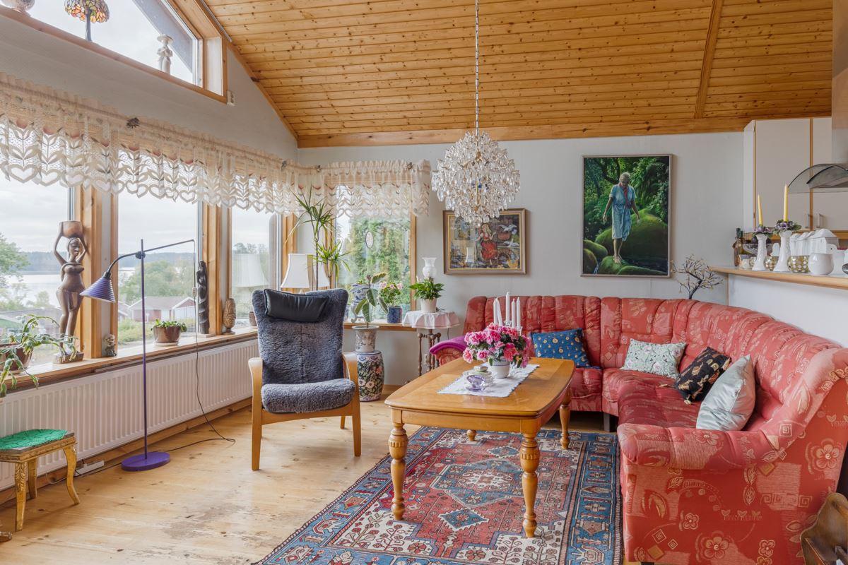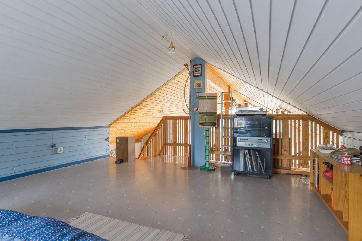 • BostadsplanEntréhall med rymlig innanförliggande klädkammare. Stort kök/allrum med gediget furugolv, tak upp till nock och panoramafönster med fin utsikt mot Mälaren. Köket har gott om förvaring och generösa bänkytor samt är utrustat med glasspishäll, frihängande kolfilterfläkt, inbyggnadsugn, inbyggd mikro, kyl-/frysskåp samt diskmaskin. Två sovrum, varav ett större med garderobsvägg och plats för dubbelsäng, samt ett sovloft med trapp från allrummet. Duschrum med duschkabin, wc och tvättställ. I ursprungsdelen (den äldre huskroppen) finns vardagsrum, sovloft, förrådsrum och tvättstuga med wc. Tvättstugan är utrustad med tvättpelare samt rostfri tvättho.