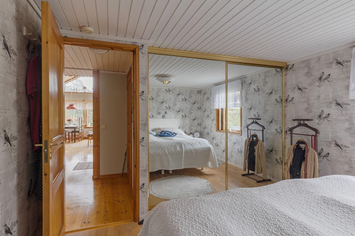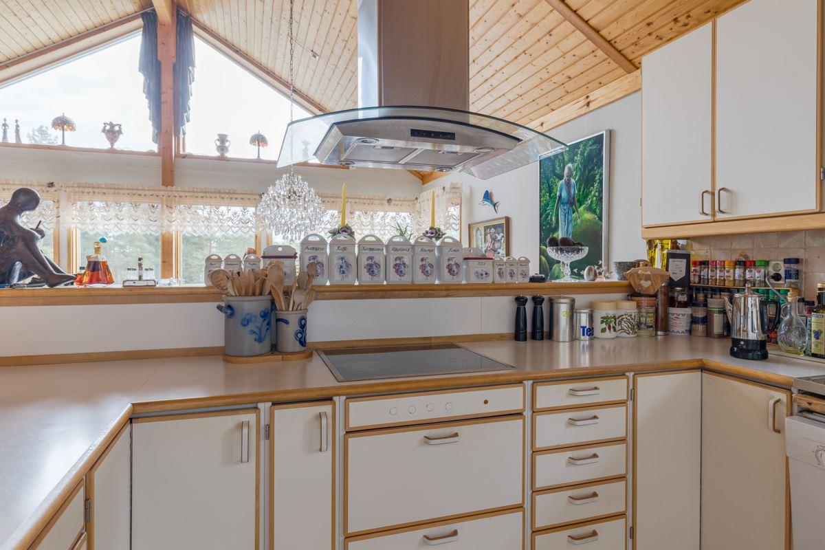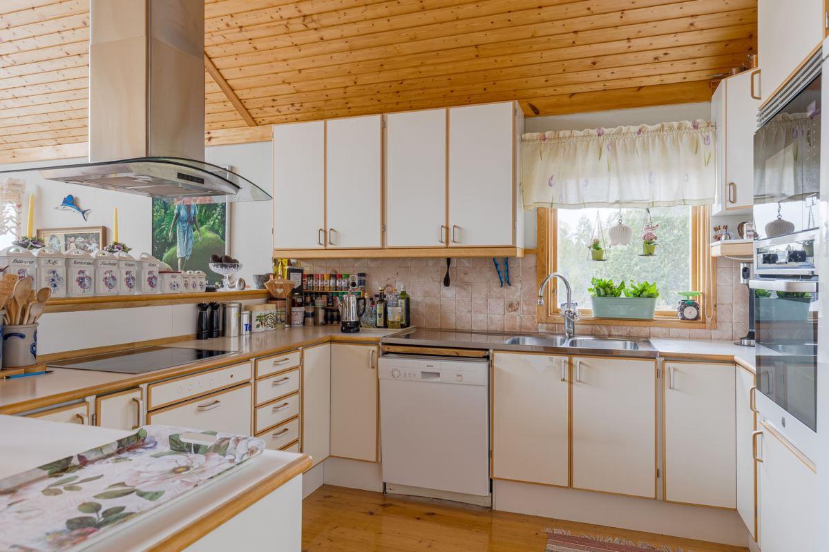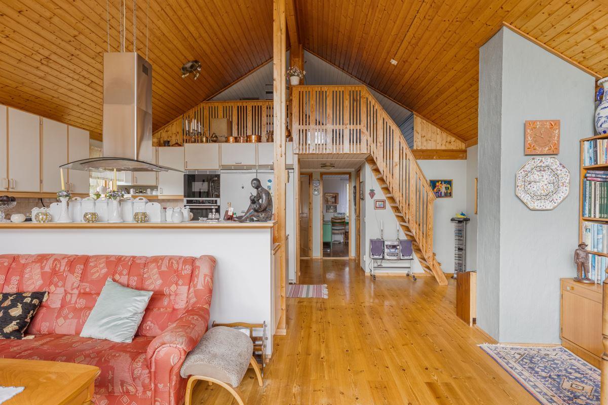 • BostadsplanEntréhall med rymlig innanförliggande klädkammare. Stort kök/allrum med gediget furugolv, tak upp till nock och panoramafönster med fin utsikt mot Mälaren. Köket har gott om förvaring och generösa bänkytor samt är utrustat med glasspishäll, frihängande kolfilterfläkt, inbyggnadsugn, inbyggd mikro, kyl-/frysskåp samt diskmaskin. Två sovrum, varav ett större med garderobsvägg och plats för dubbelsäng, samt ett sovloft med trapp från allrummet. Duschrum med duschkabin, wc och tvättställ. I ursprungsdelen (den äldre huskroppen) finns vardagsrum, sovloft, förrådsrum och tvättstuga med wc. Tvättstugan är utrustad med tvättpelare samt rostfri tvättho.