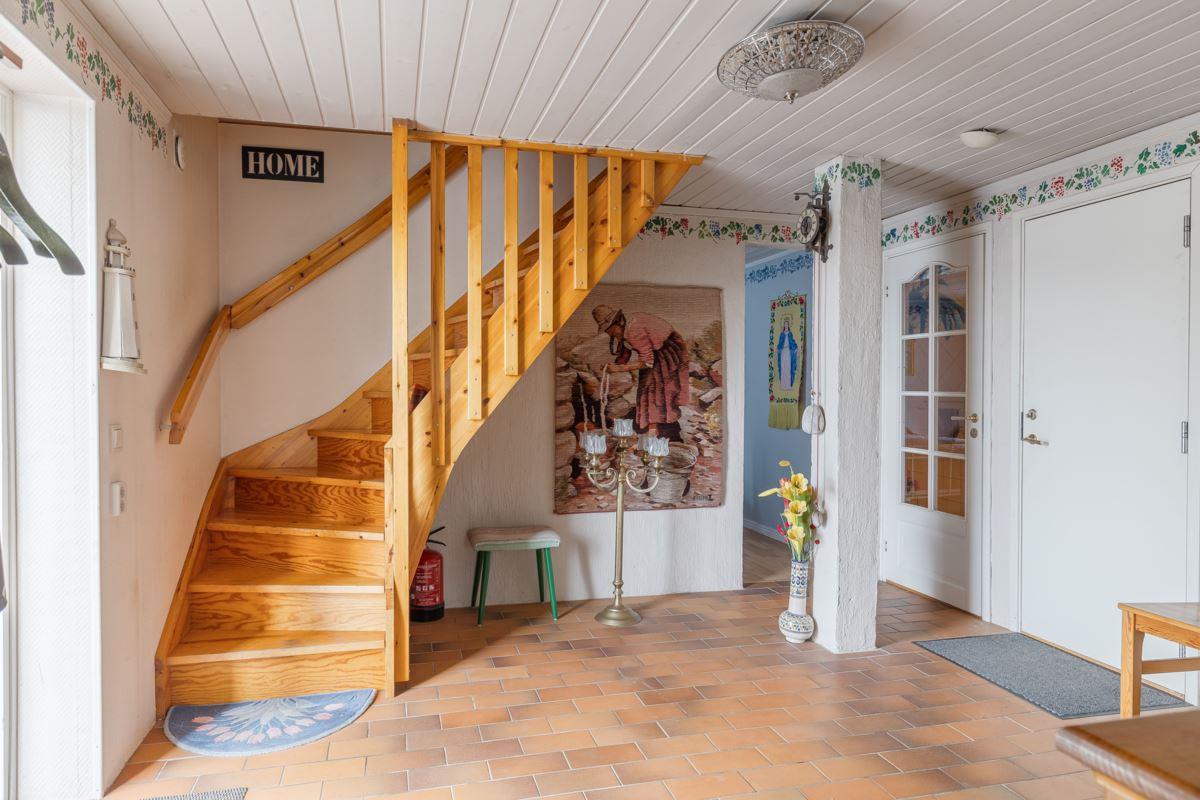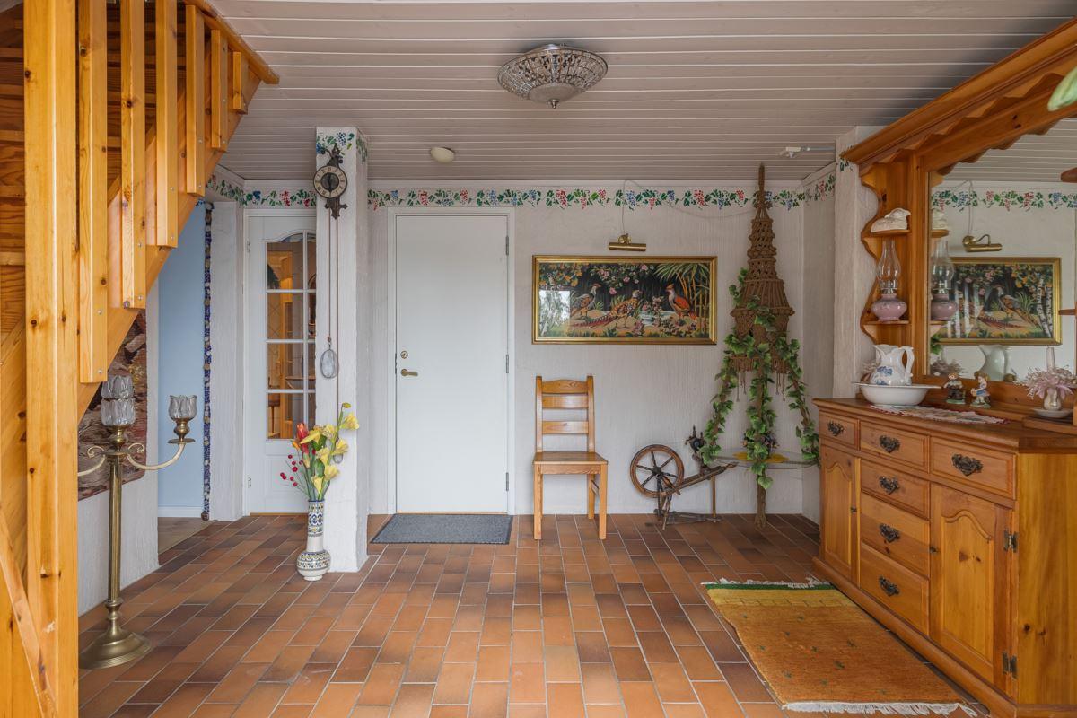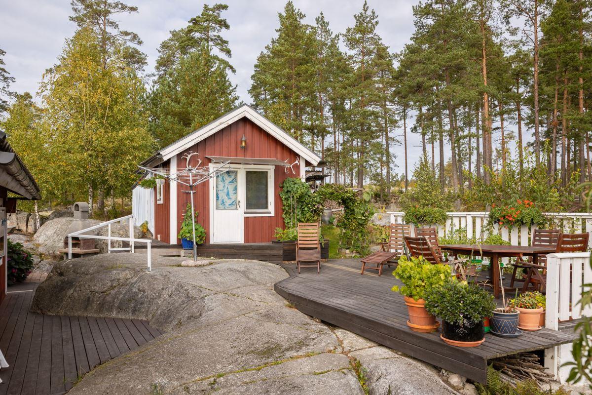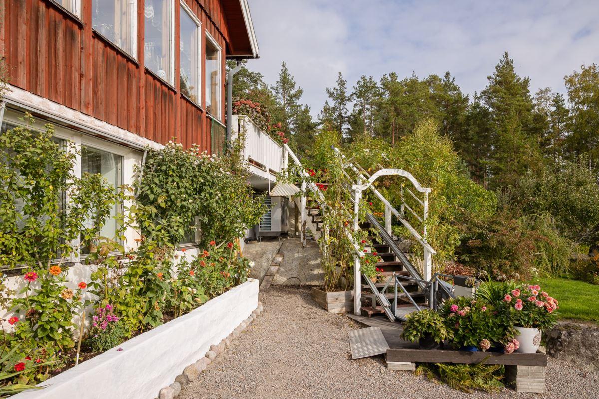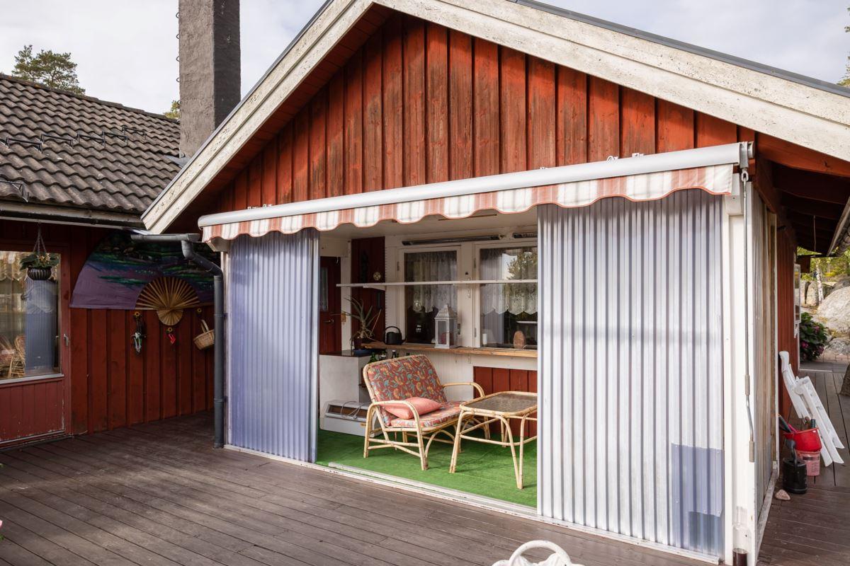 • TomtEnligt fastighetsregistret uppgår tomtens storlek till 1.101 kvm. Lättskött och trivsam sluttningstomt med berget i dagen på flera ställen. Tomten är en hörntomt och angränsar endast en bebodd grannfastighet. På tomten finns gräsytor, många perenna växter, fruktträd, en trevlig fiskdamm samt grusad uppfartsväg. Invid bostadsbyggnaden finns en väl tilltagen altan, delvis under tak.