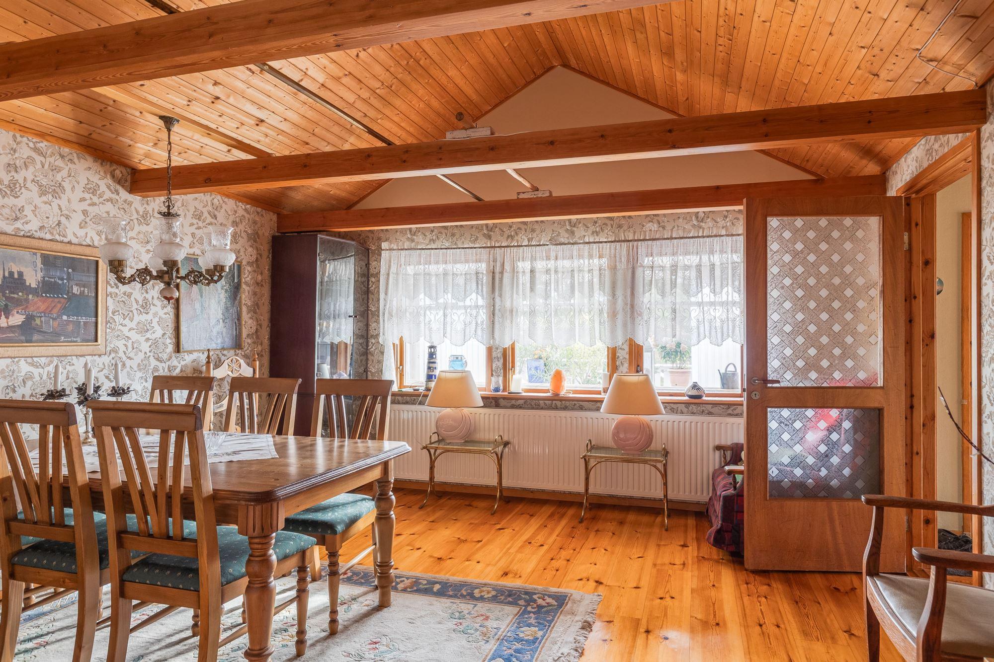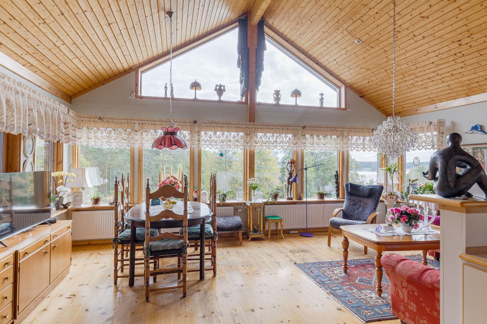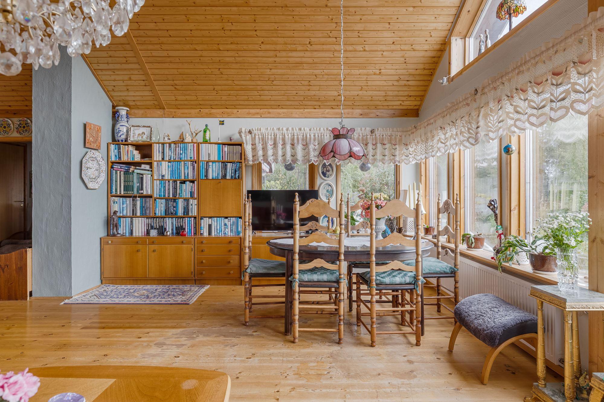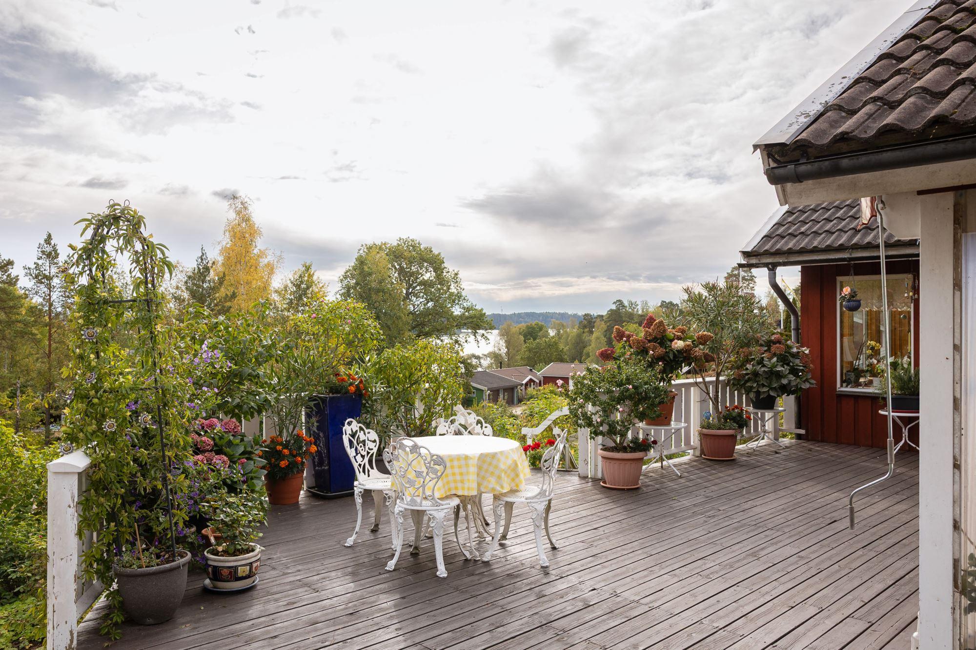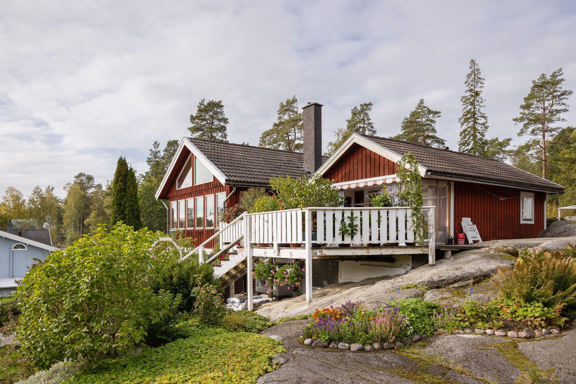 Belägen i fridfullt villaområde ca 6 mil från Stockholm. Hörntomt med högt läge och vacker utsikt mot Mälaren och naturen inpå knuten. Bostaden har 2 plan i souterräng med 5 r.o.k. och 178 kvm boarea. I området finns bl.a. gemensam badplats samt småbåtshamn.