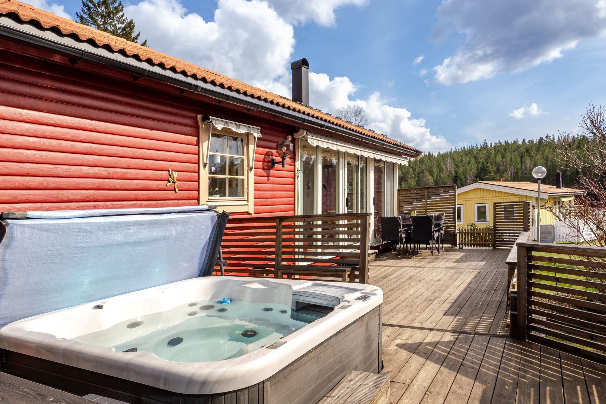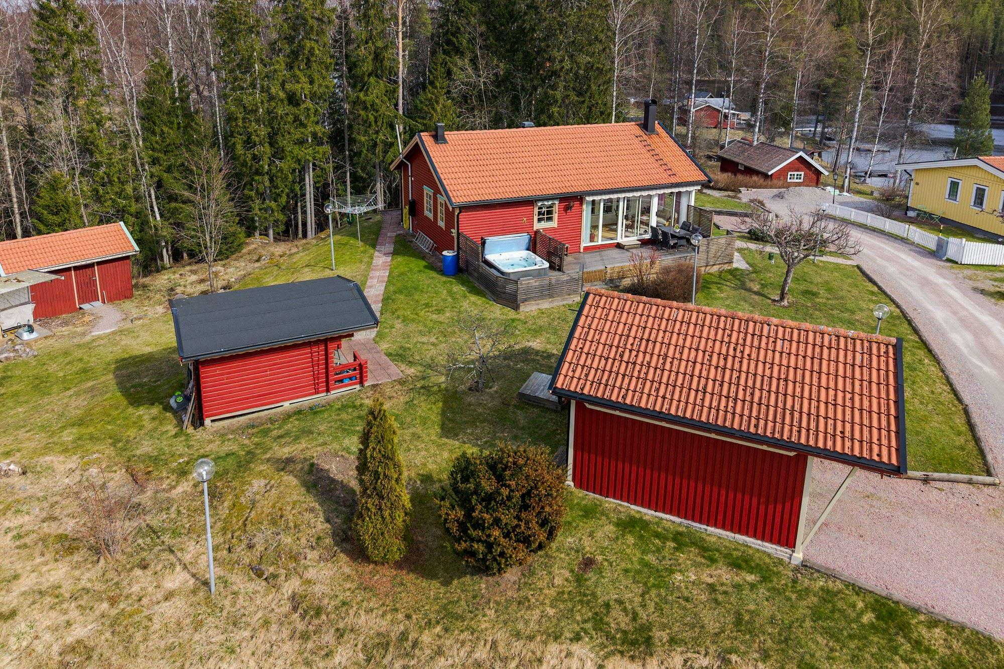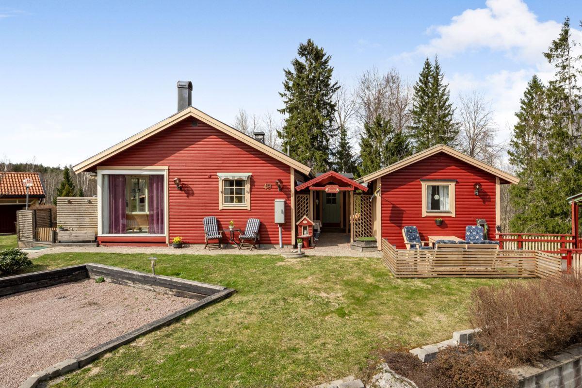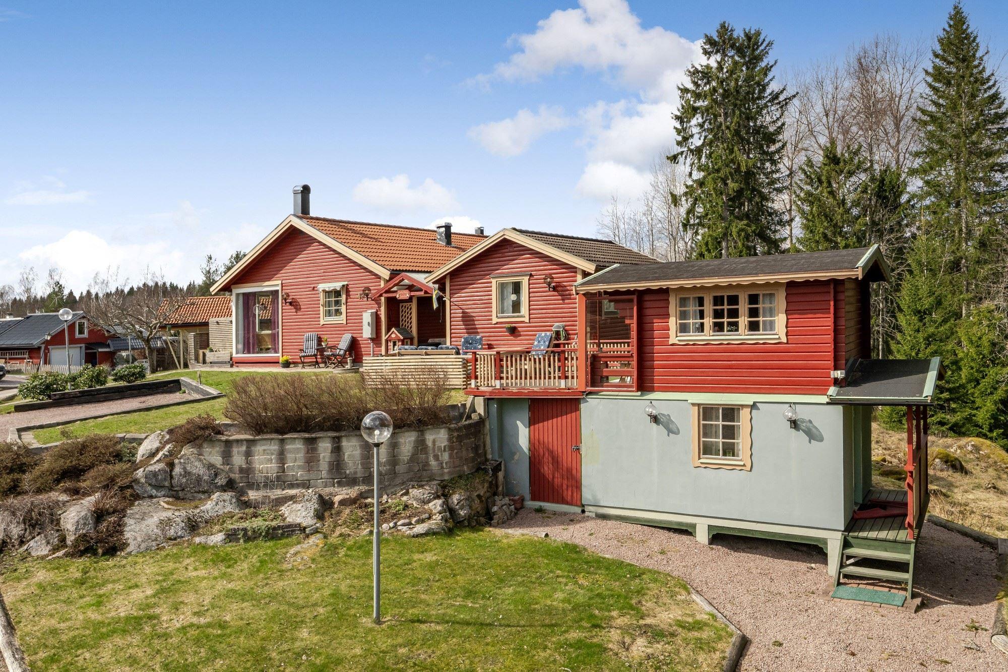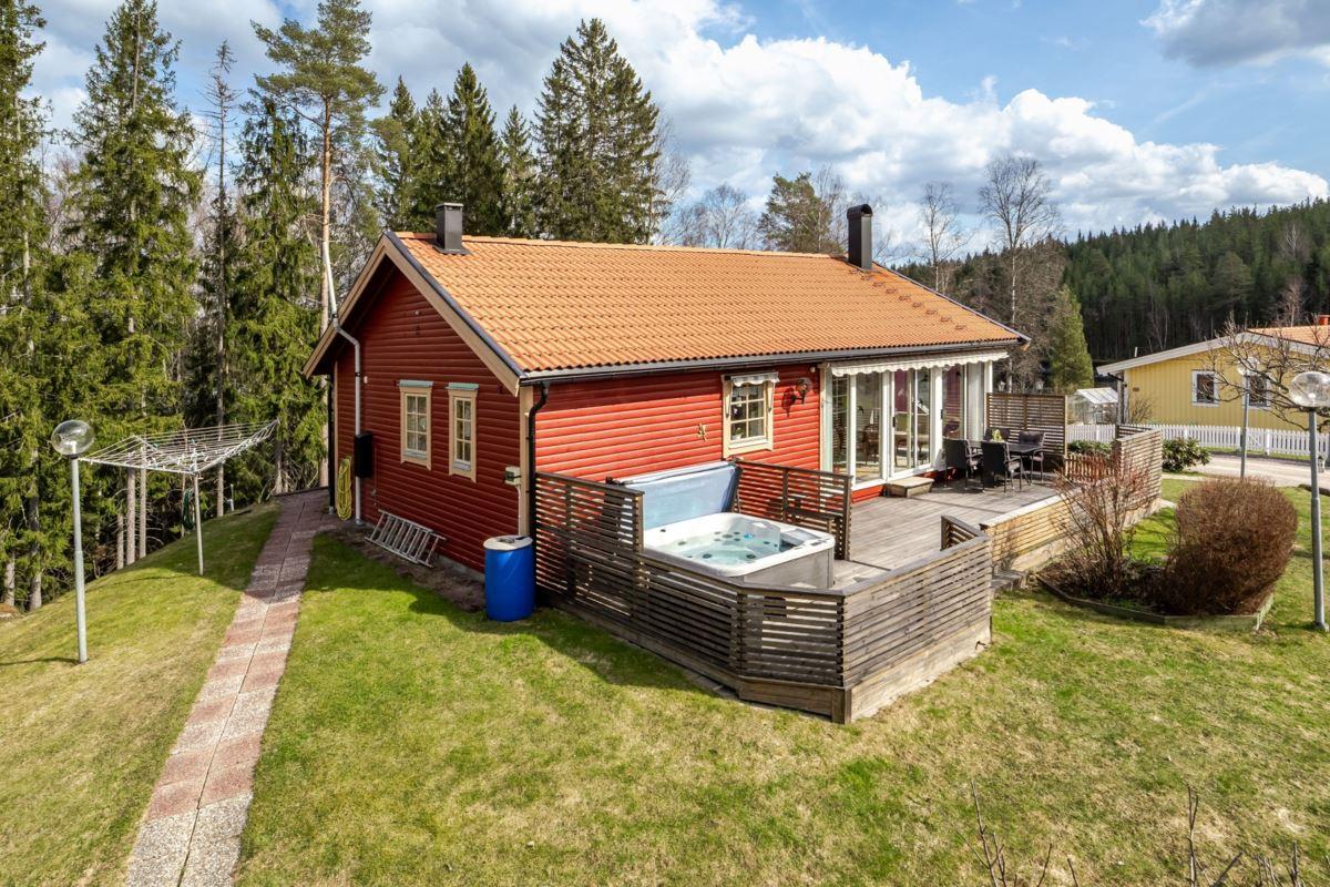 Bostaden erbjuder 3 rok samt en isolerad inglasad altan med vidbyggd terrass där ett härligt spabad finns. Ljust och fint Marbodal-kök, vardagsrum med murad öppen spis samt kassett, duschrum och två sovrum. Från vardagsrummet nås den inglasade altanen. Fiber finns indraget i bostaden. Utöver bostadshuset finns två gäststugor, tvättstuga, vedbod, jordkällare och en carport samt ett dubbelgarage.