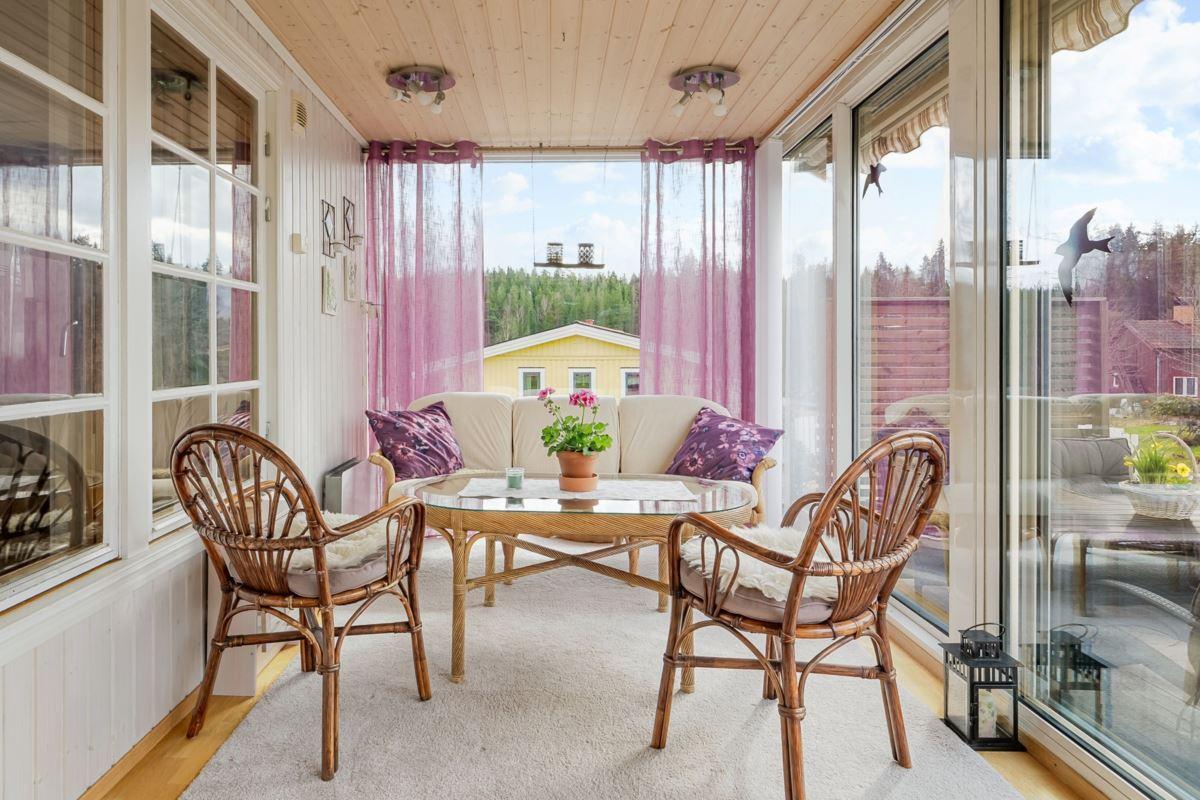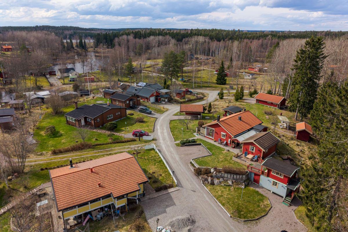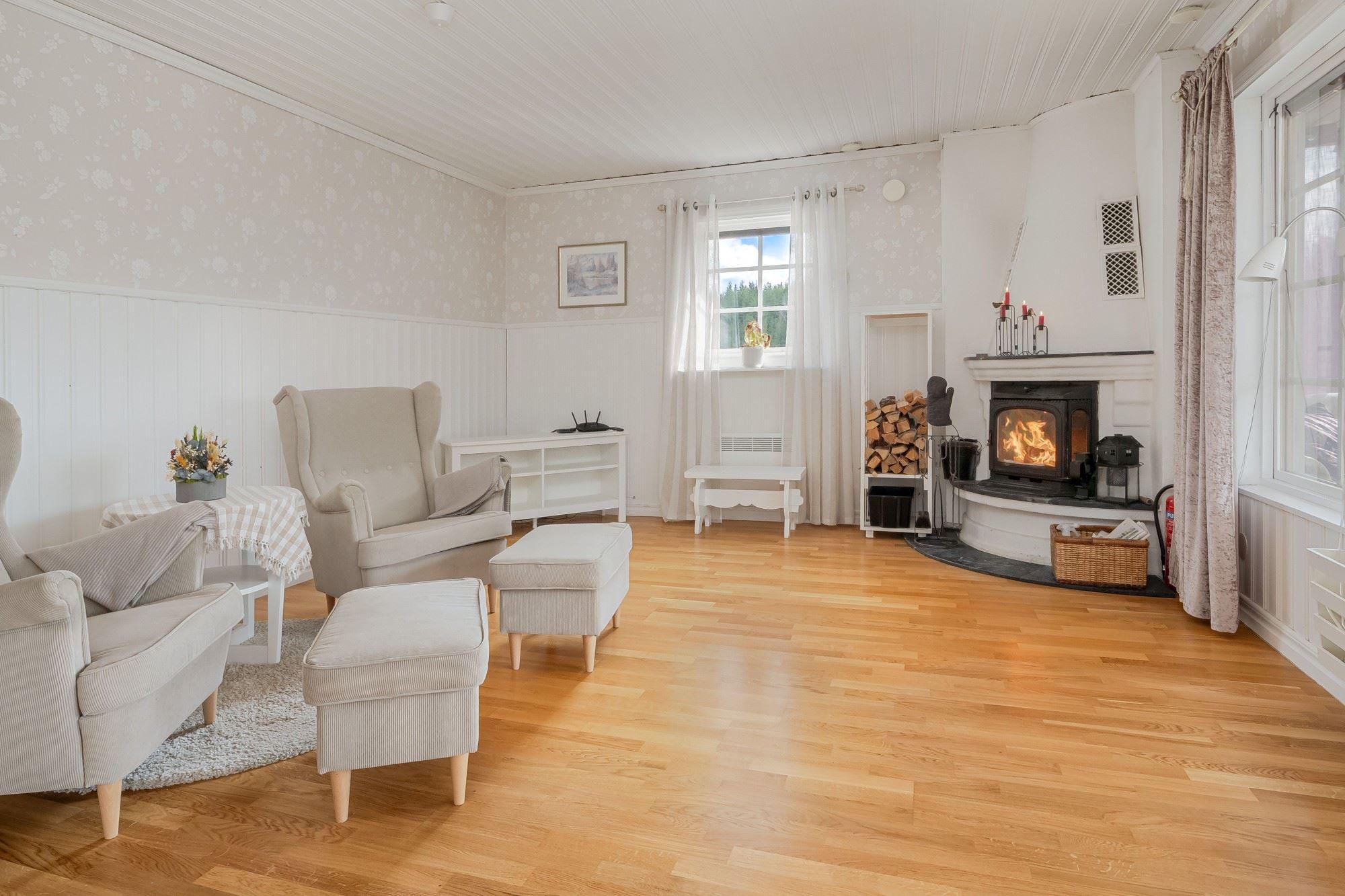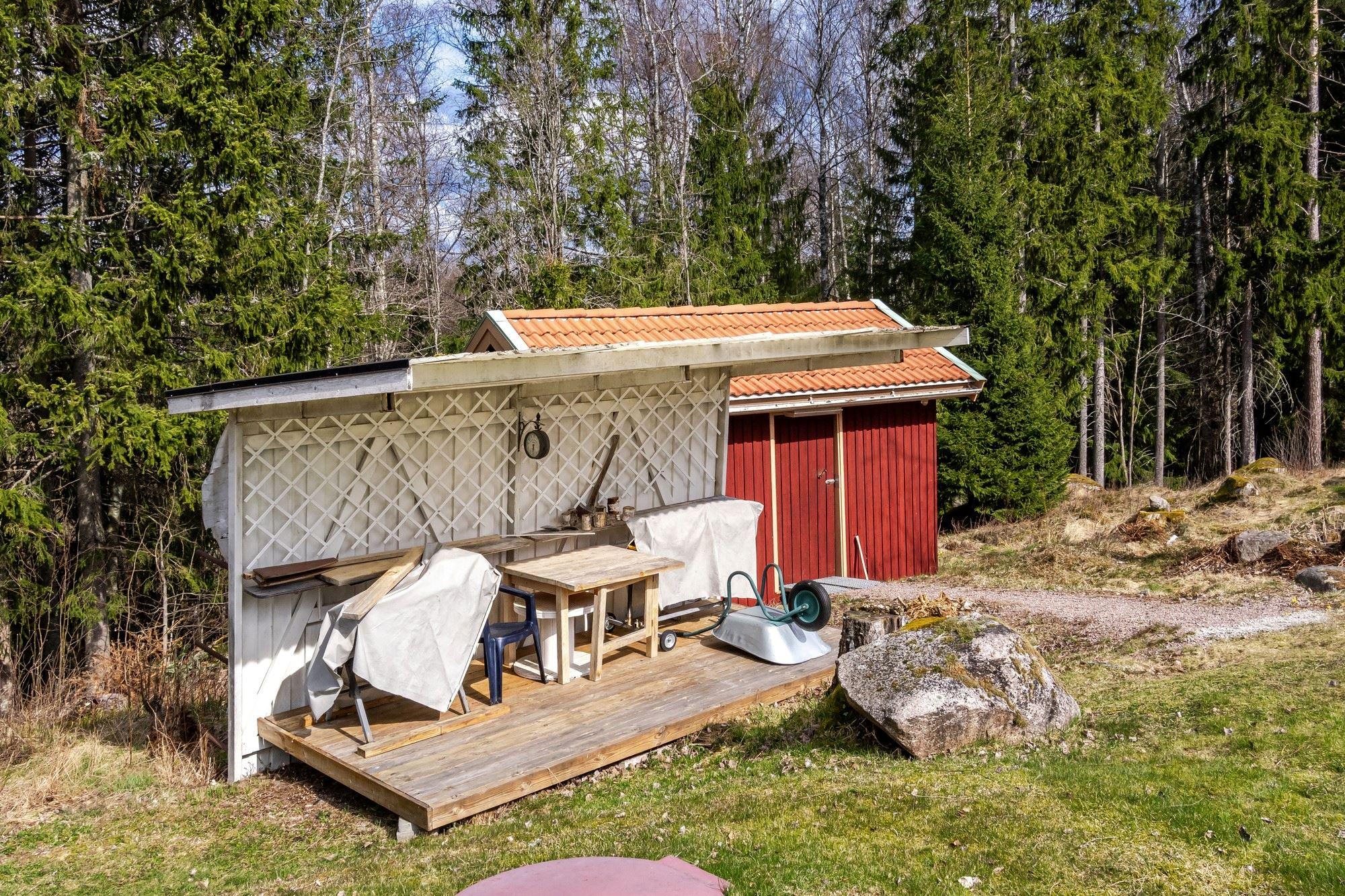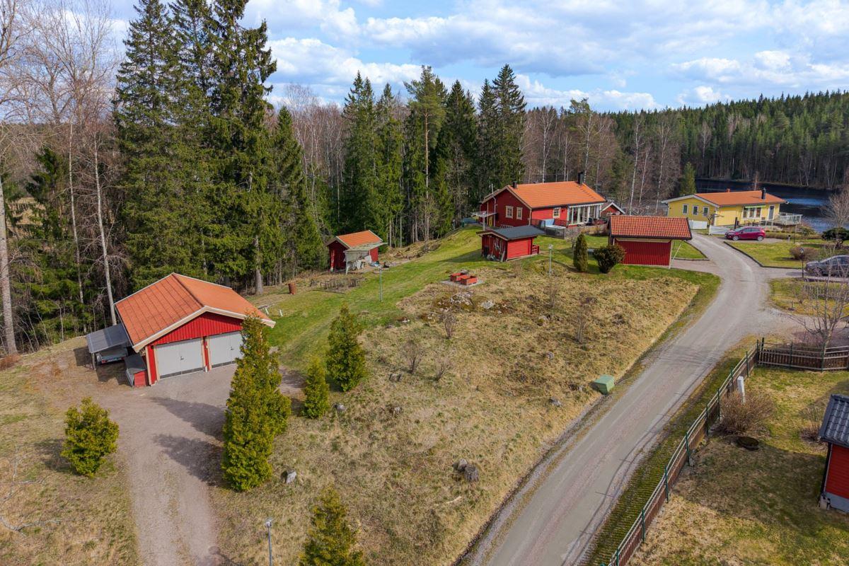 Bostaden erbjuder 3 rok samt en isolerad inglasad altan med vidbyggd terrass där ett härligt spabad finns. Ljust och fint Marbodal-kök, vardagsrum med murad öppen spis samt kassett, duschrum och två sovrum. Från vardagsrummet nås den inglasade altanen. Fiber finns indraget i bostaden. Utöver bostadshuset finns två gäststugor, tvättstuga, vedbod, jordkällare och en carport samt ett dubbelgarage.