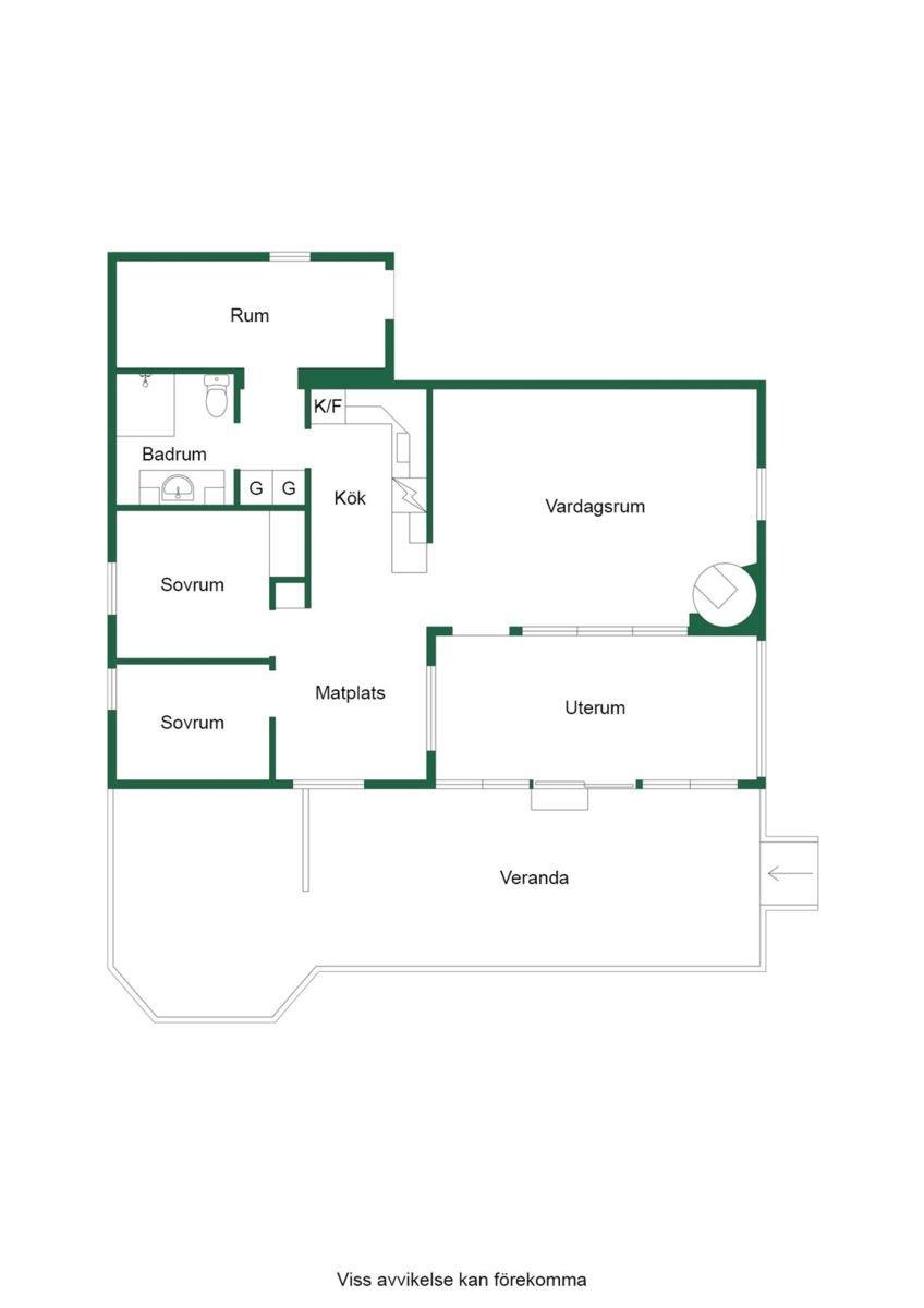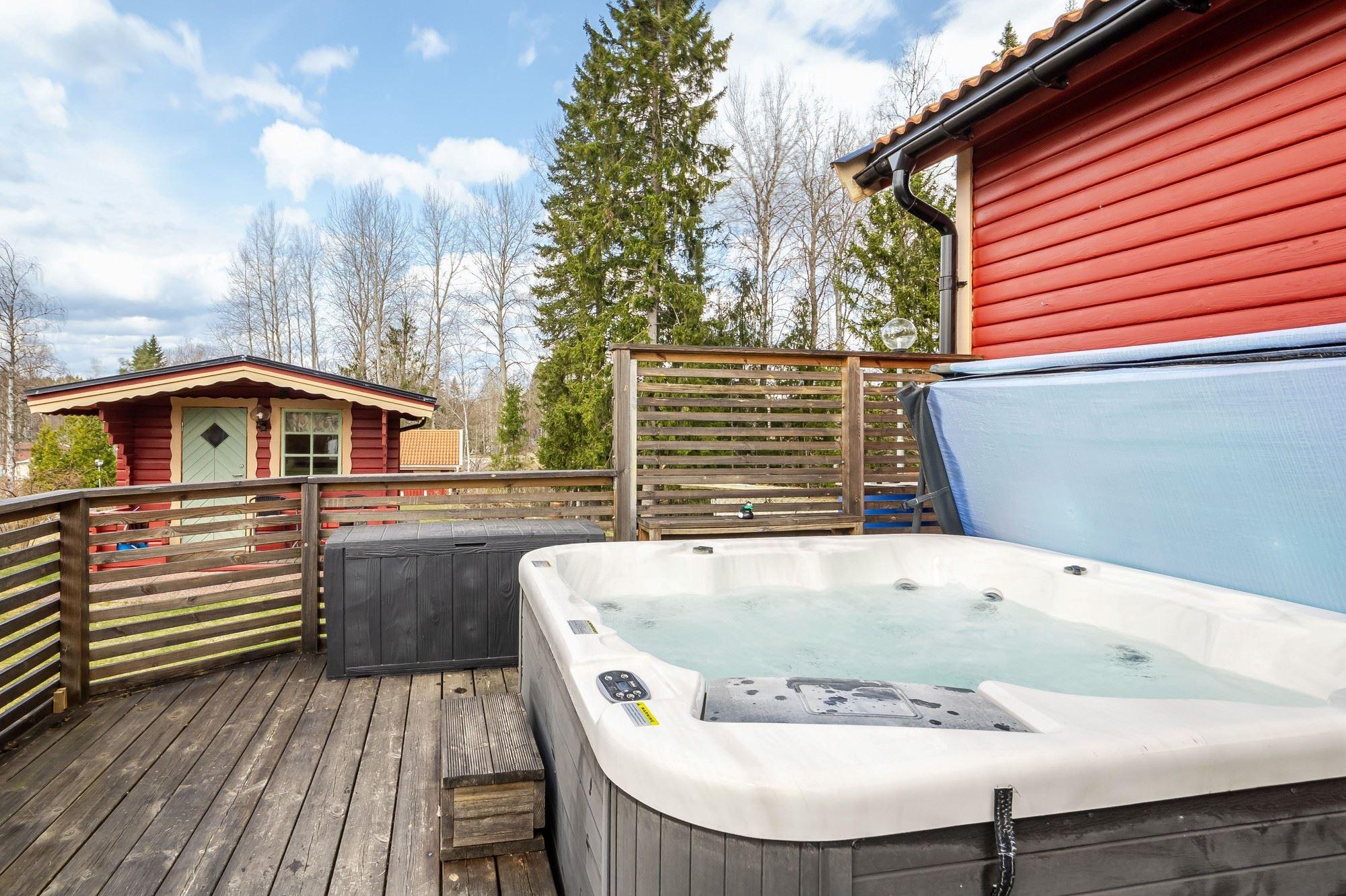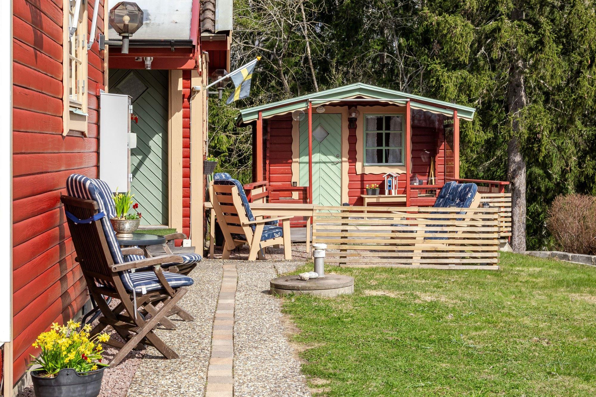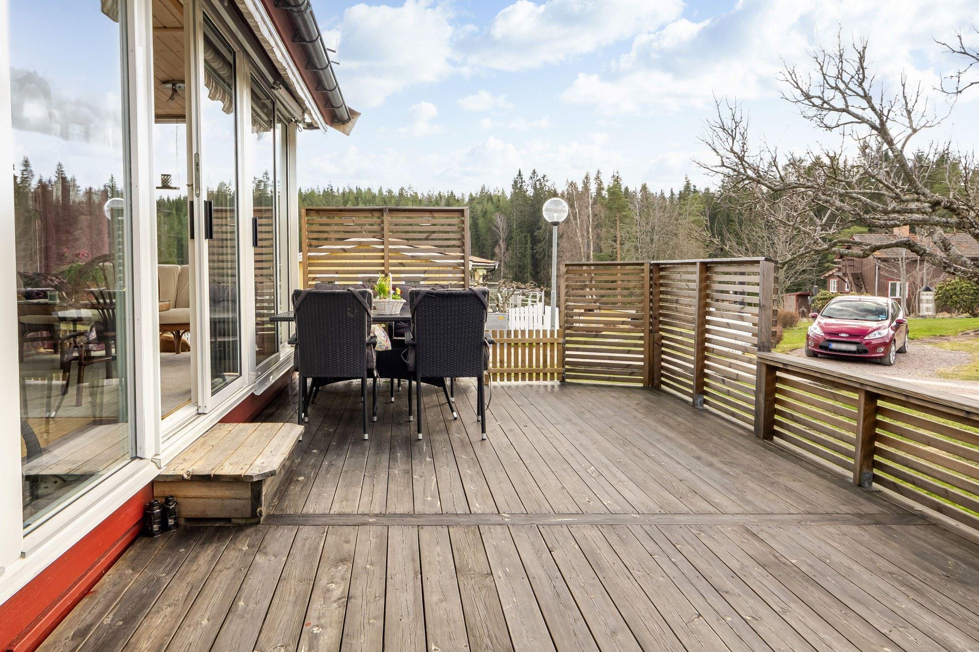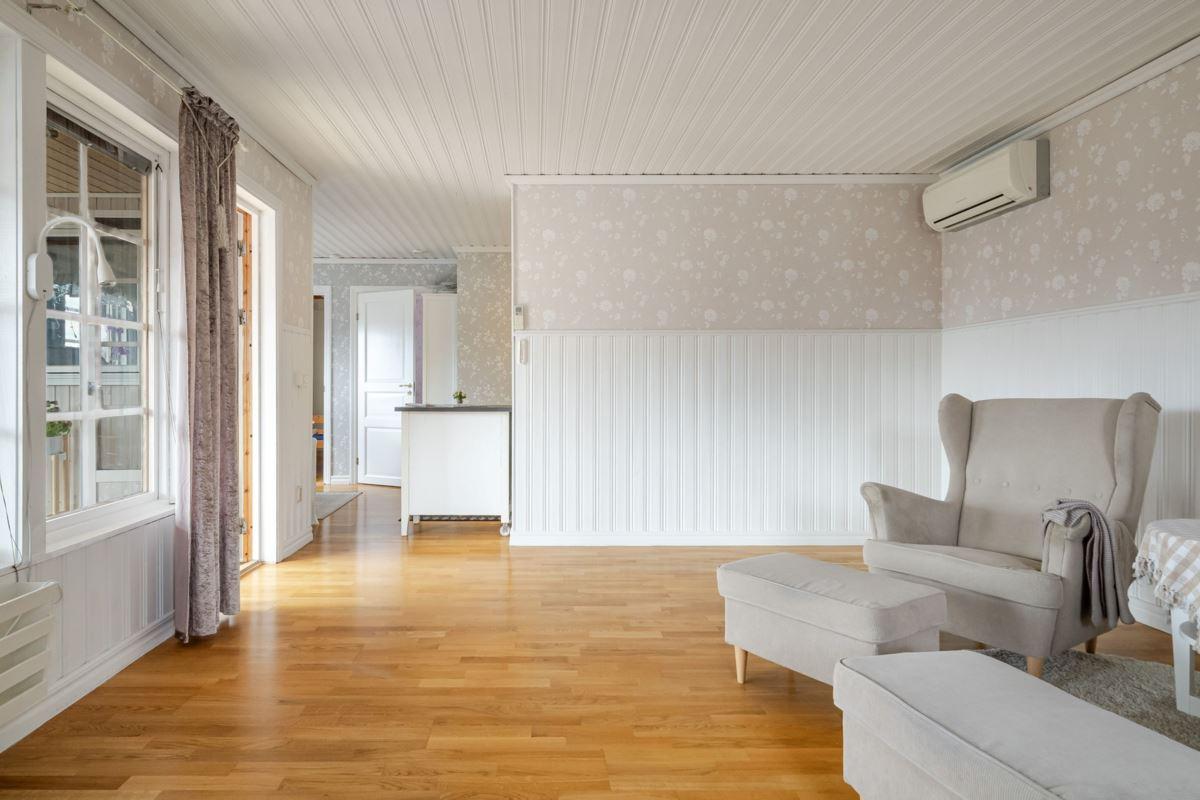 Bostaden erbjuder 3 rok samt en isolerad inglasad altan med vidbyggd terrass där ett härligt spabad finns. Ljust och fint Marbodal-kök, vardagsrum med murad öppen spis samt kassett, duschrum och två sovrum. Från vardagsrummet nås den inglasade altanen. Fiber finns indraget i bostaden. Utöver bostadshuset finns två gäststugor, tvättstuga, vedbod, jordkällare och en carport samt ett dubbelgarage.