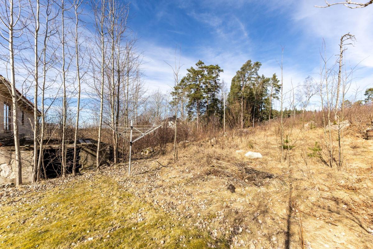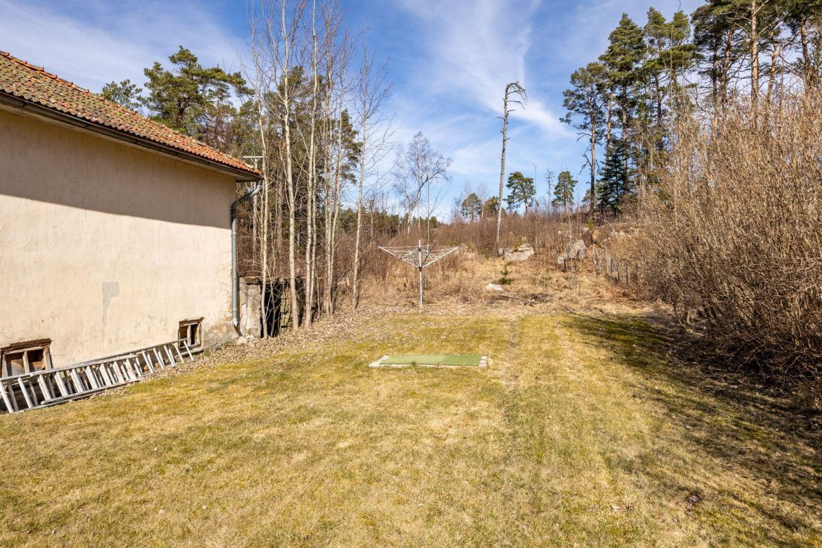 • TomtTomtens storlek uppgår enligt fastighetsregistret till 1.392 kvm. Uppvuxen, kuperad trädgårdstomt med gräsytor och flertalet fruktträd. Tomten är lättskött och på husets baksida består den huvudsakligen av outnyttjad naturtomt.