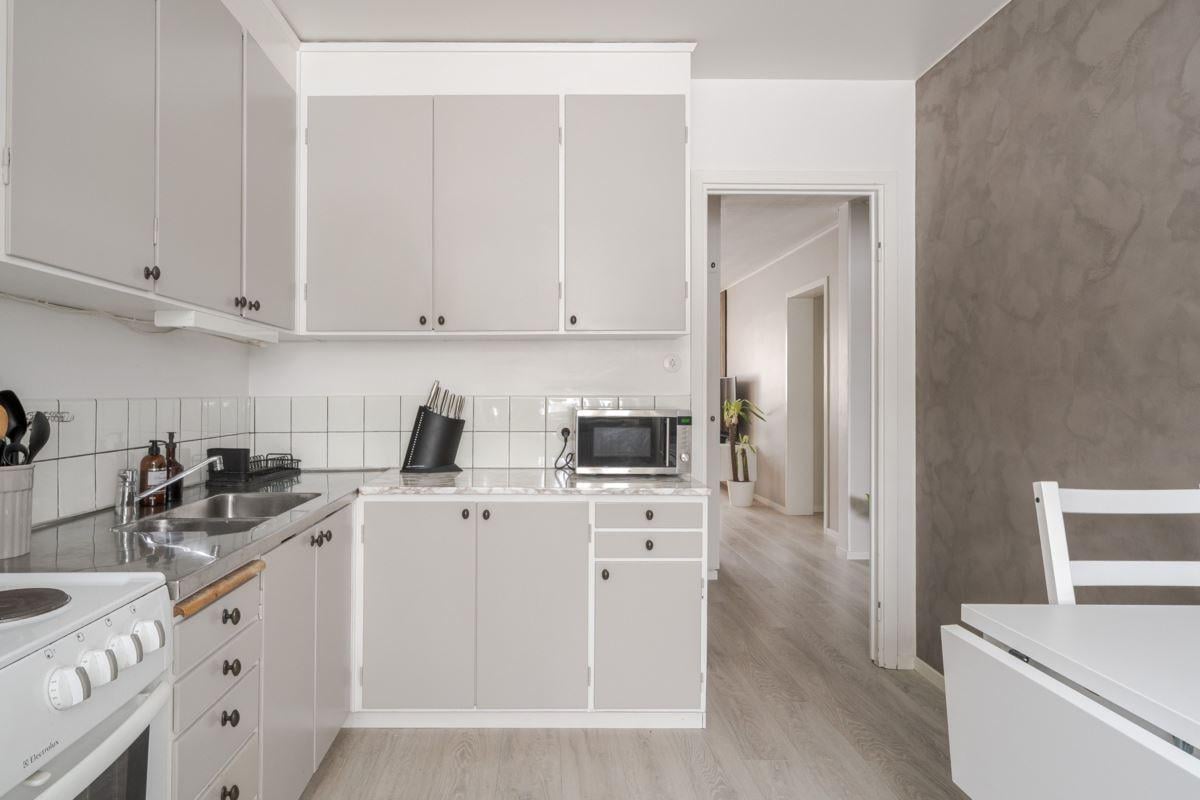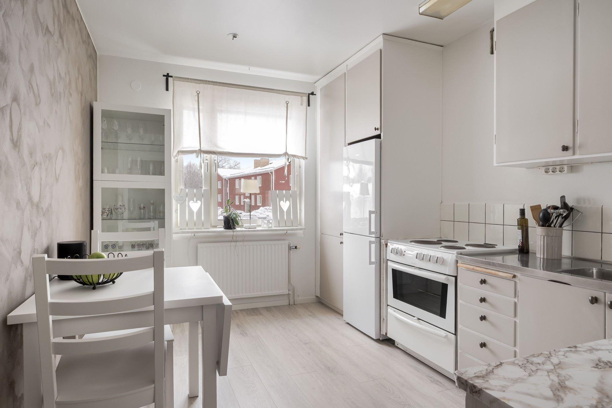 - Ljust kök med plats för mindre matbord