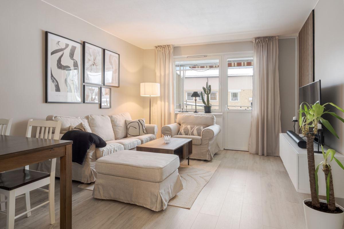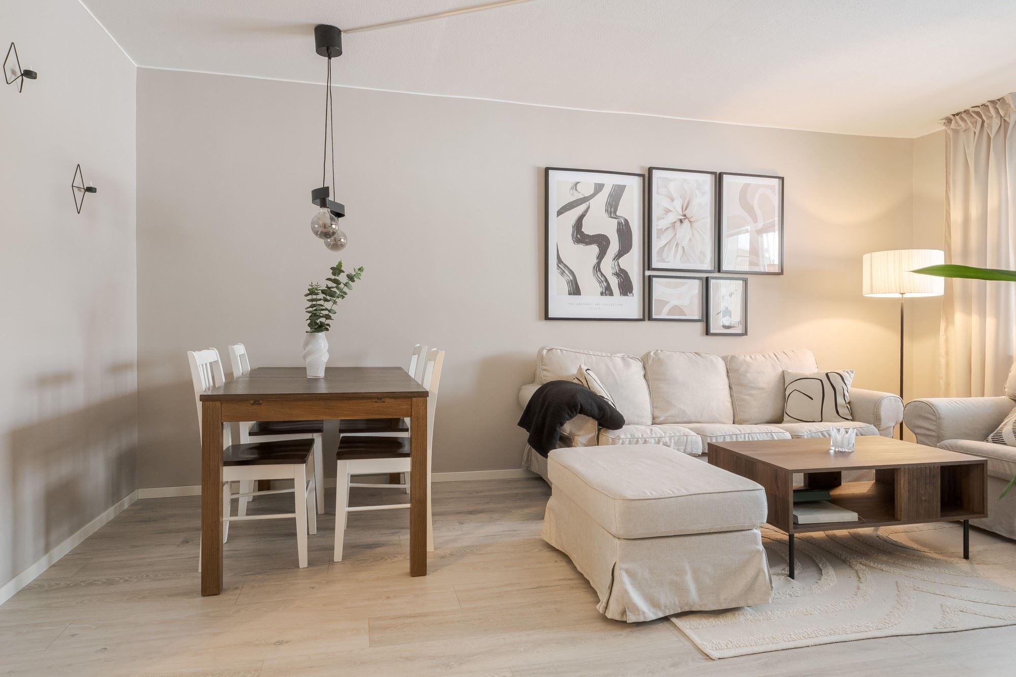 - Rymligt vardagsrum med plats för matbord. Utgång till balkong med eftermiddags- och kvällssol
