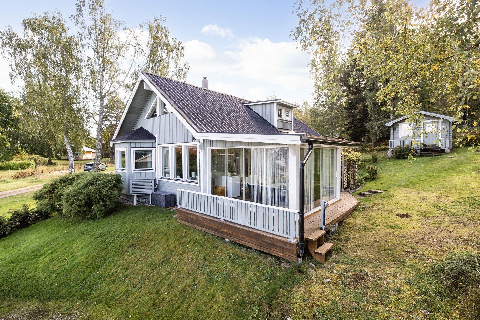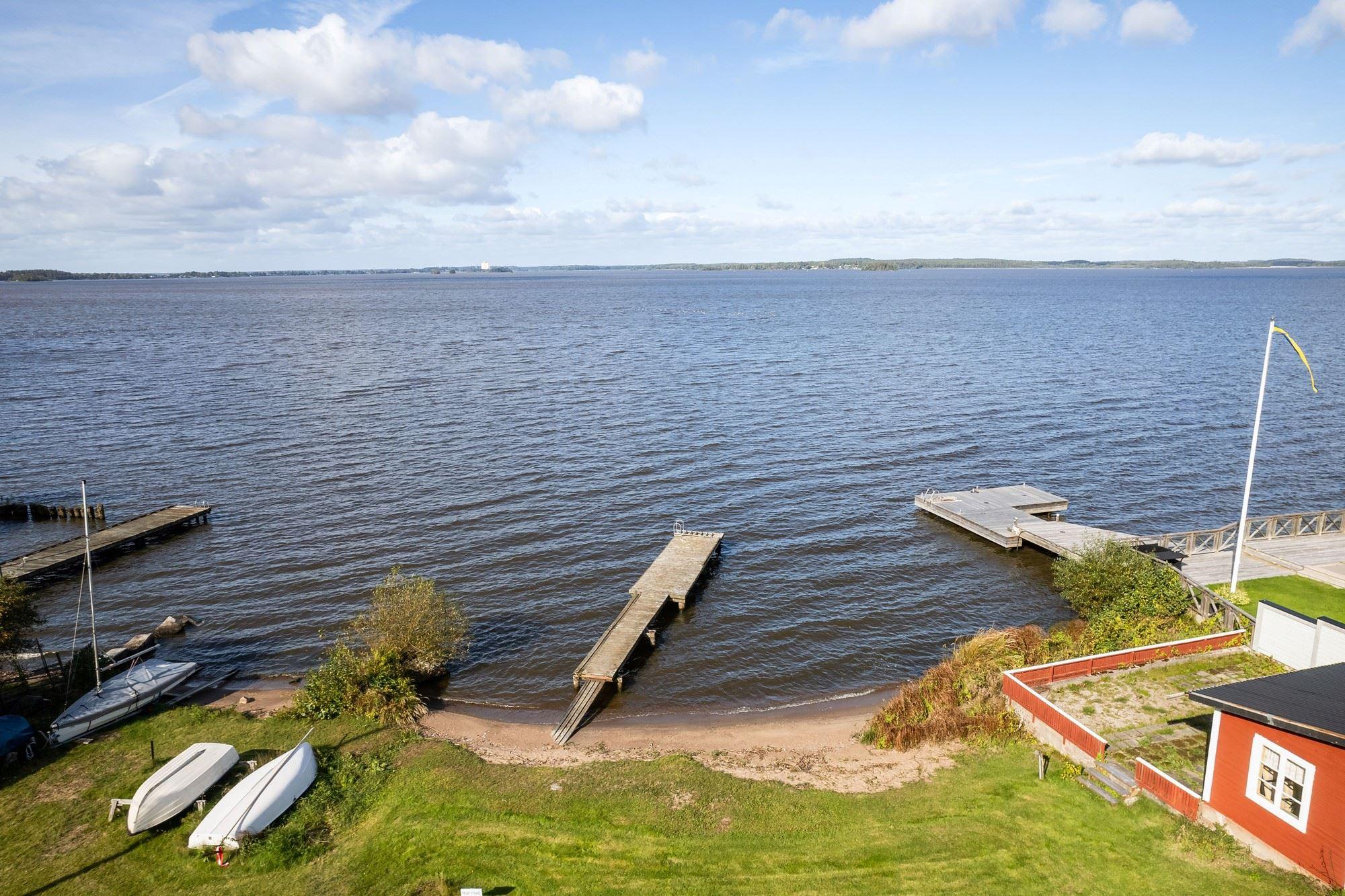 Lugnt läge vid den lilla lokalvägens slut utan genomfartstrafik. Tillsammans med tre grannfastigheter finns gemensam liten badstrand och brygga strax nedanför den egna tomten. Ca 3,5 km från Kungsör. Bostadshus om 3 rum och kök i nedre planet samt loft + ett sovrum i övre planet som har begränsad takhöjd. Gäststuga för sommarbruk.
