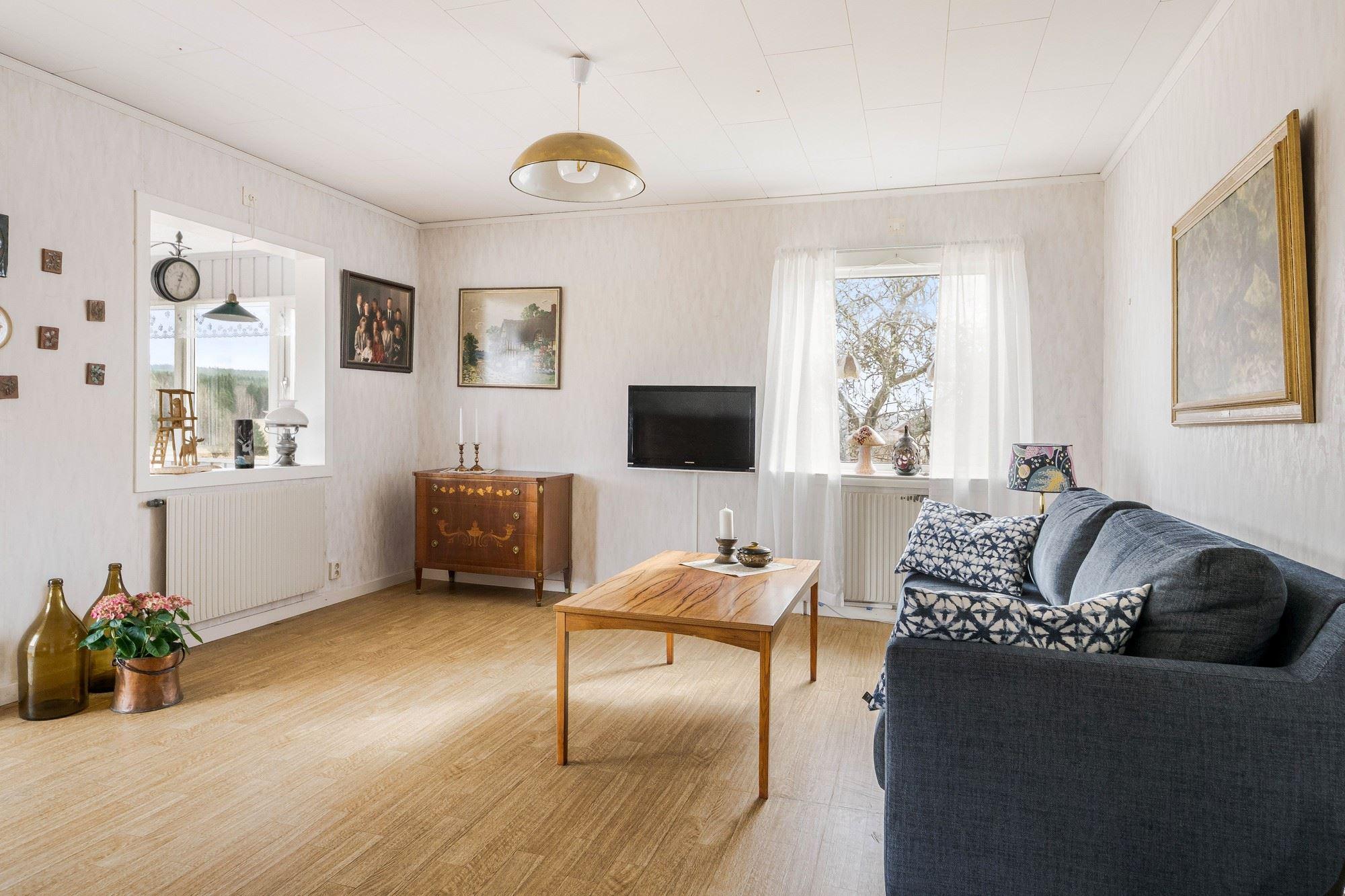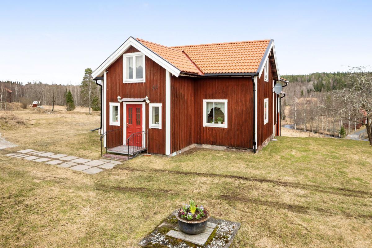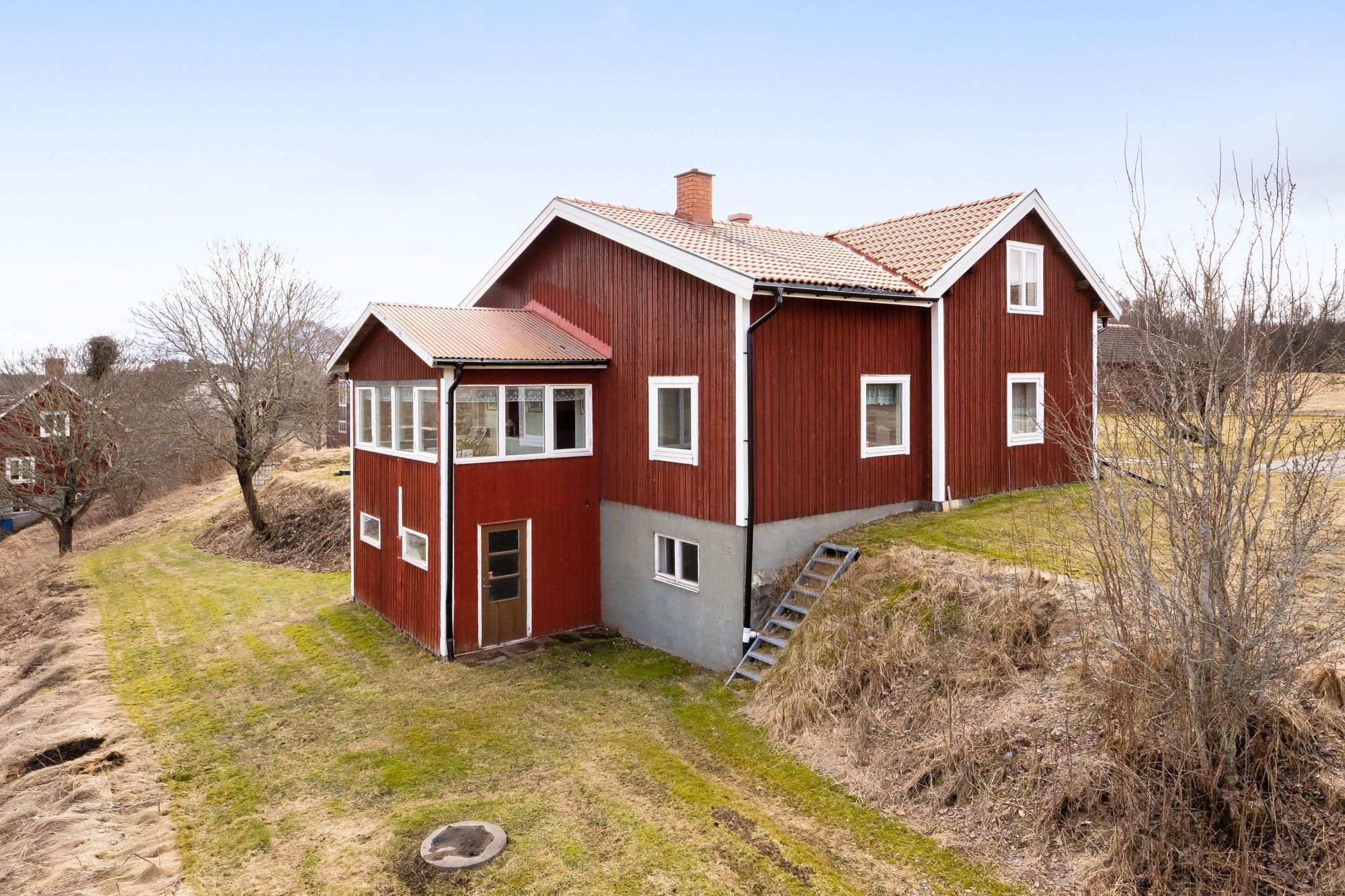Bostadshuset har 5 rok där entréplanet erbjuder ett rymligt kök, duschrum, vardagsrum samt ett matrum med slående utsikt över det böljande landskapet. Det övre planet har två sovrum med renoveringsbehov. Källaren består av tvättstuga, pannrum och förråd.