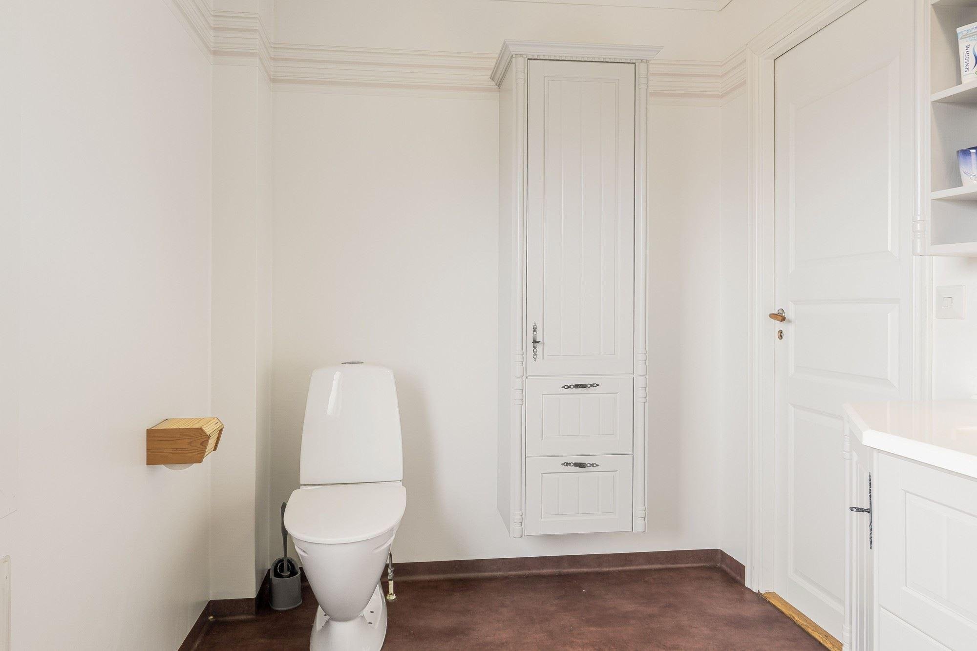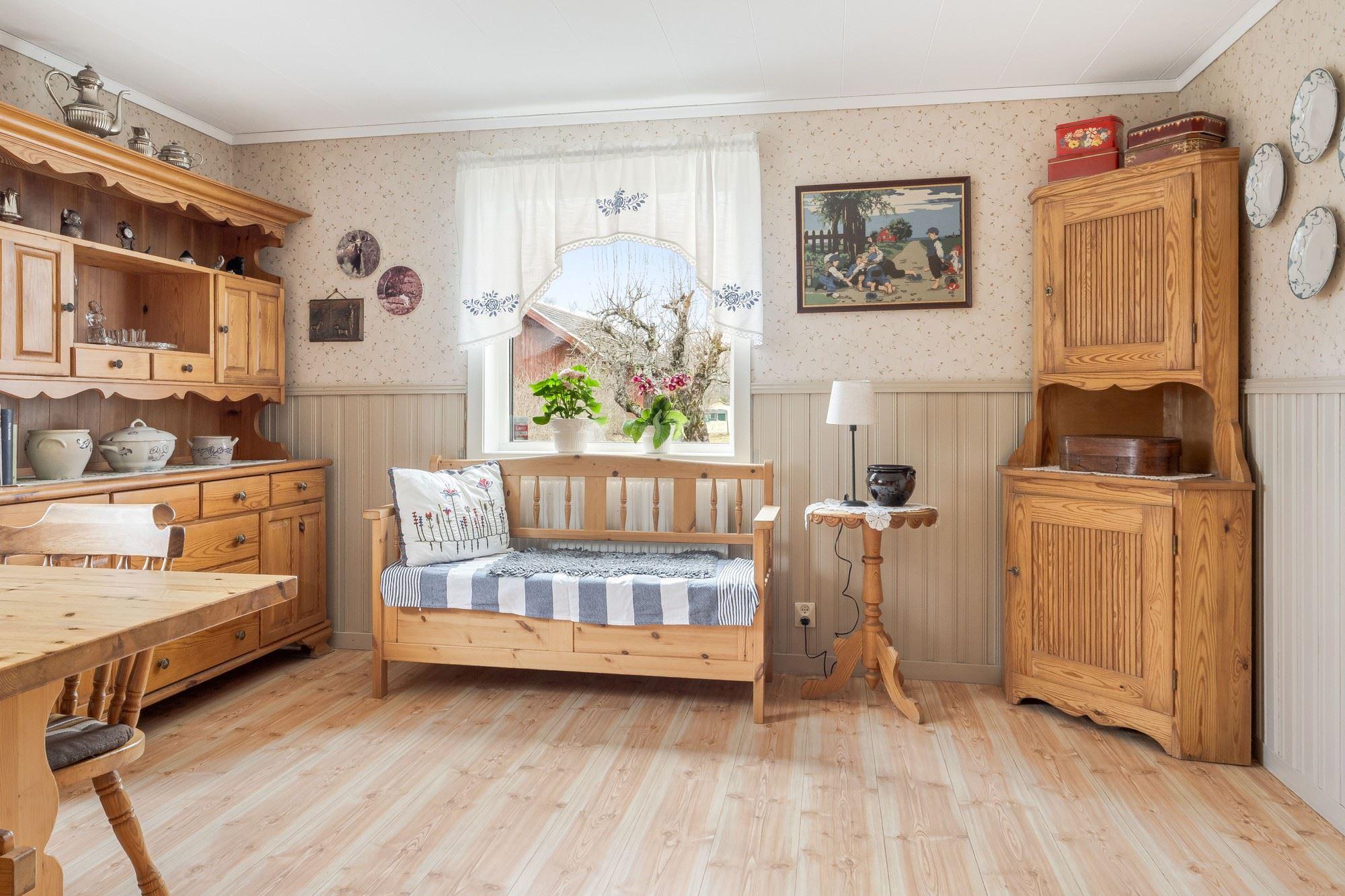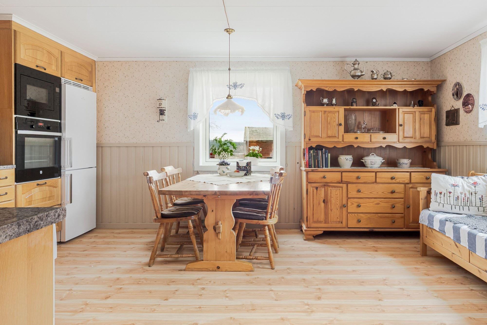 Bostadshuset har 5 rok där entréplanet erbjuder ett rymligt kök, duschrum, vardagsrum samt ett matrum med slående utsikt över det böljande landskapet. Det övre planet har två sovrum med renoveringsbehov. Källaren består av tvättstuga, pannrum och förråd.