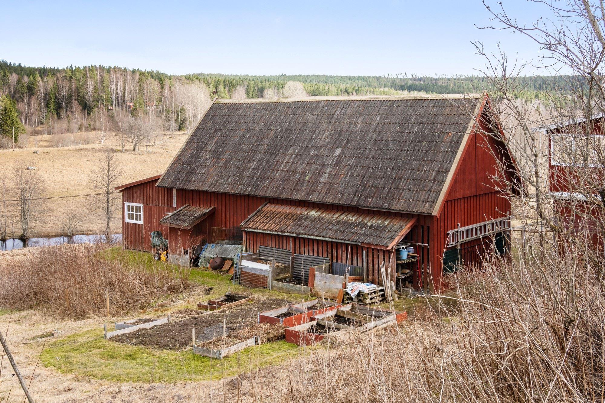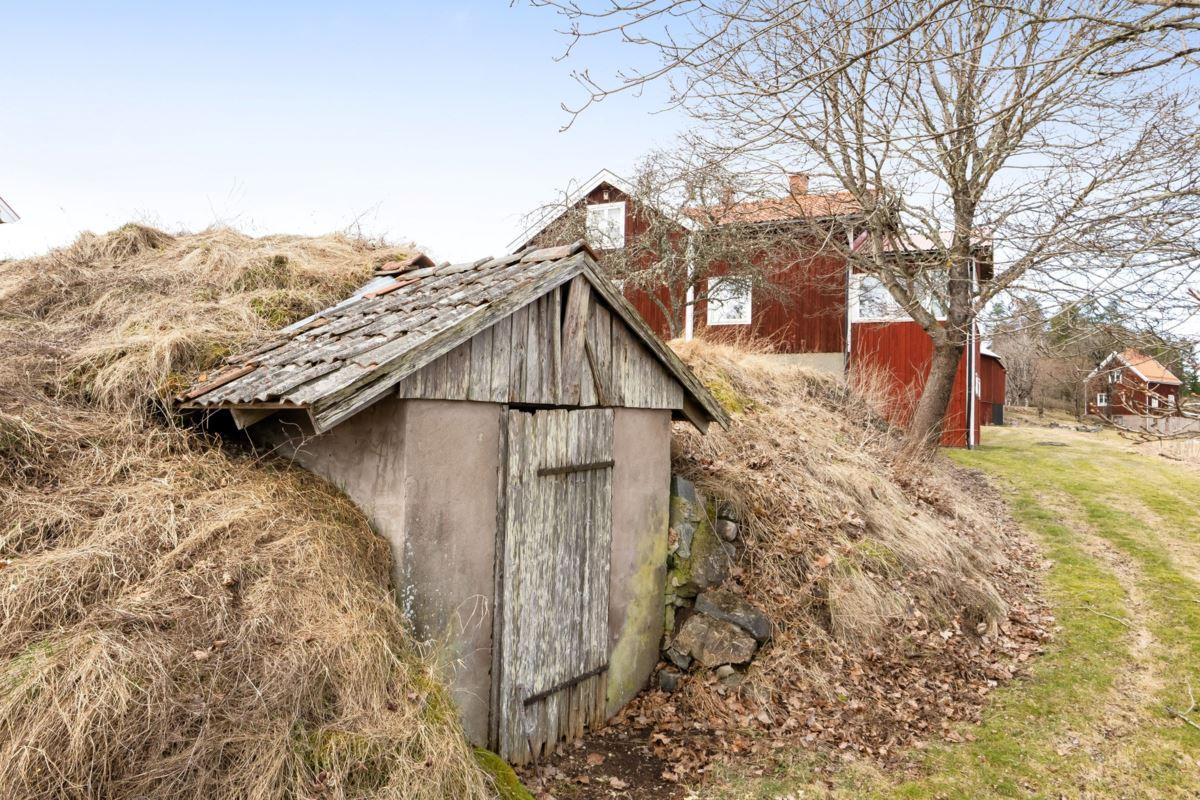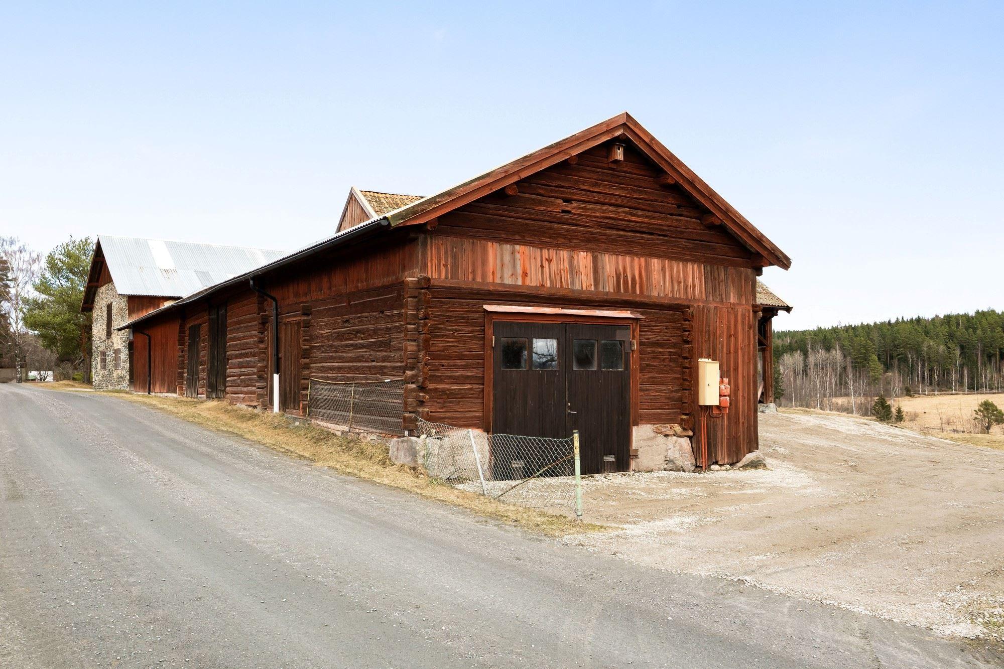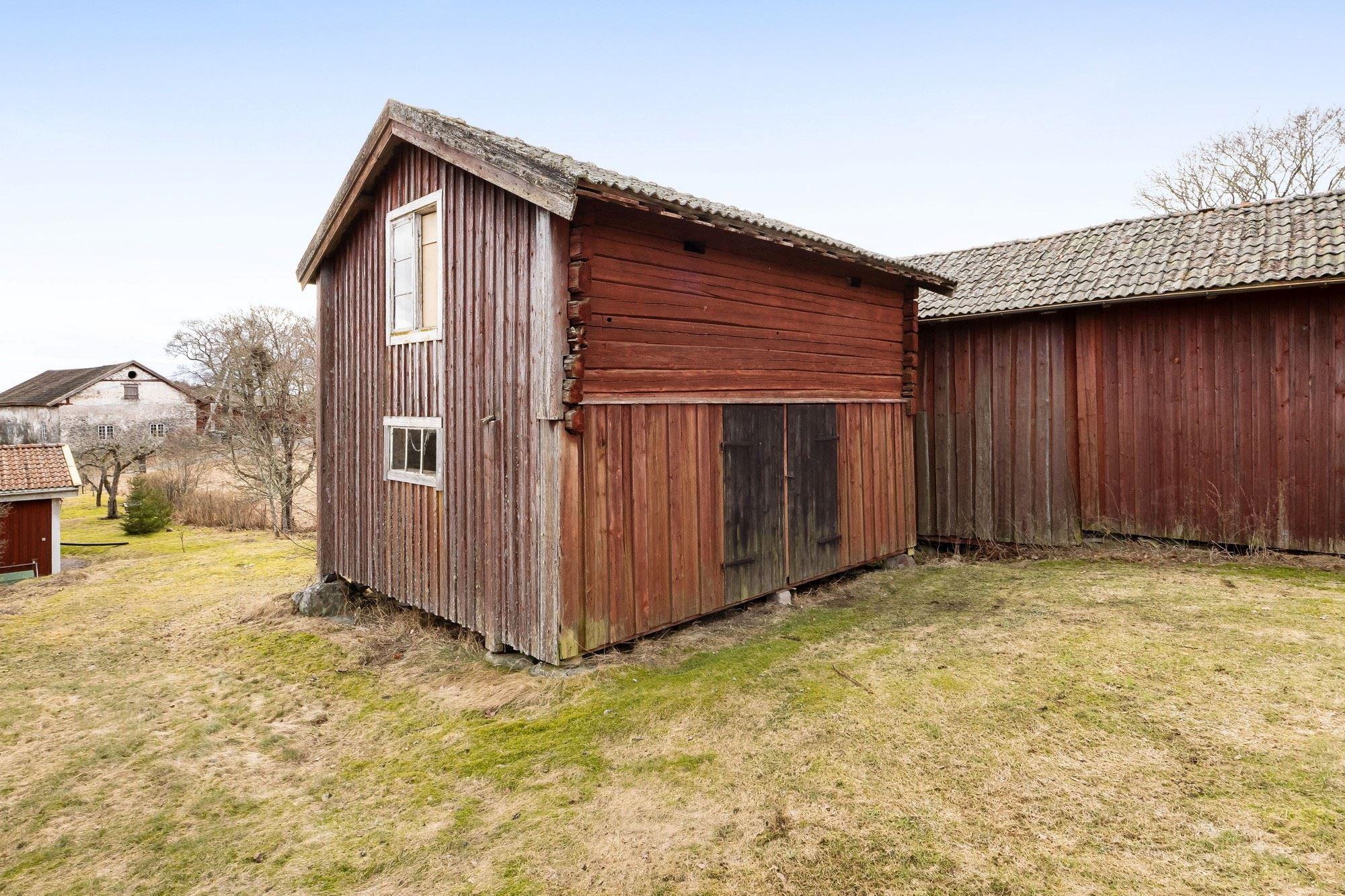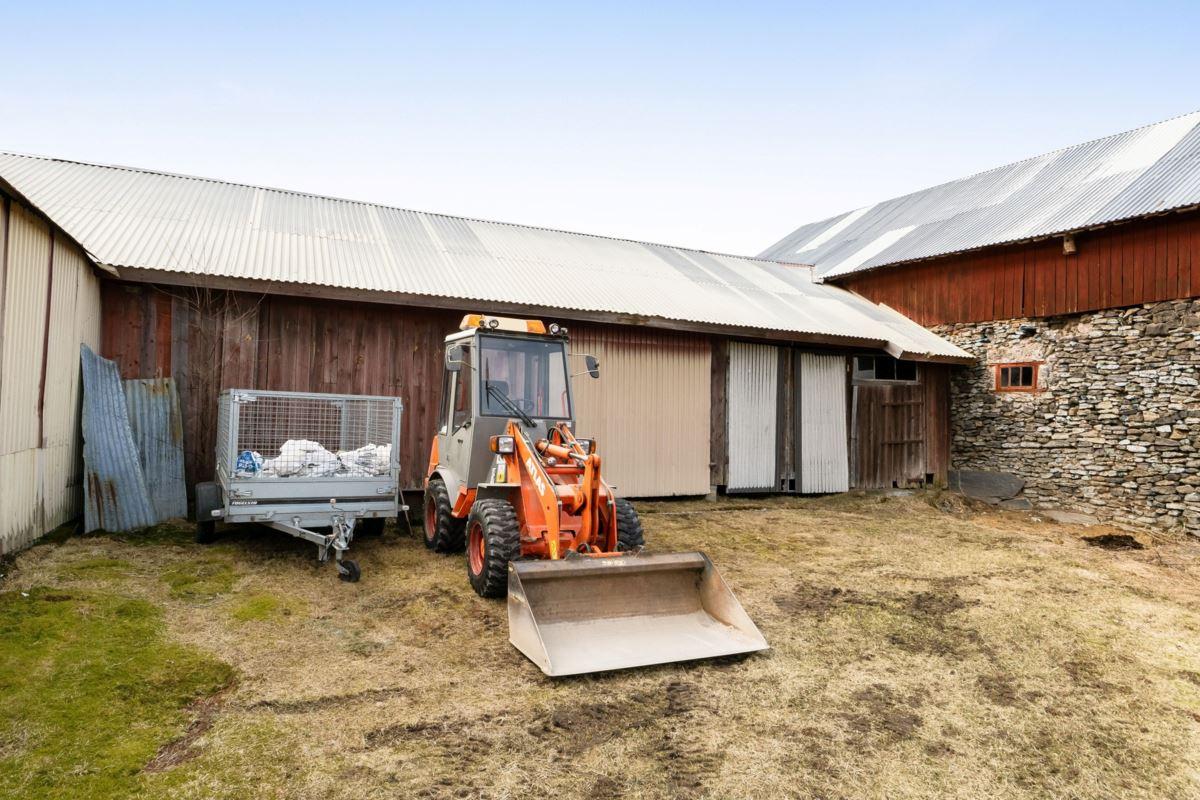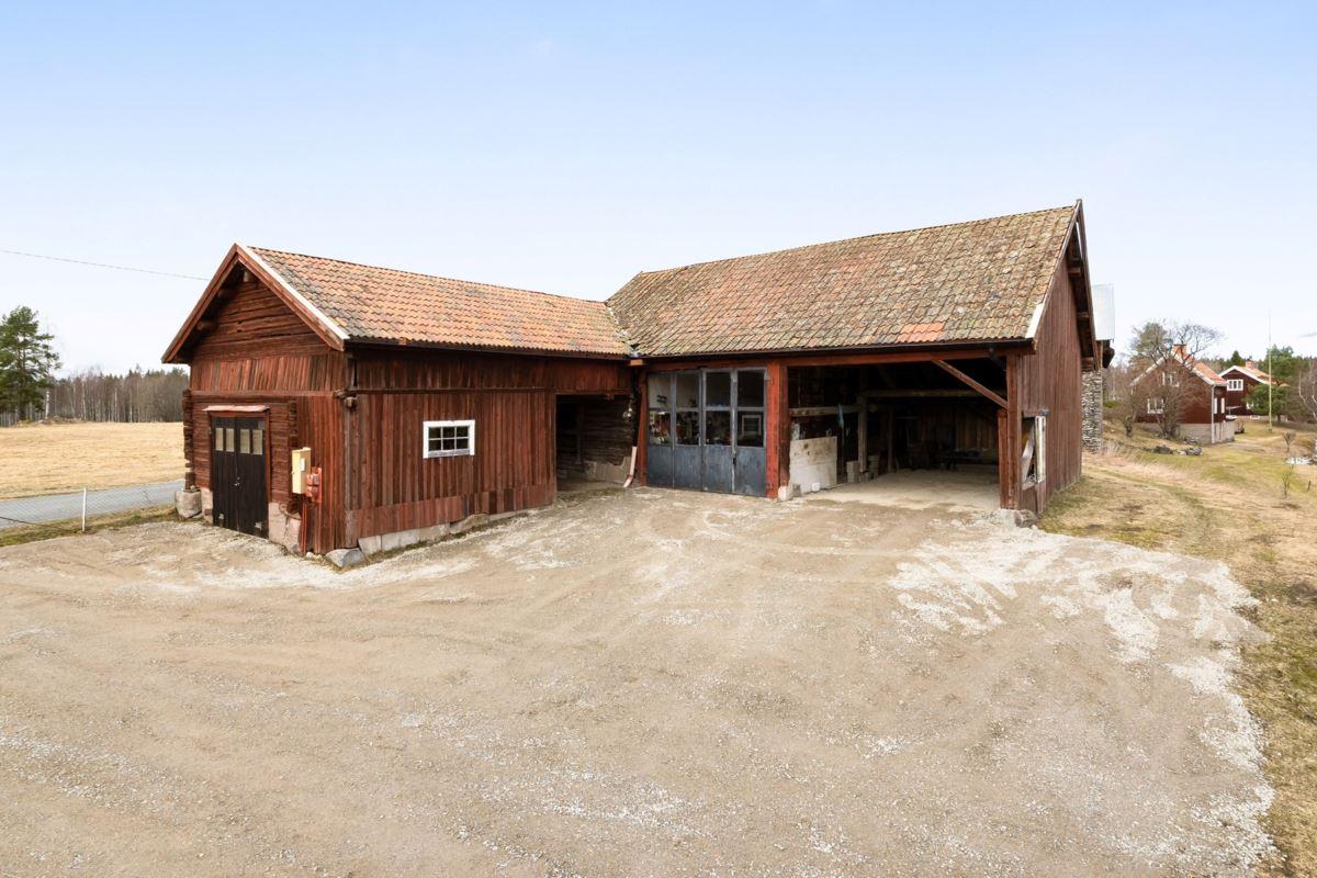 Magasin i två plan med generösa förrådsytor. Vidare finns en ekonomibyggnad med två carports, garage, verkstad, loge, vagnslider samt djurhållningsdel med höskulle ovan. Utöver detta finns också en jordkällare.