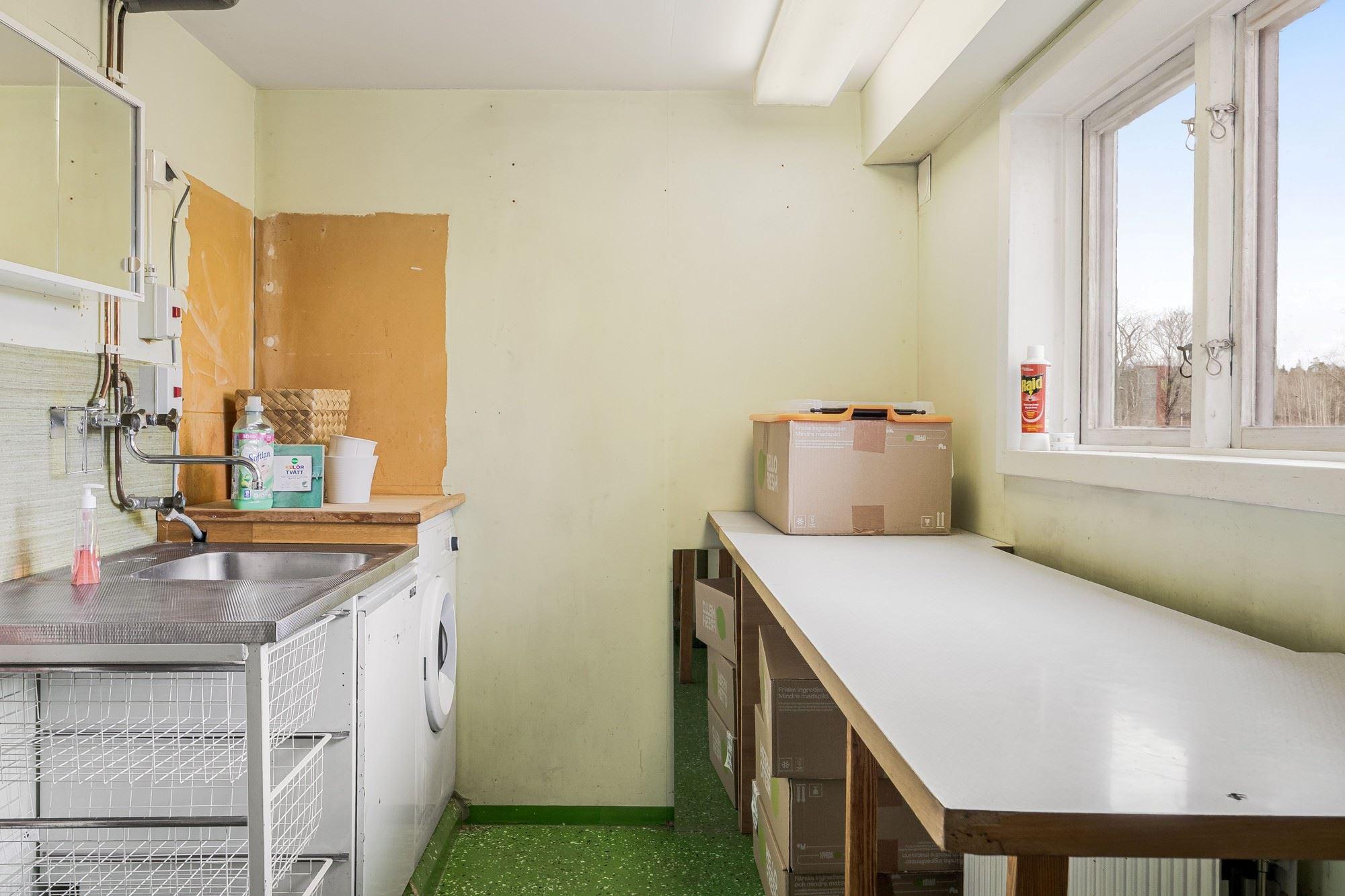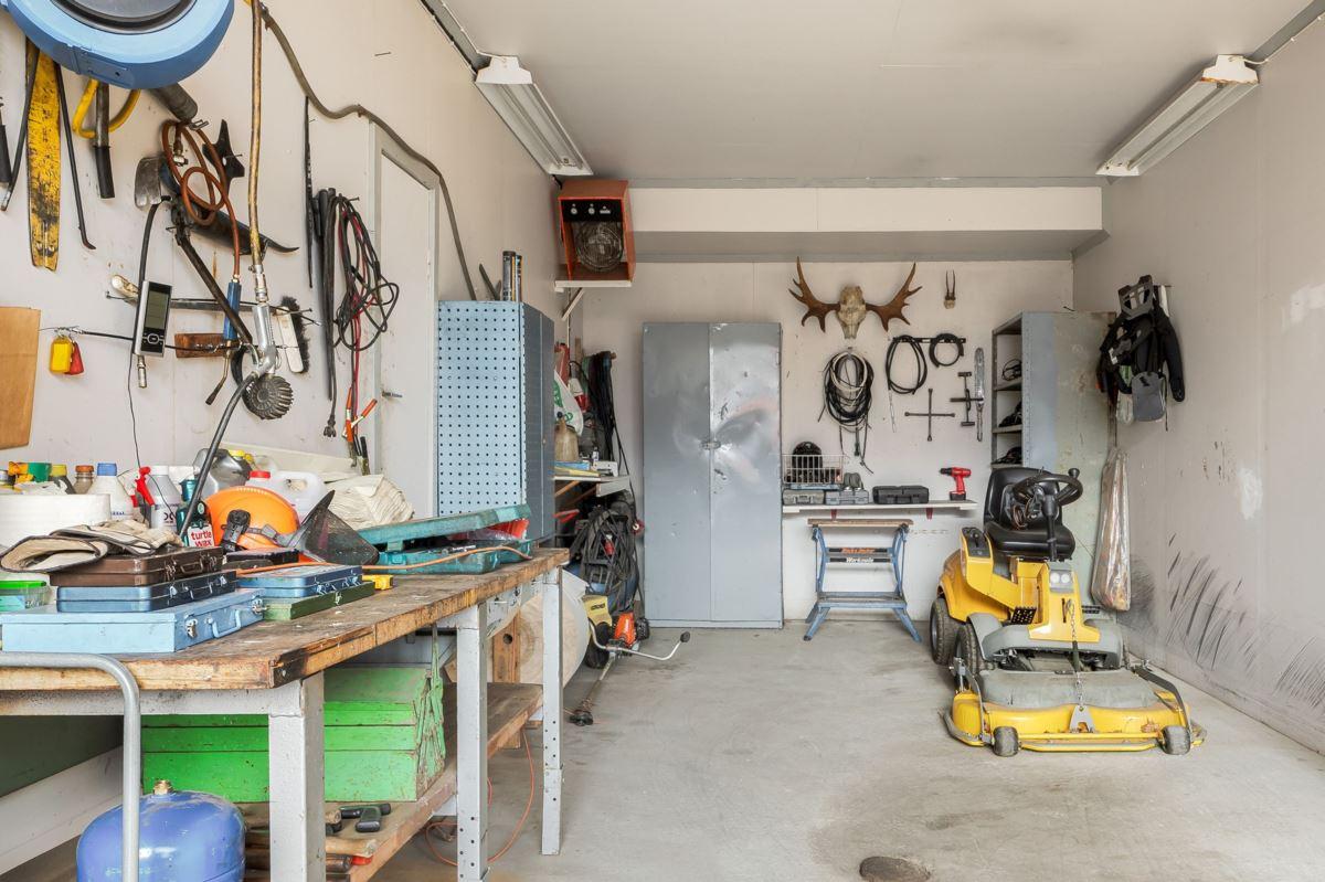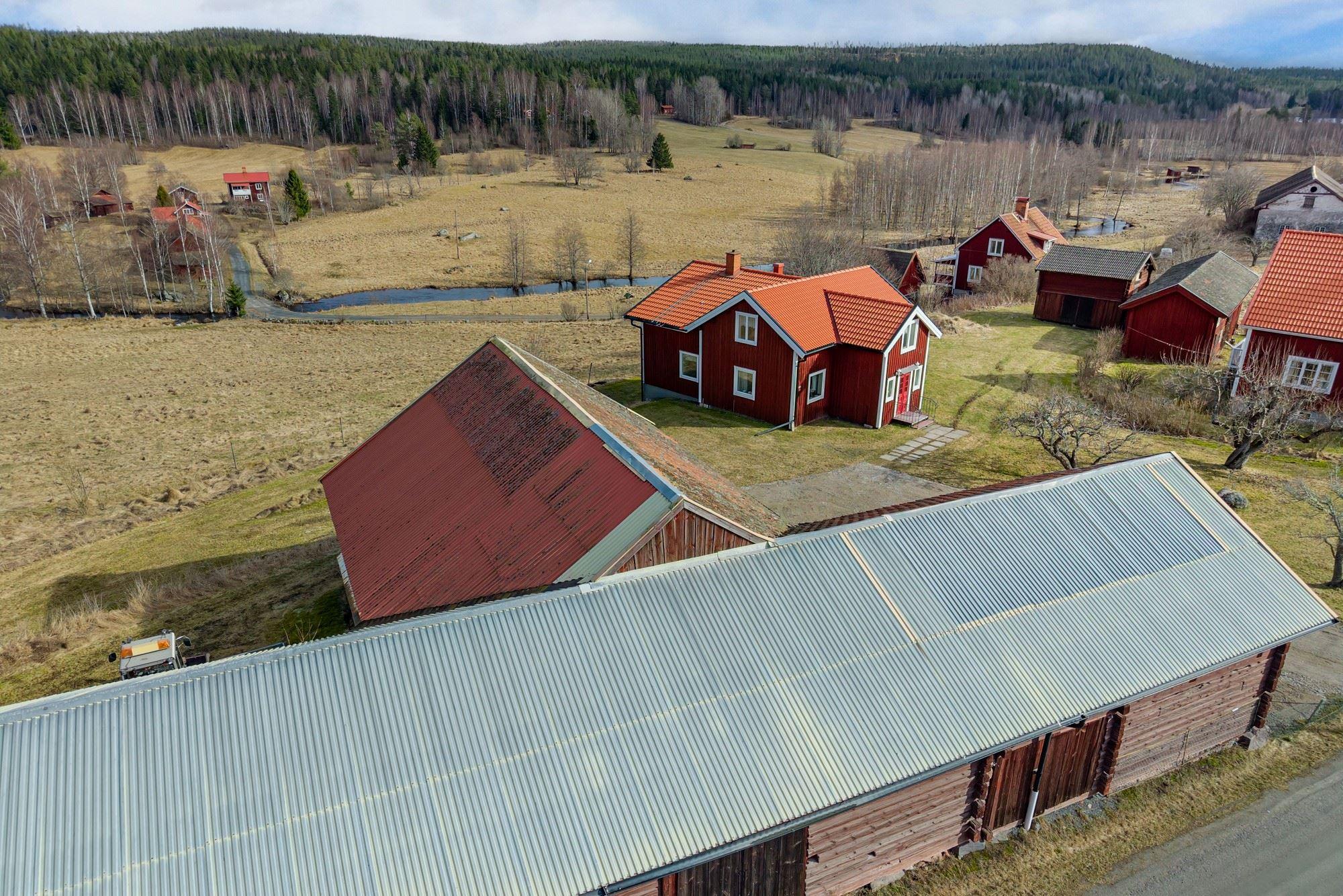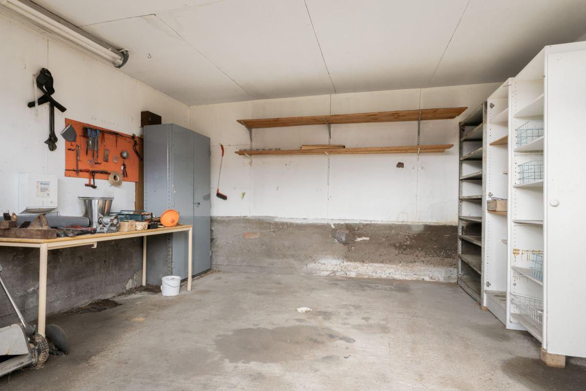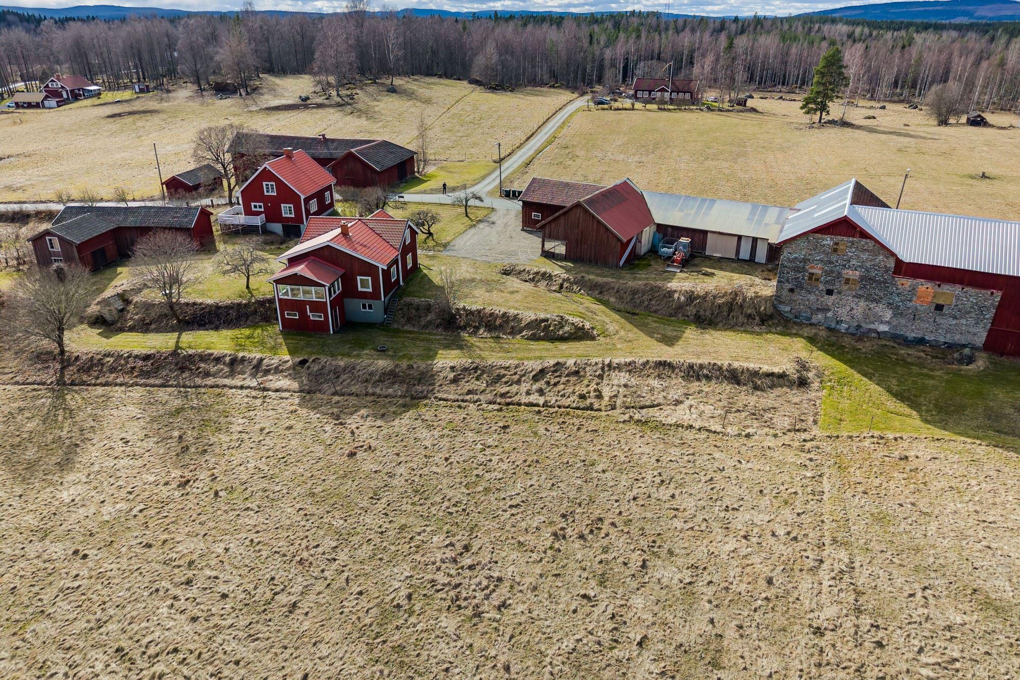 Magasin i två plan med generösa förrådsytor. Vidare finns en ekonomibyggnad med två carports, garage, verkstad, loge, vagnslider samt djurhållningsdel med höskulle ovan. Utöver detta finns också en jordkällare.