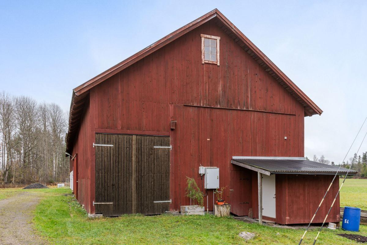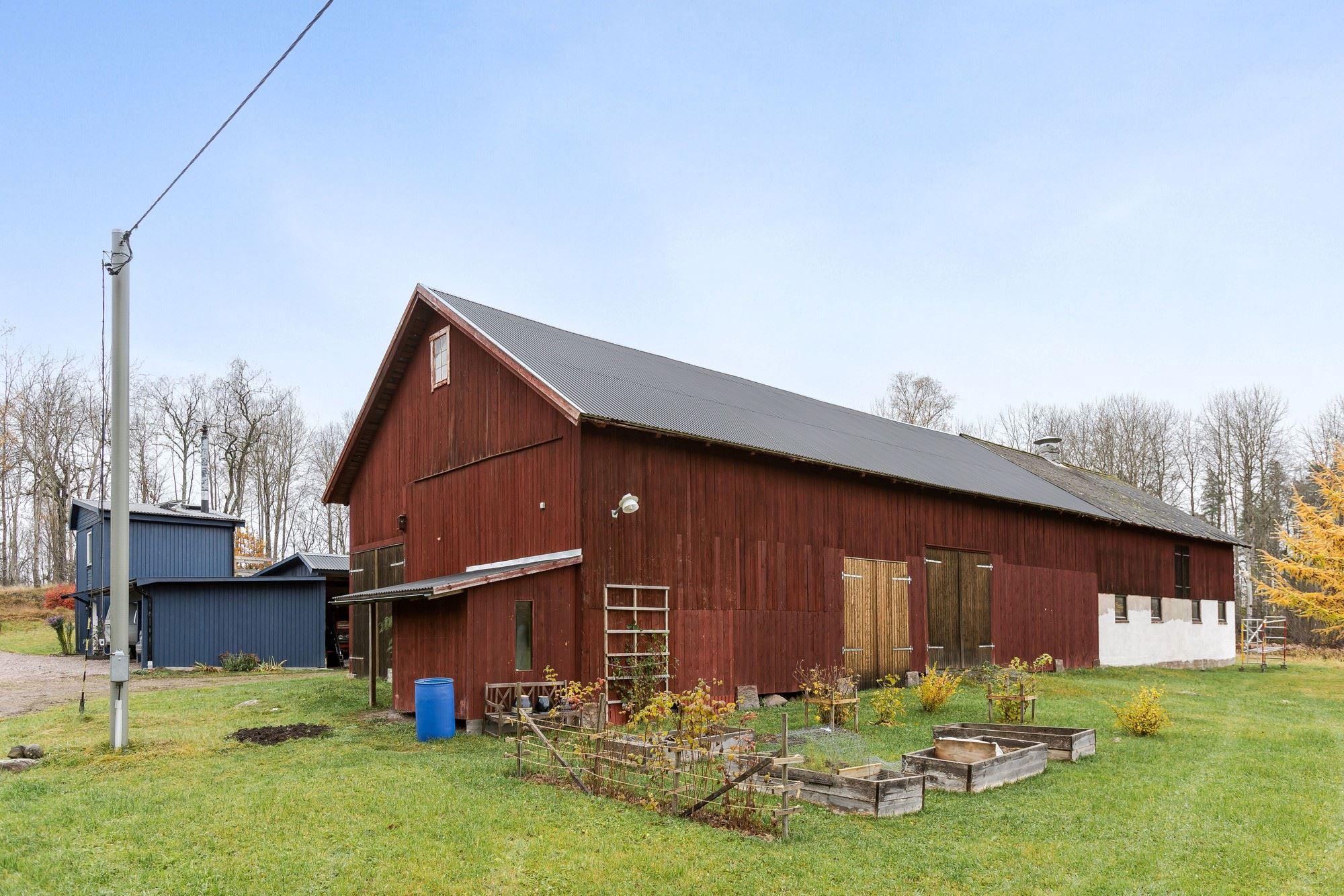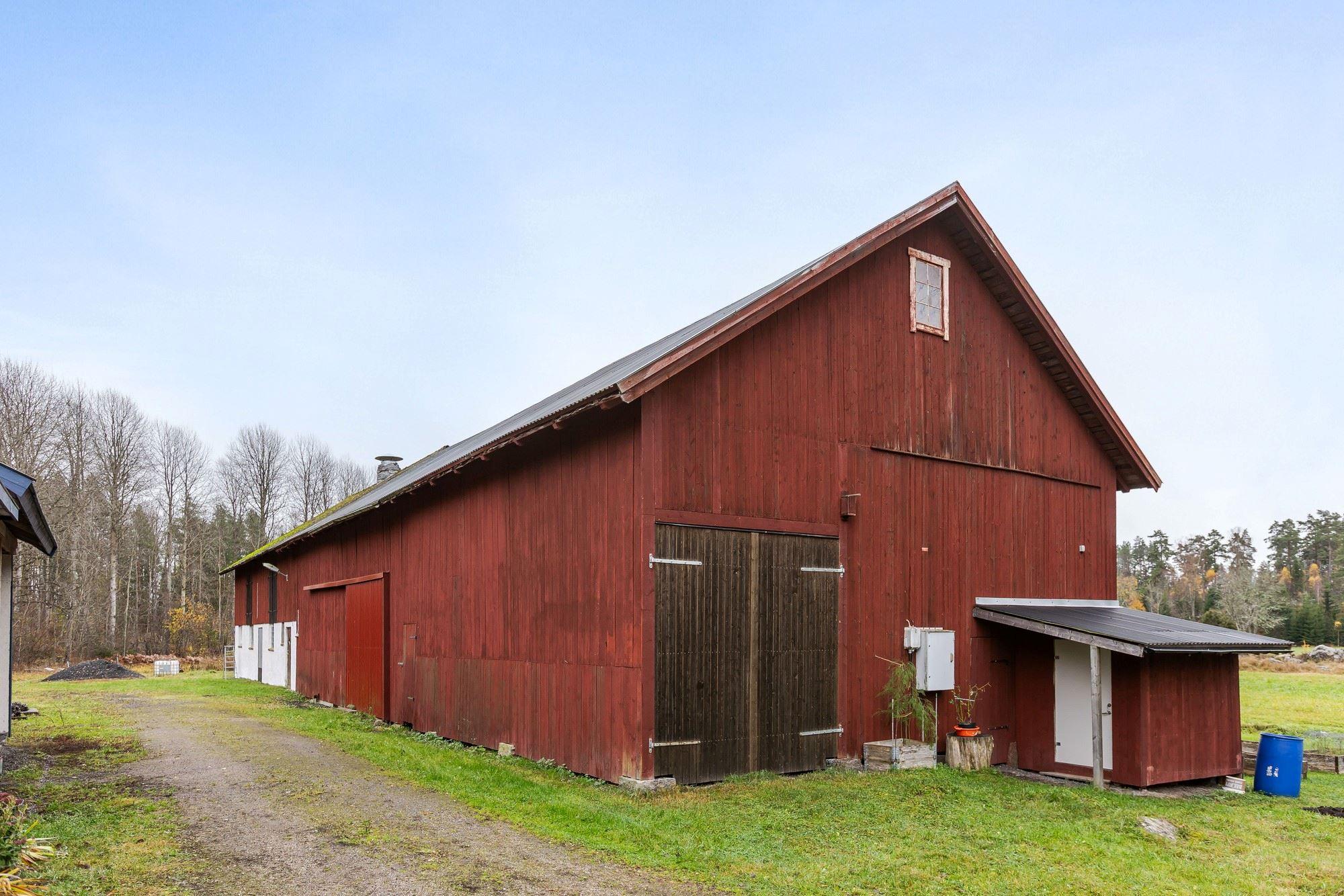 Ladugård/lada: Äldre byggnad med murad stomme i ladugårdsdelen och i övrigt trästomme. Utvändigt putsad fasad på ladugårdsdelen och i övrigt fasad med stående träpanel. Tak belagt med korrugerad plåt (lagd år 2013) respektive eternit. Ladudelen har ett vidbyggt förråd och även ett par separat byggda förråd invändigt. Byggnadsarea ca 350 kvm.