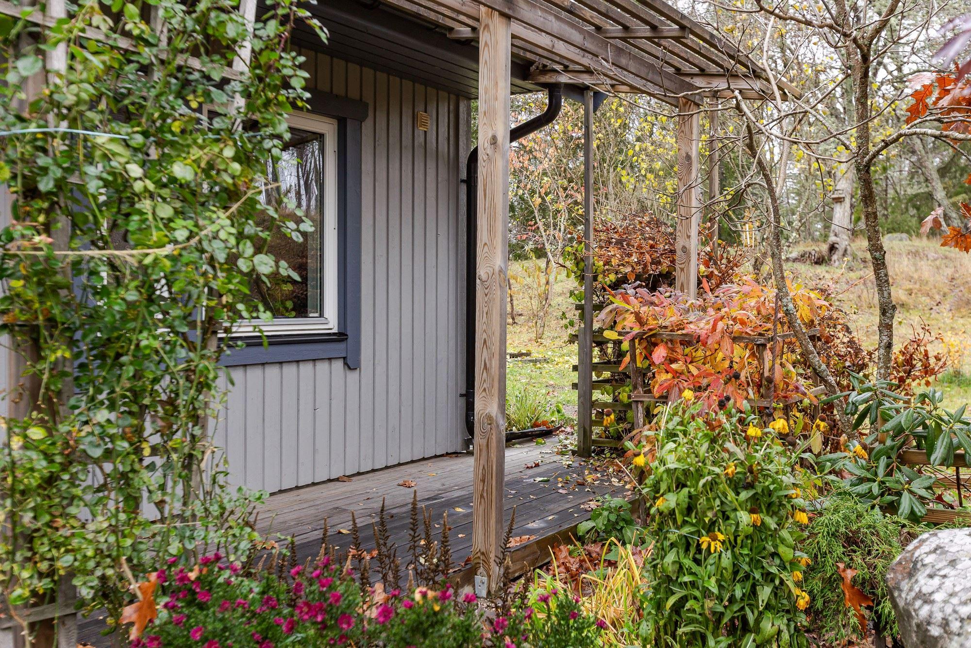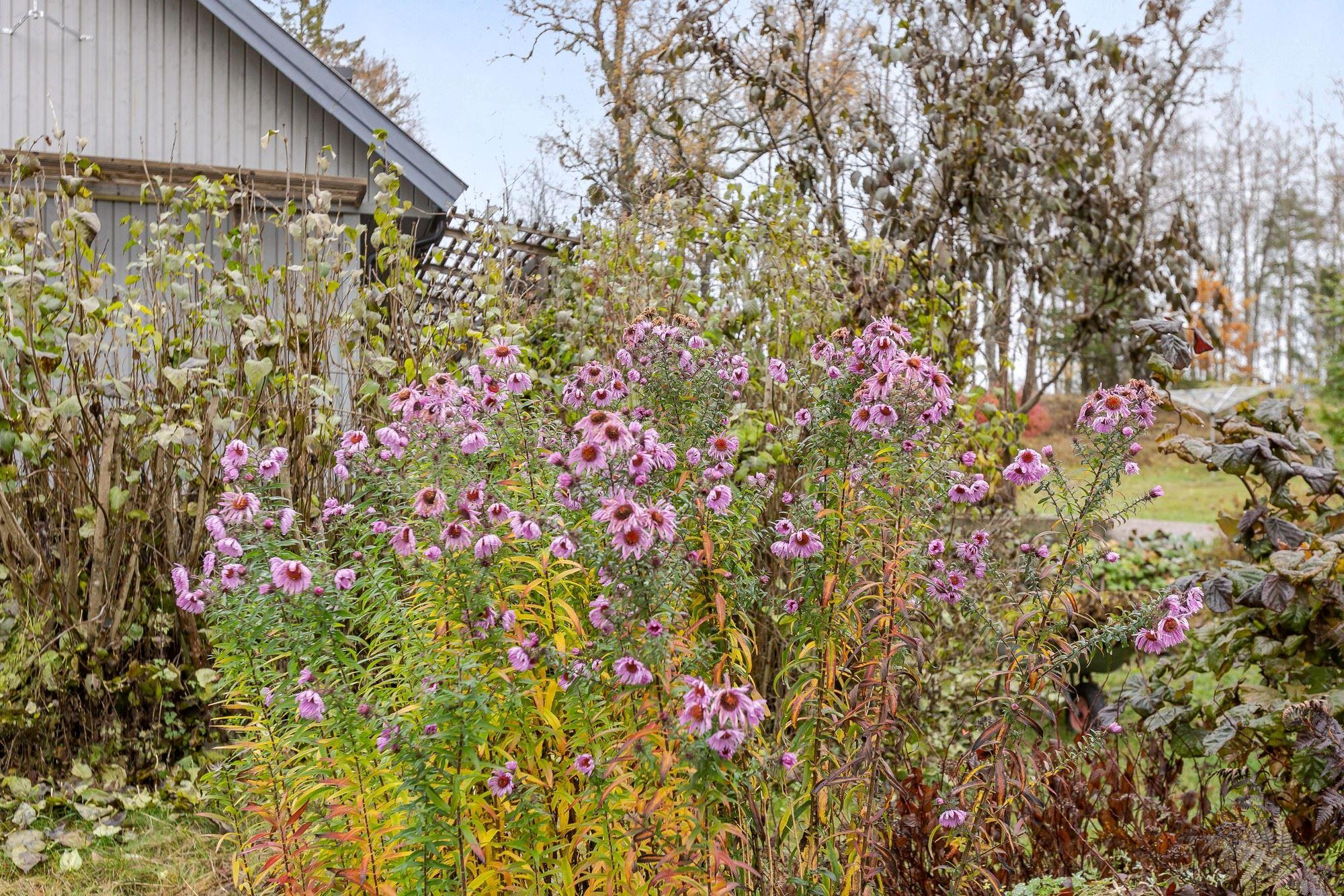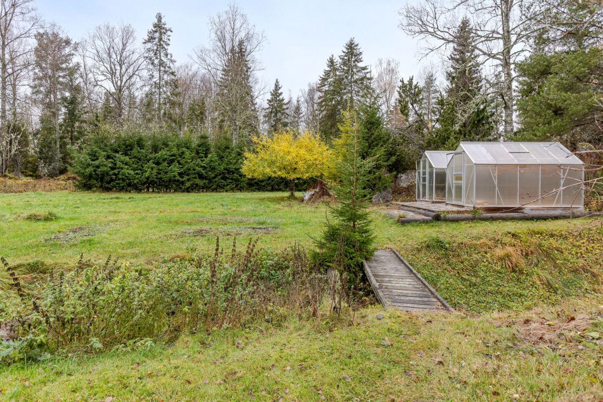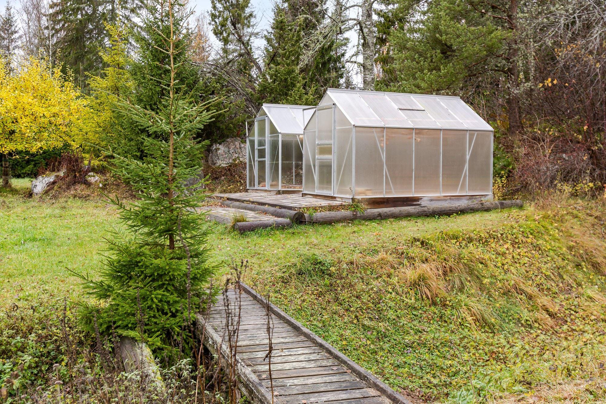 Växthus: I trädgården mot skogsbrynet bakom bostadshuset finns två mindre växthus med aluminiumstommar och väggar och tak med kanalplast respektive glas.