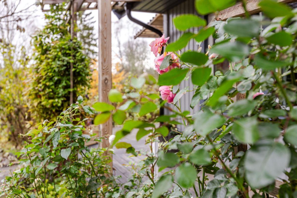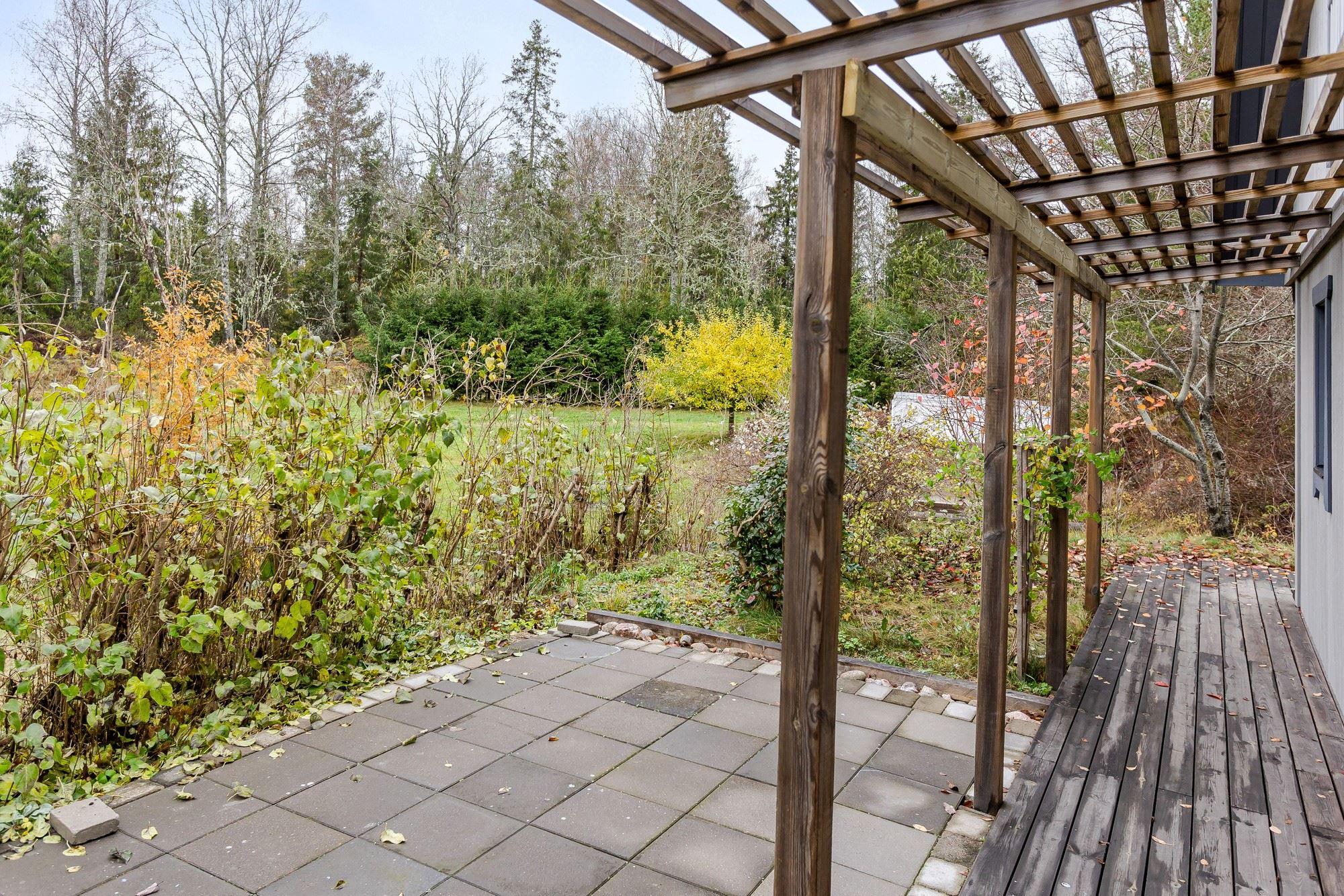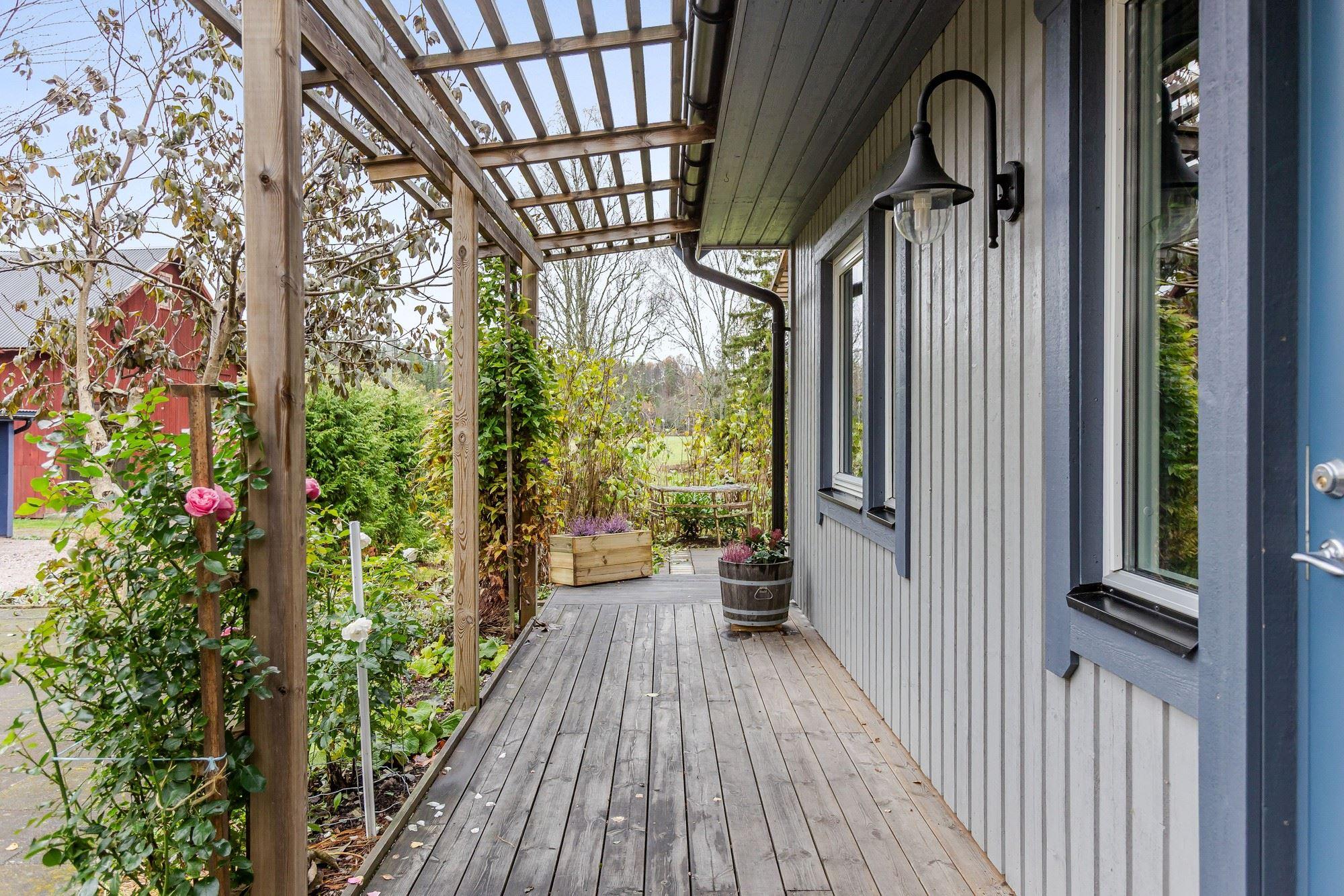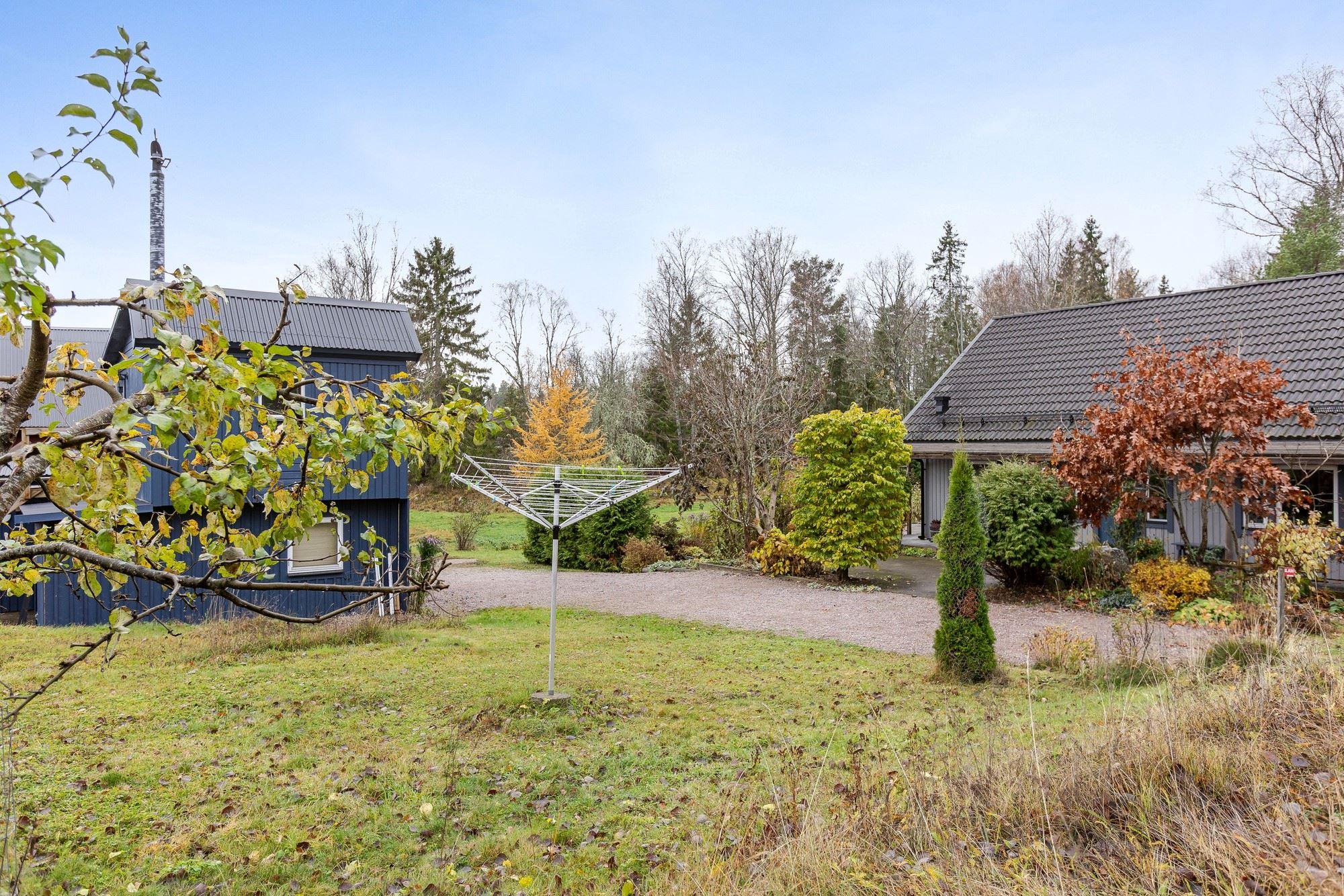 Växthus: I trädgården mot skogsbrynet bakom bostadshuset finns två mindre växthus med aluminiumstommar och väggar och tak med kanalplast respektive glas.