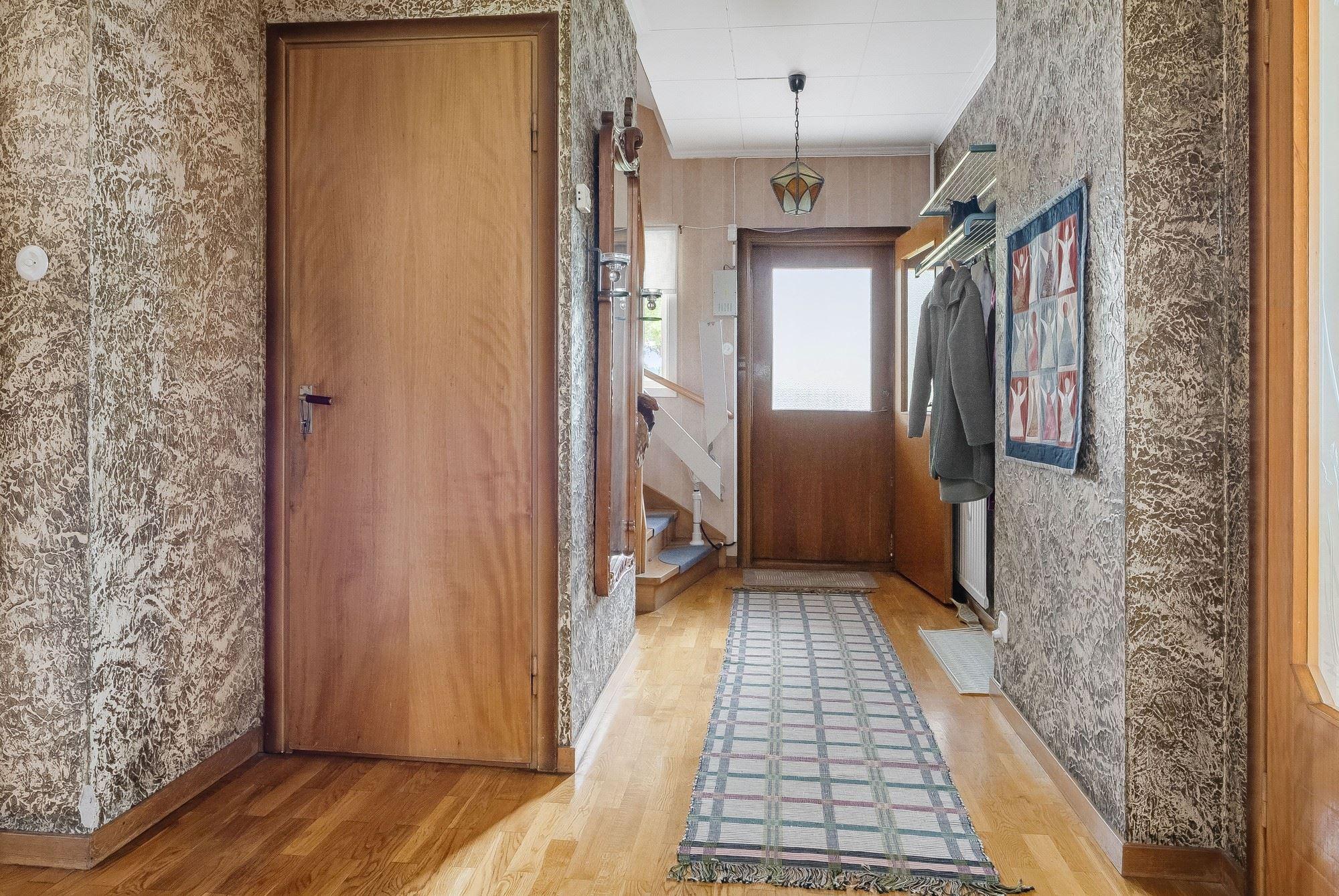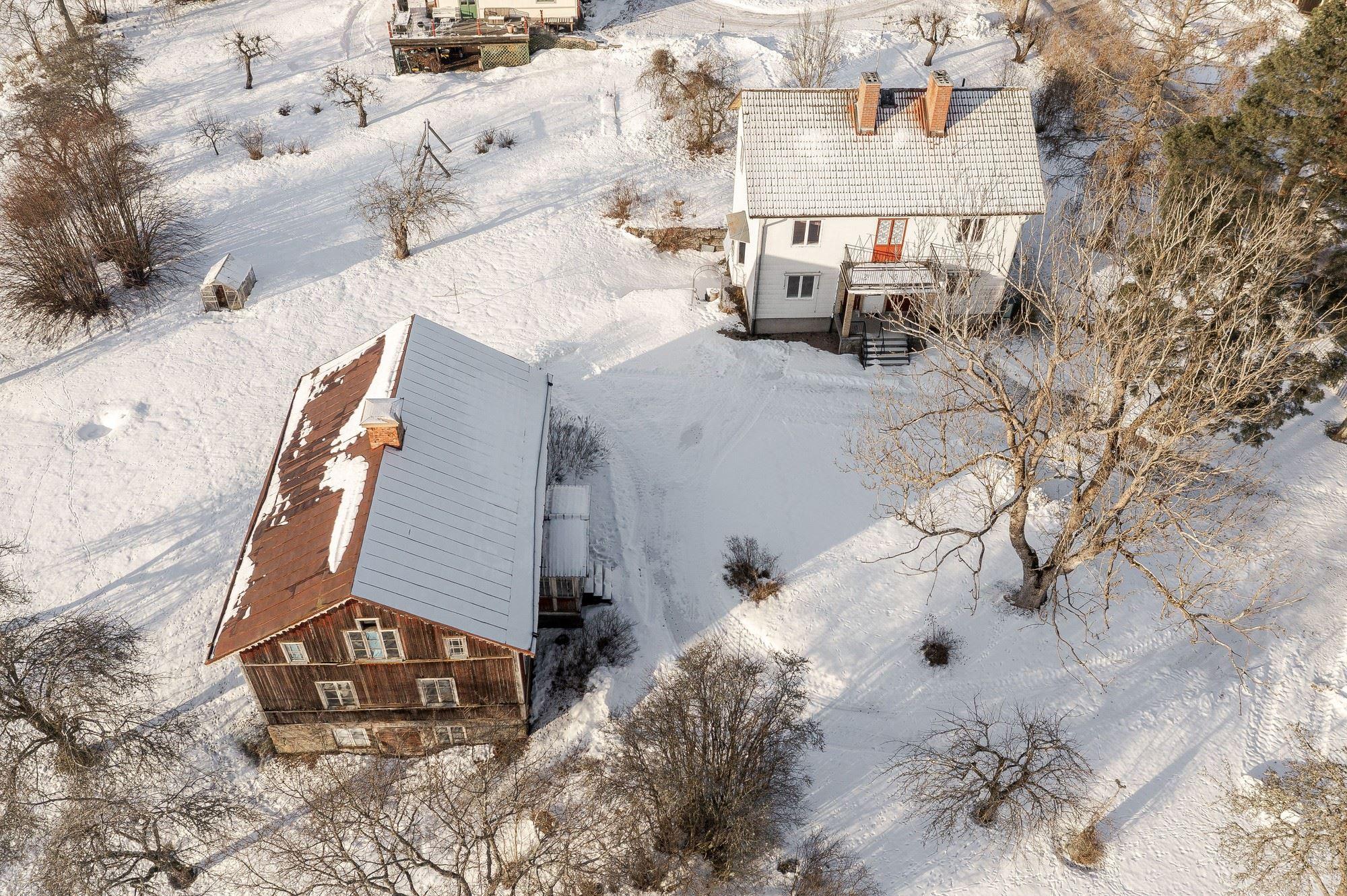 Äldre gårdshus om en uppskattad area 115 kvm exklusive råvinden. Timmerstomme, både källare/torpargrund i granit samt tak belagt med bandplåt. Vatten/avlopp samt el saknas. Byggnaden rymmer hall, kök med äldre skåpinredning, allrum samt två kammare varav den ena har öppen spis och den andra har kakelugn. Råvind ovan hela byggnaden. I källaren finns förråd och matkällare.