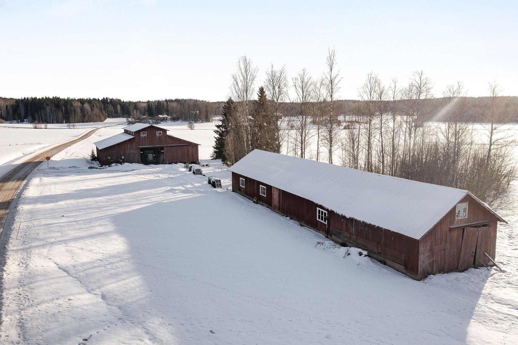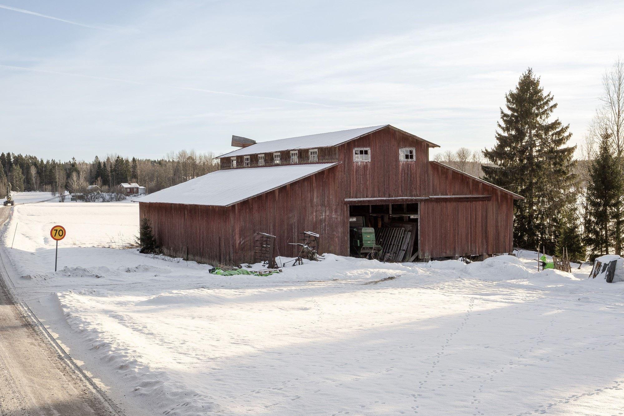 Rejäl ekonomibyggnad bestående av ladugård, stall och en rejäl loge. Stor höskulle ovan ladugårdsdelen/stallet. Enligt fastighetstaxeringens uppgifter är den totala ytan 1405 kvm. Ladugården och stallet är uppmurad i sten/tegel med putsad fasad. Lertegel på taket.